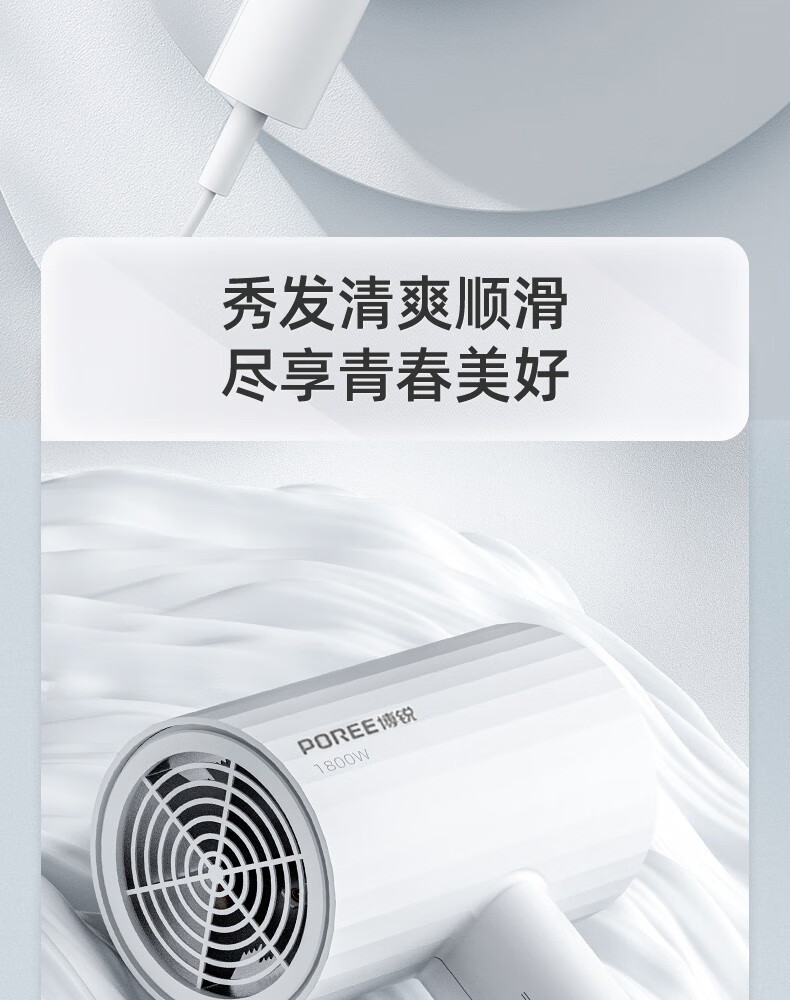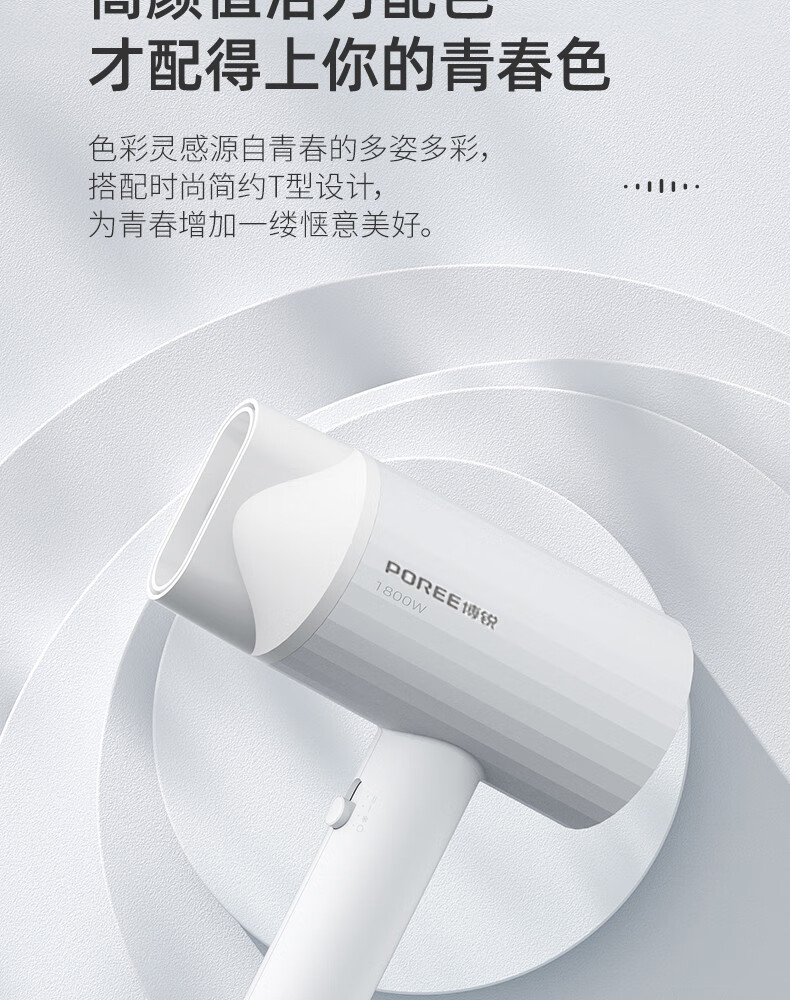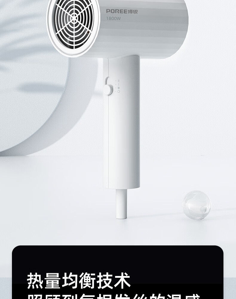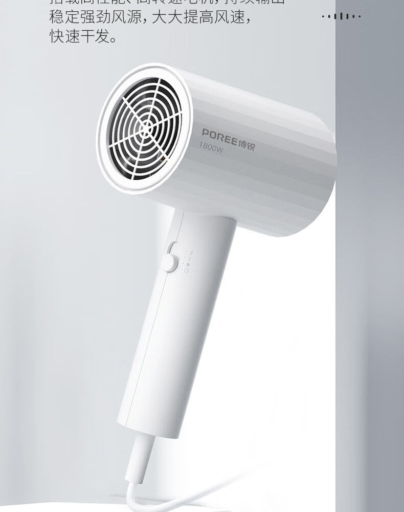 Borui PH1627 hair dryer 1800 watt high power hot and cold air cylinder Internet celebrity hammer portable constant temperature hair salon white 1800 watts