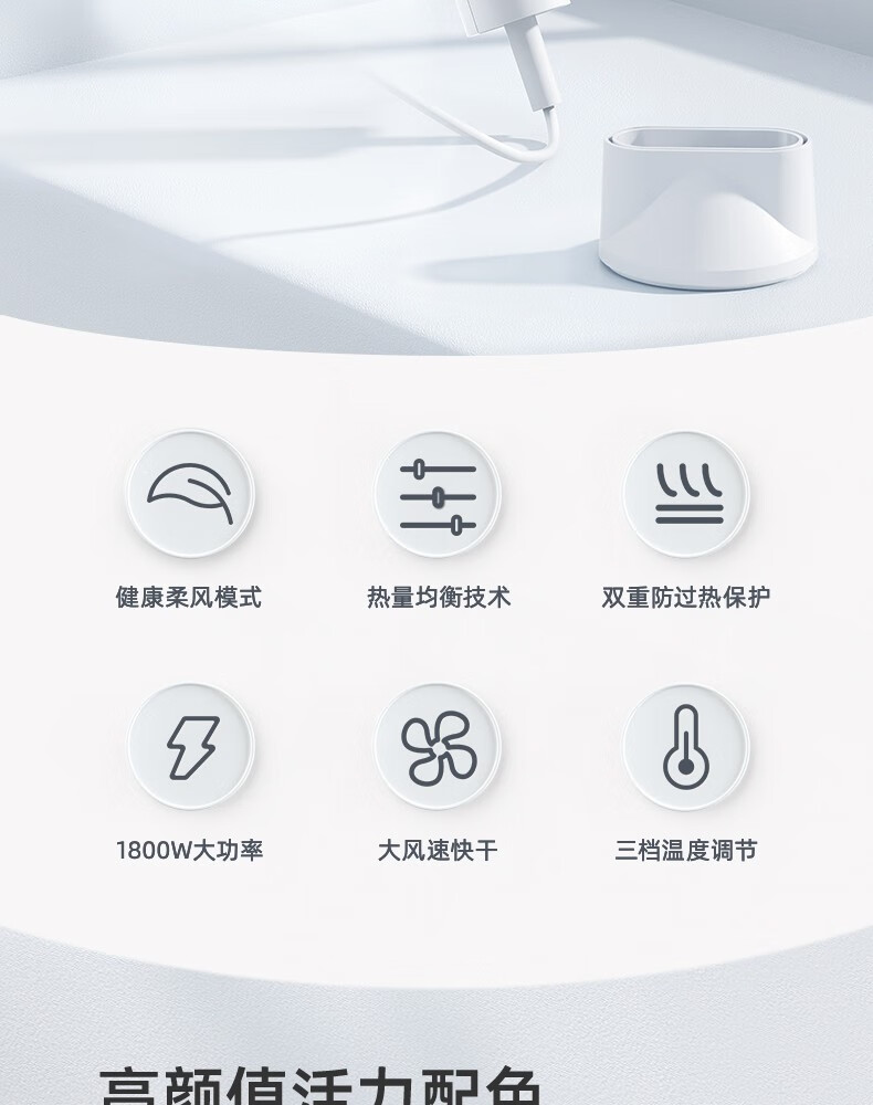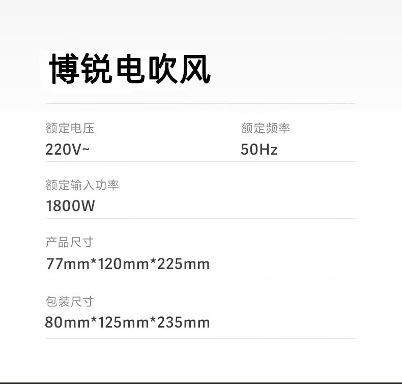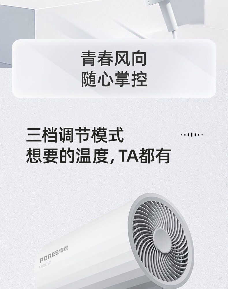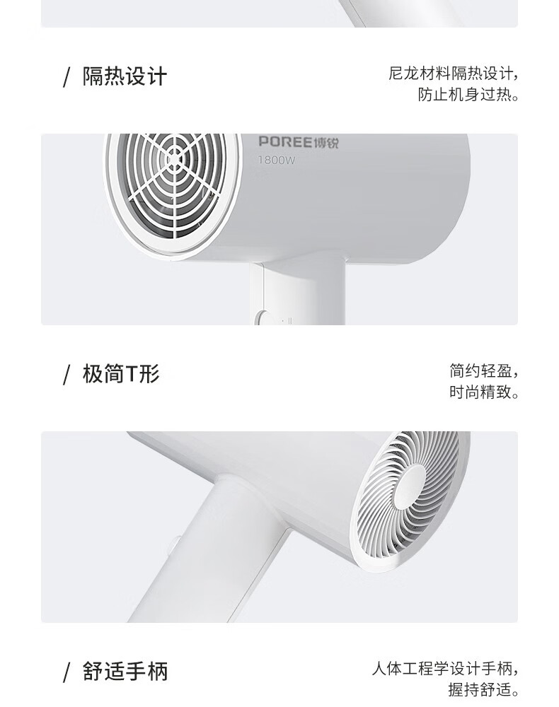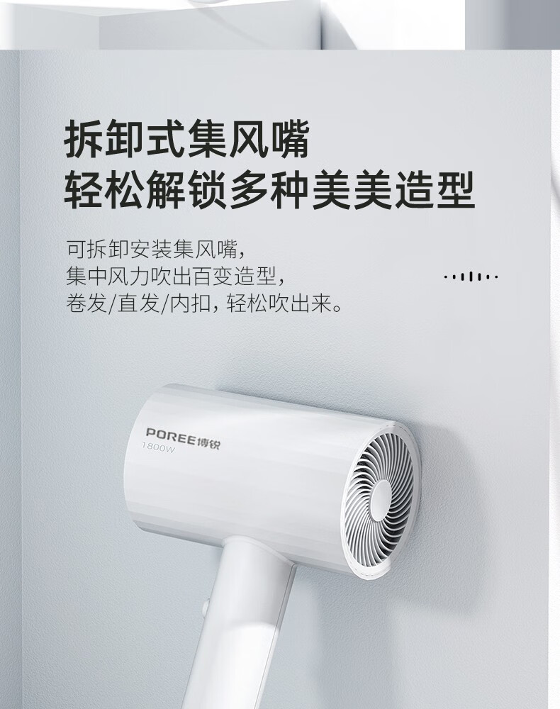 Borui PH1627 hair dryer 1800 watt high power hot and cold air cylinder Internet celebrity hammer portable constant temperature hair salon white 1800 watts