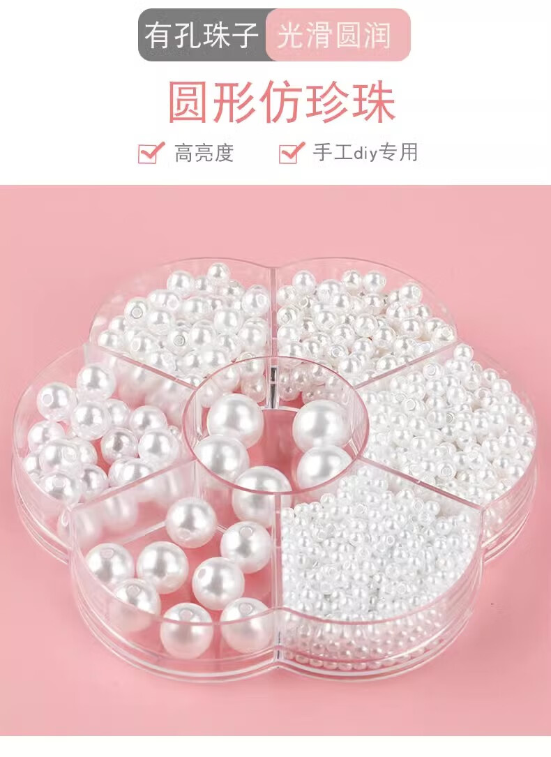 Maimed Imitation Pearl Multi-Specifications Round Holed Pearl Set Flat Bottom Pearl Loose Beads Mobile Manicure DIY Handmade Materials White Set