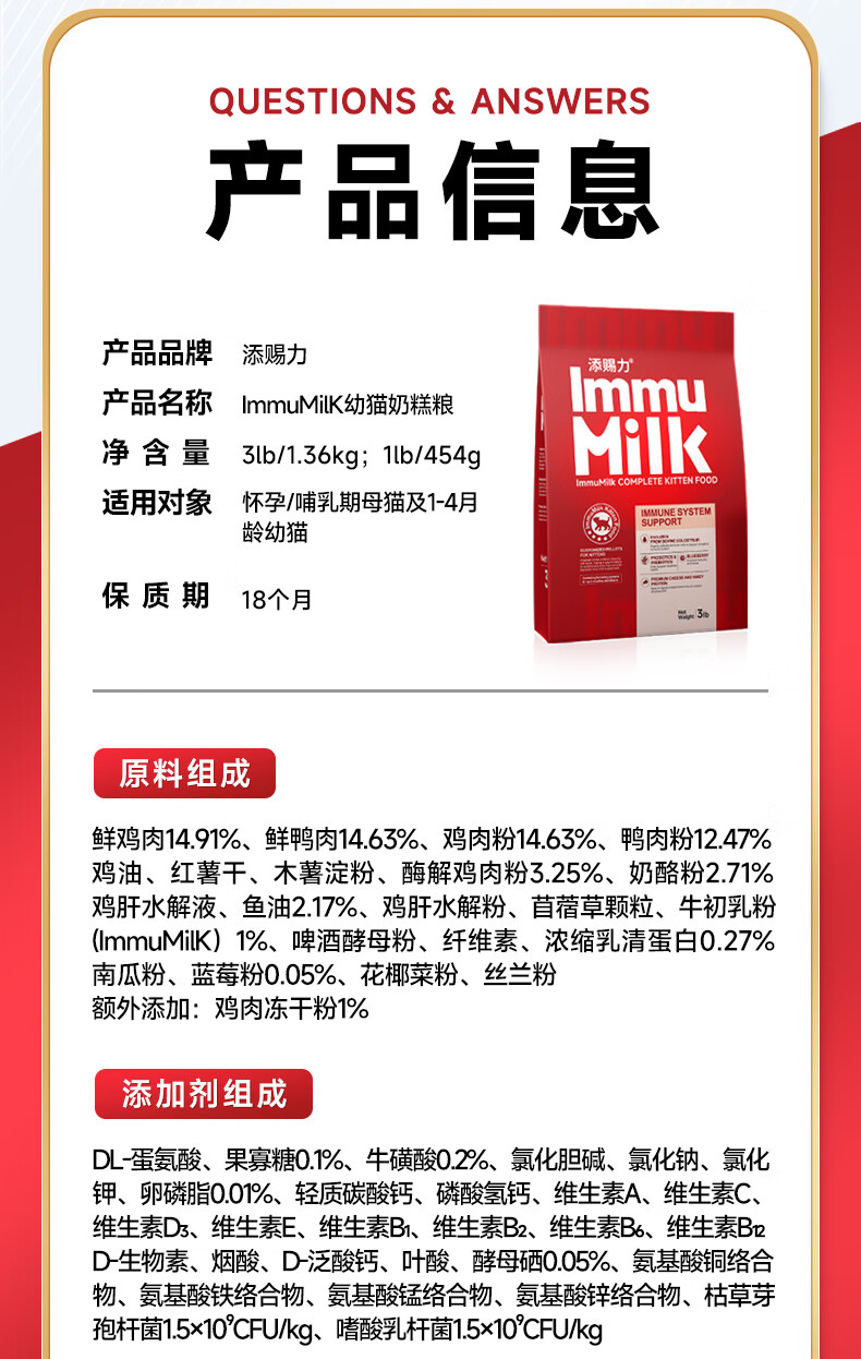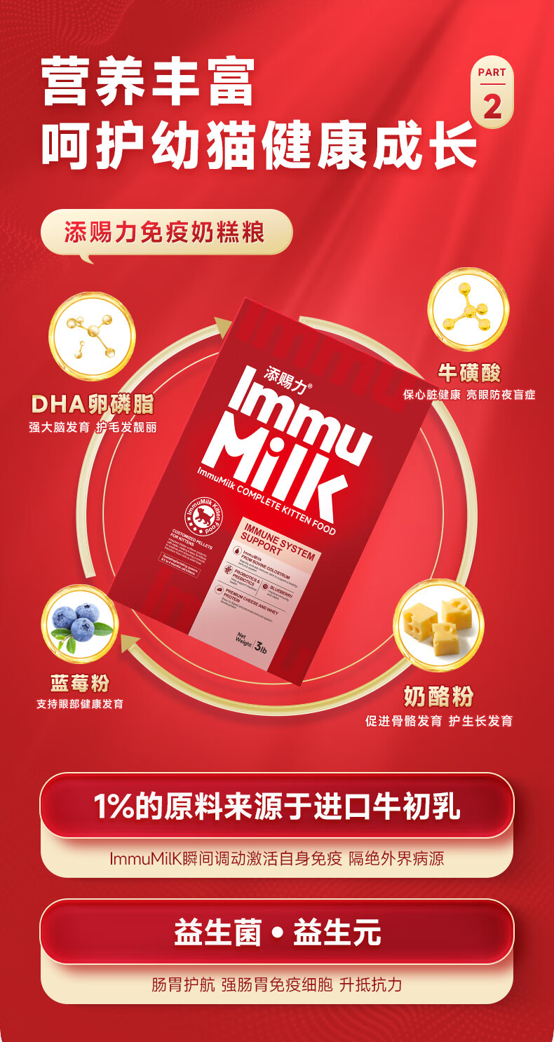 Timcili Milk Cake Cat Food Kitten Cat Food 1 to 4 Months Old Lactoferrin Milk Cake Cat Colostrum Immune Food 1.36kg
