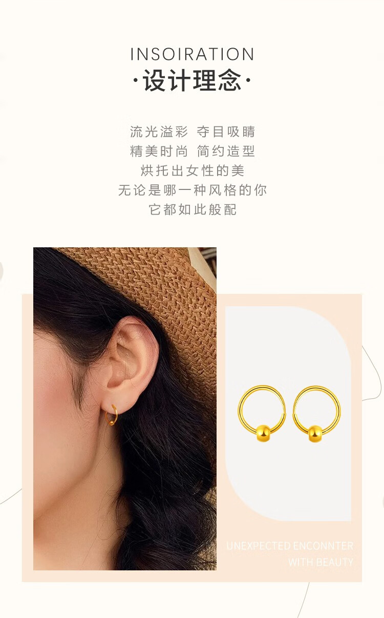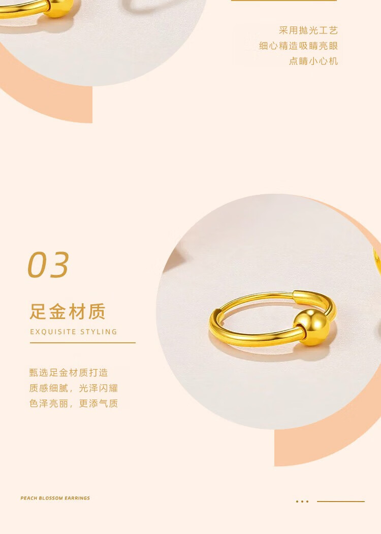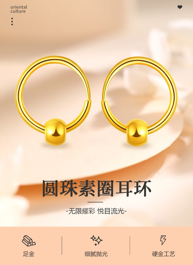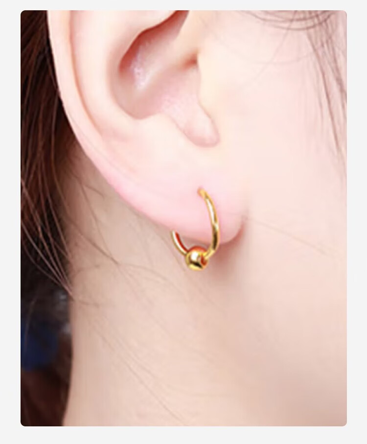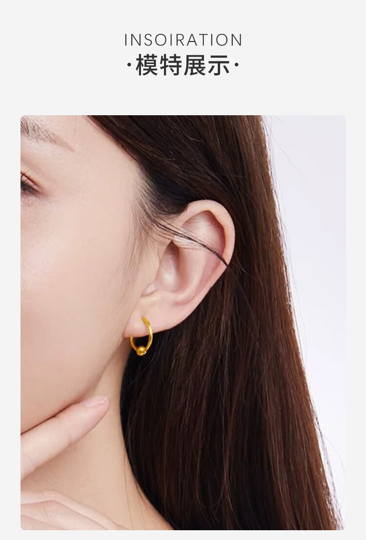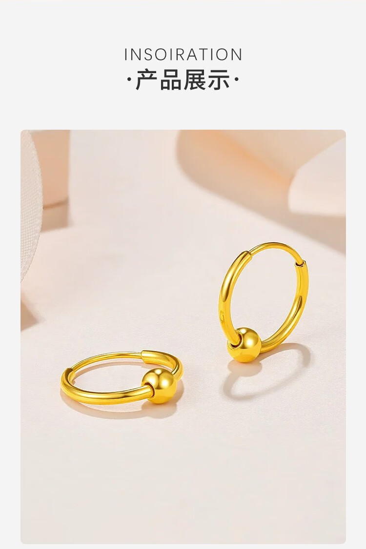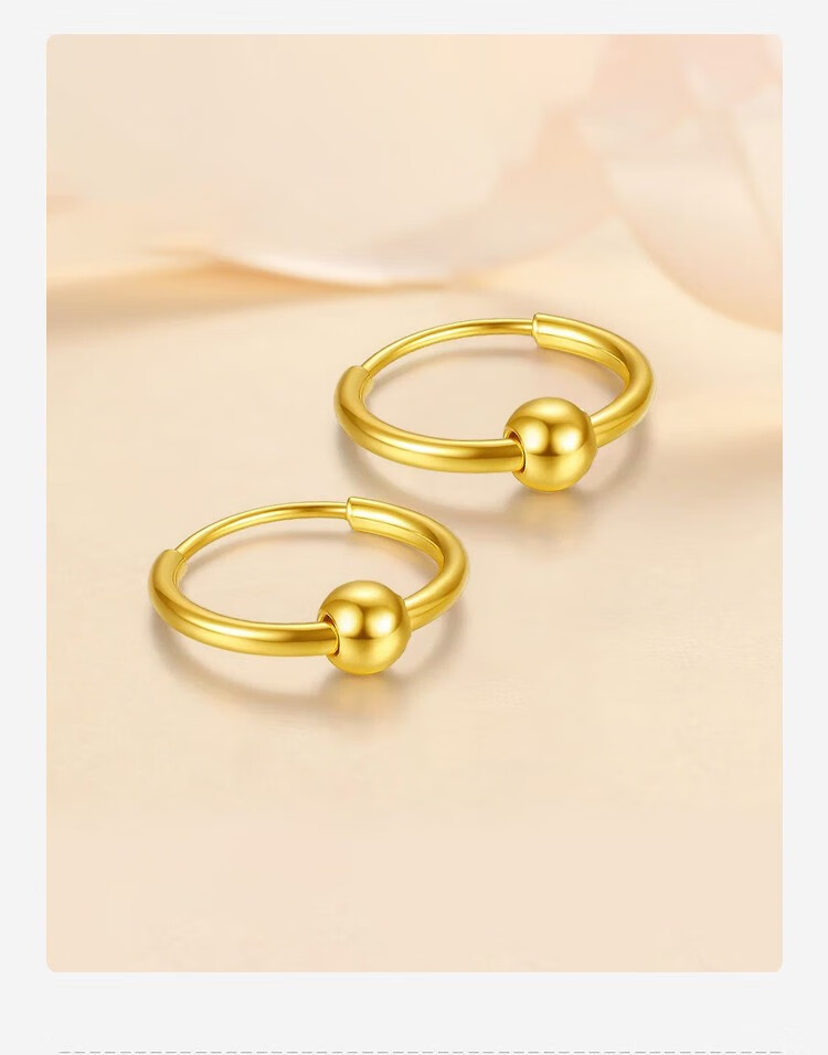 China Gold (CHINA GOLD) round bead gold earrings for women, solid gold bead earrings, earrings, anniversary birthday gifts for wife, girlfriend, today/next day delivery, round bead plain hoop earrings, about 0.4g, medium gold gift box