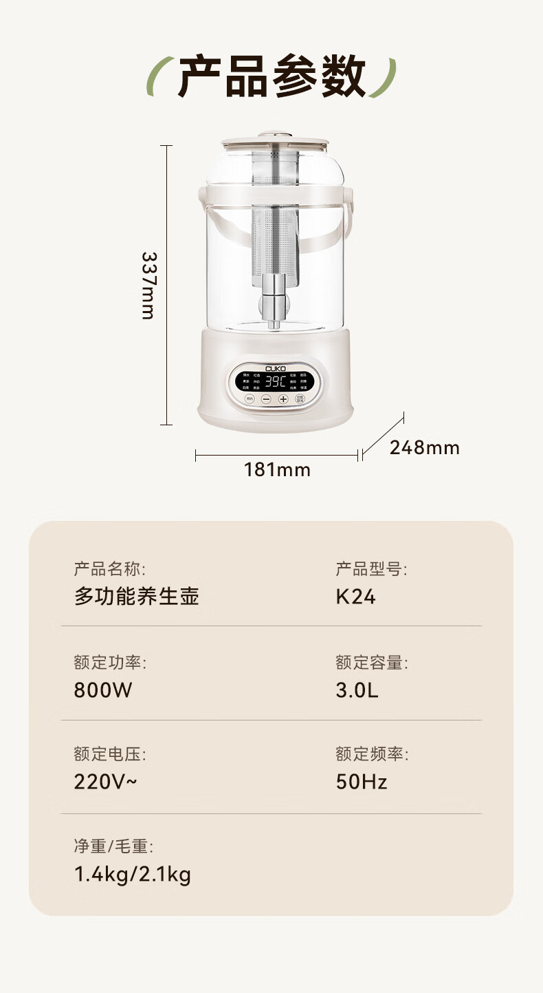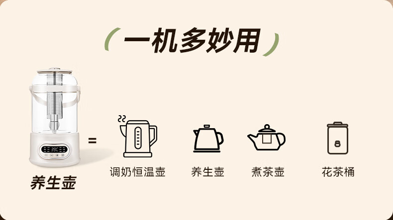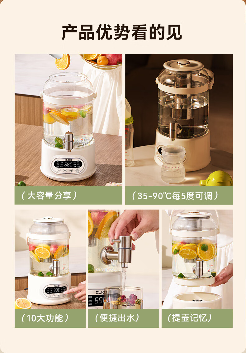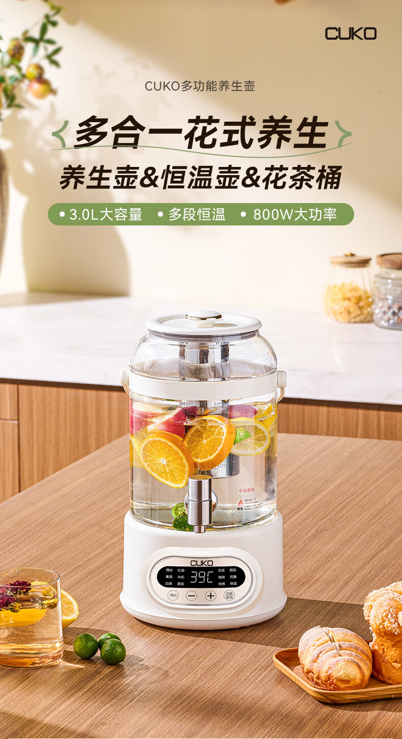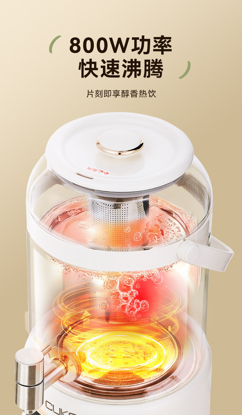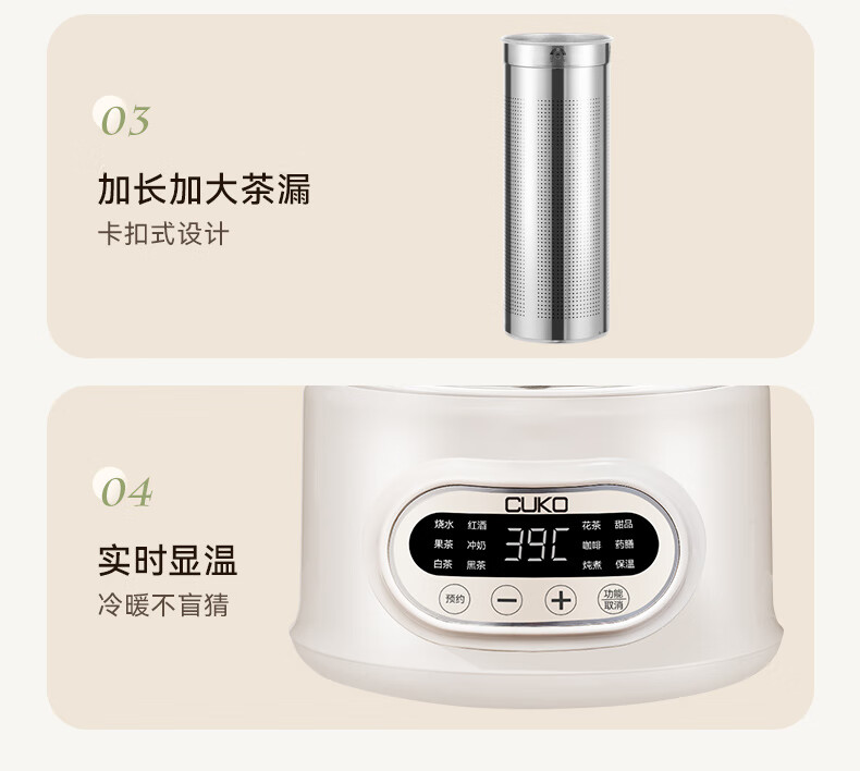 CUKO flower teapot glass body British CUKO teapot teapot insulation stove for tea making multi-functional faucet flower teapot health pot kettle electric kettle thermostatic kettle off-white 1L regular model with tea drain