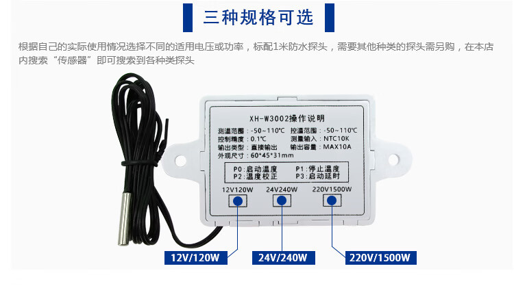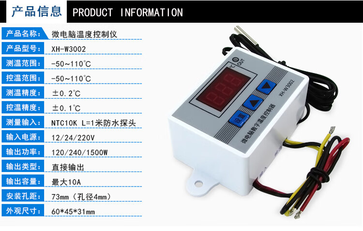 Microcomputer digital thermostat temperature control switch temperature controller digital display 0.1 accuracy 12V24V220V XH-W3002 AC110-220V/1500W