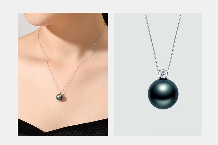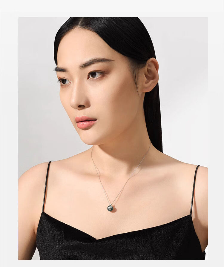 Muqin 18k gold seawater black pearl chain brand Yiwanyuan versatile pearl pendant is a gift for girlfriend about 10-10 jewelry