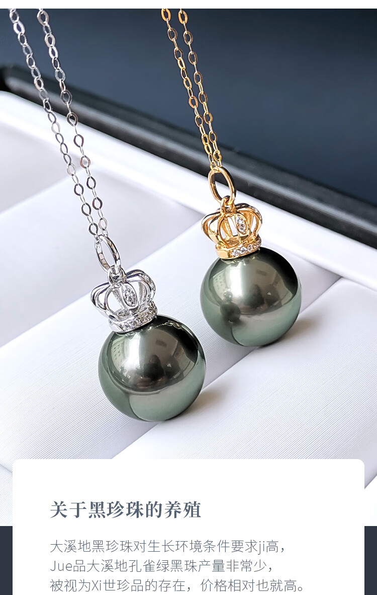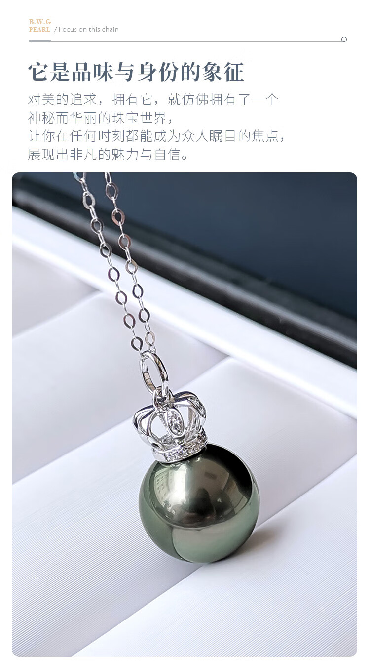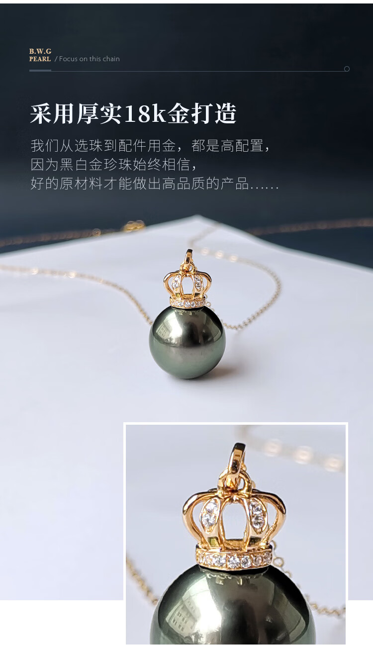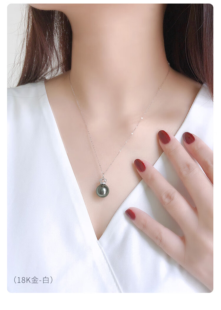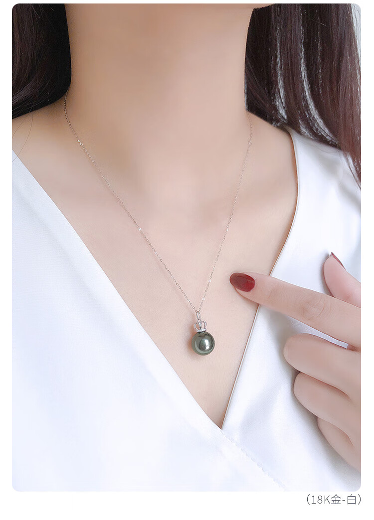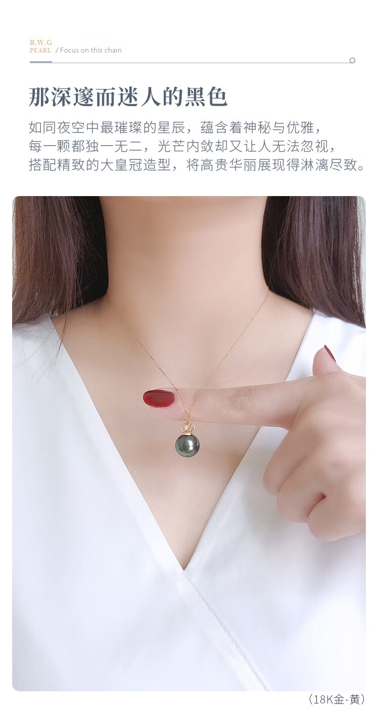 Muqin black and white gold pearl Tahitian black pearl pendant 18K gold crown seawater black bead necklace single women's gift