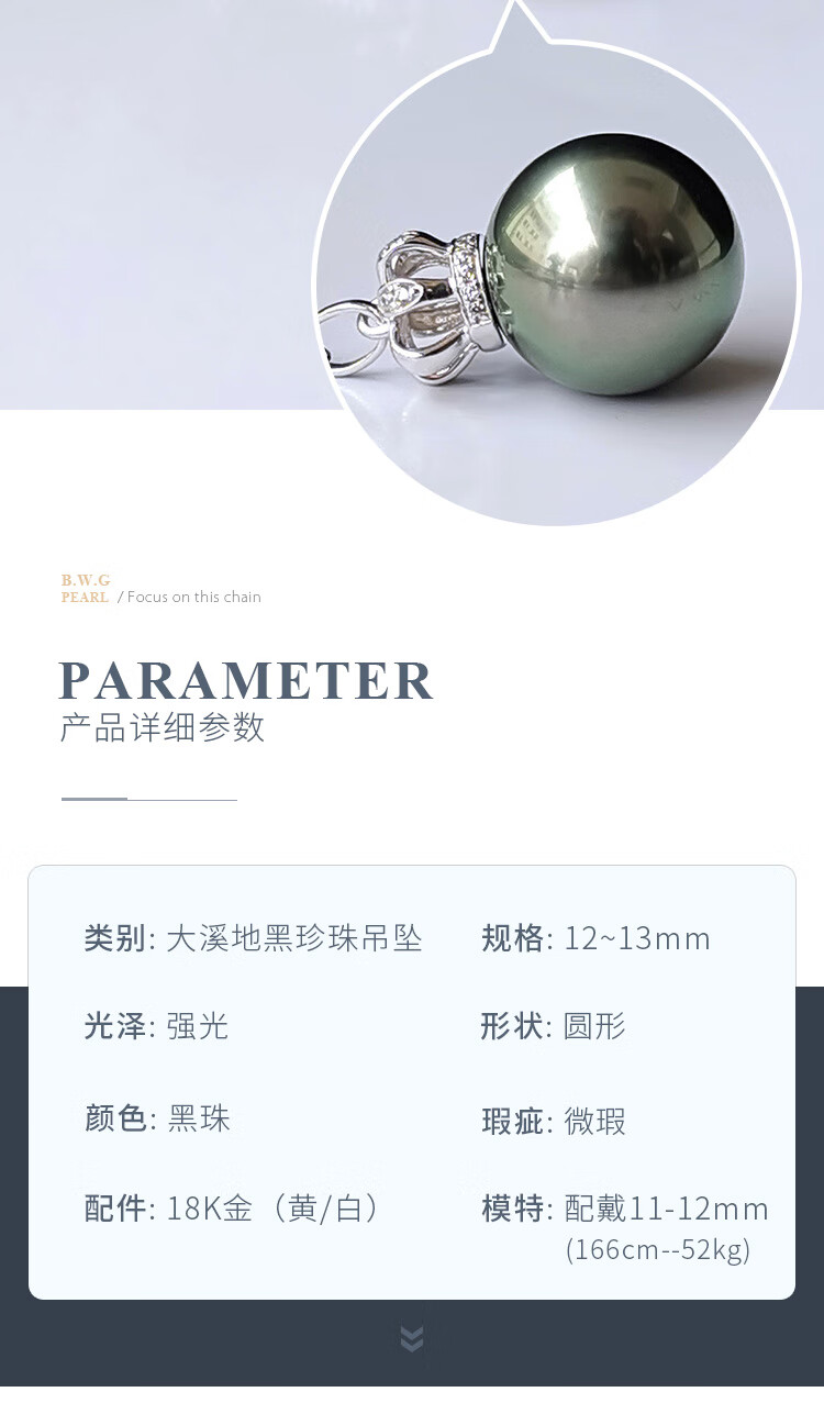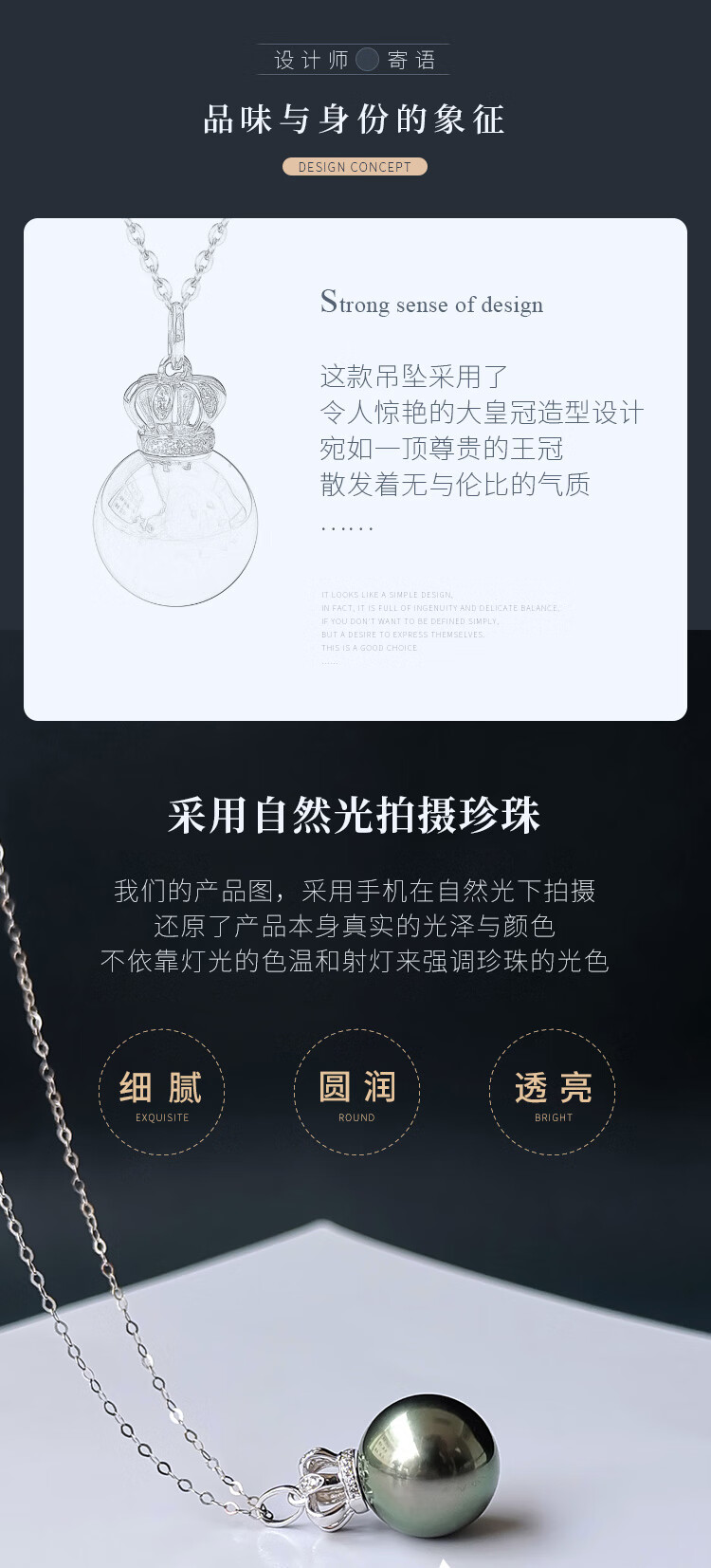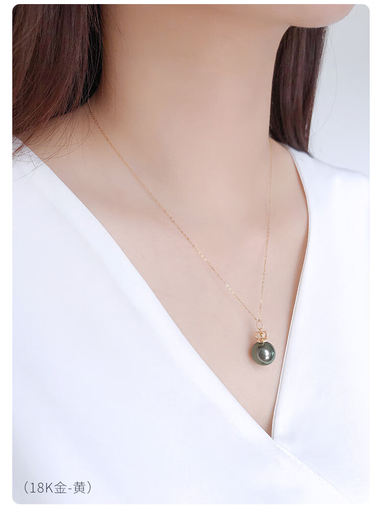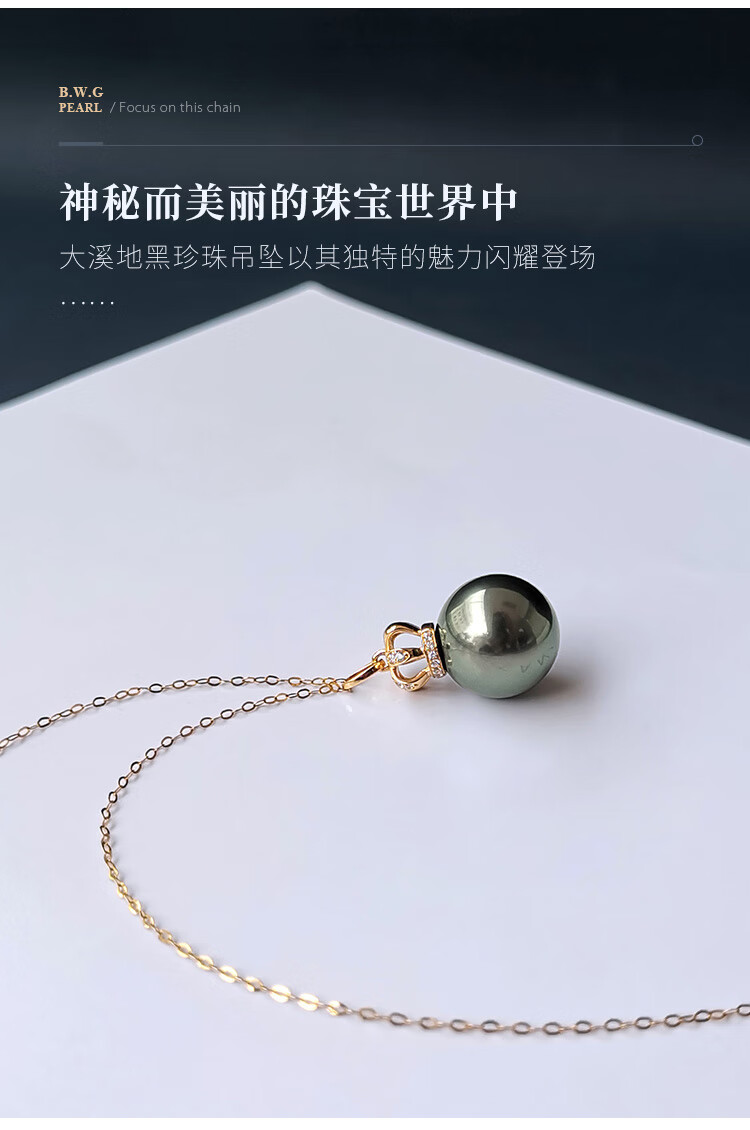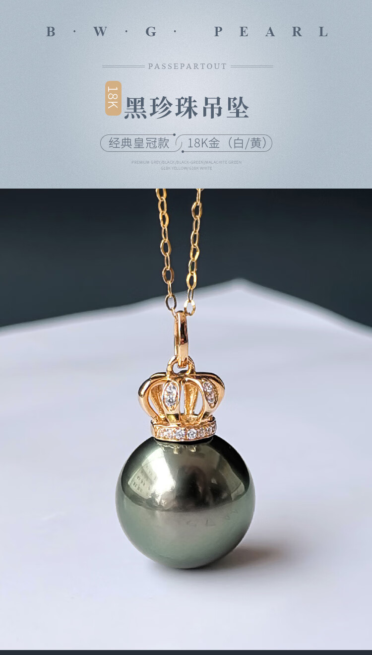 Muqin black and white gold pearl Tahitian black pearl pendant 18K gold crown seawater black bead necklace single women's gift