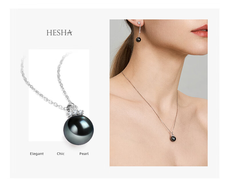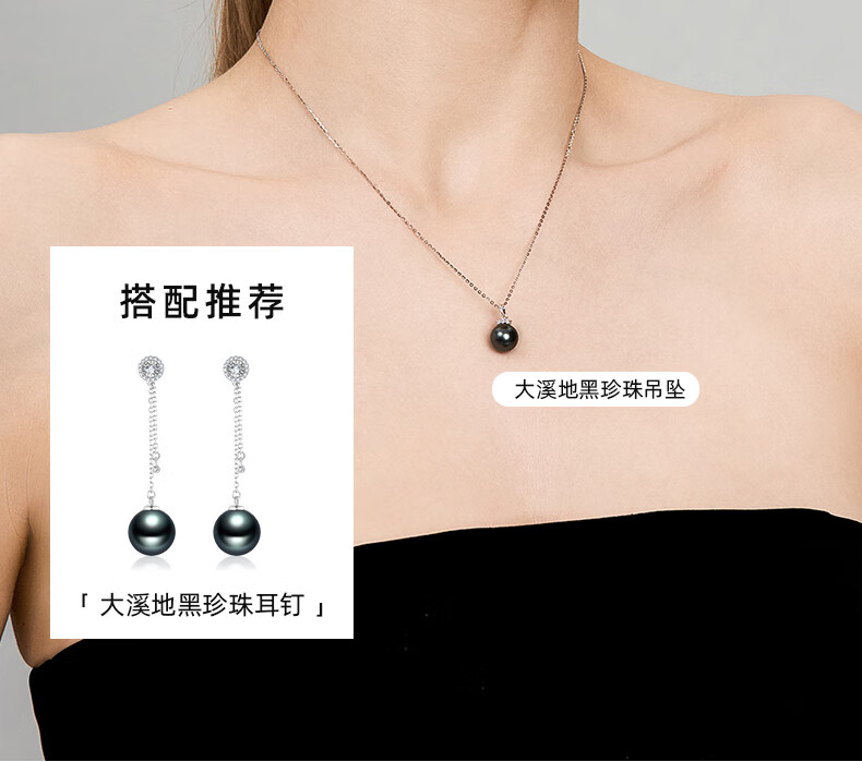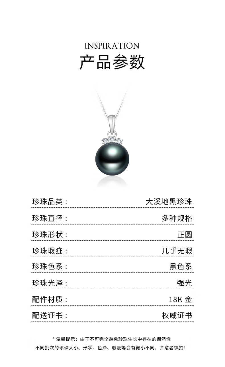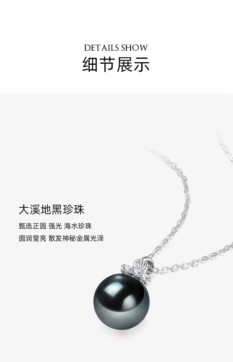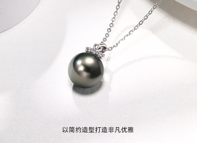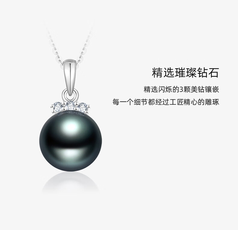 Muqin Tahitian black pearl pendant 18K gold diamond necklace light luxury jewelry necklace clavicle chain gift for girlfriend 12-13mm perfect round/strong light with thick 18K gold cross chain