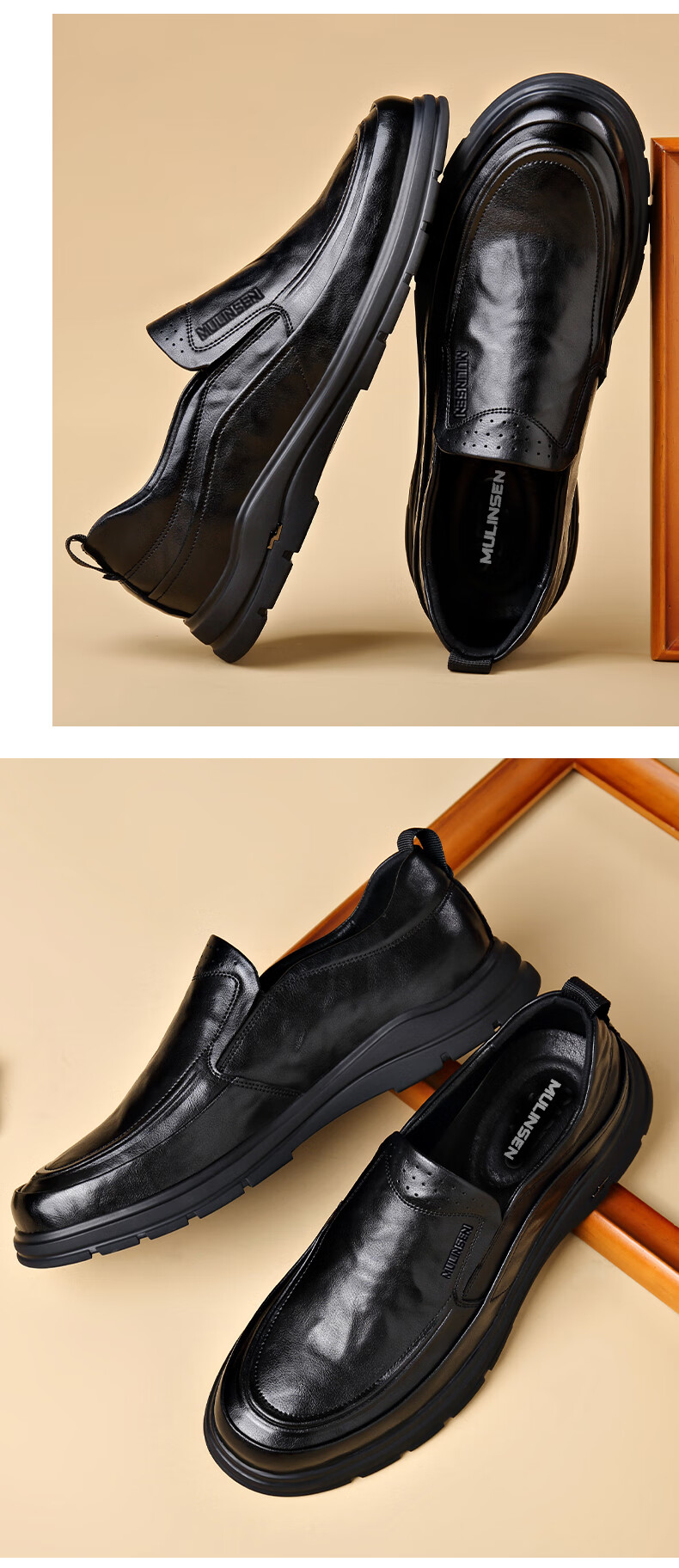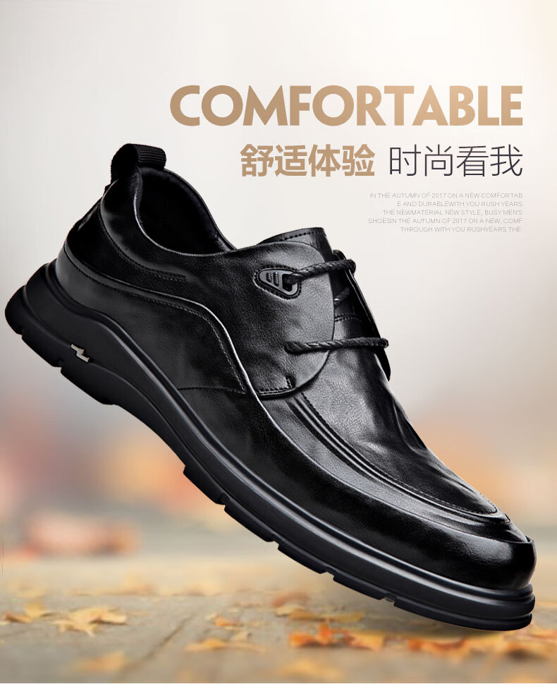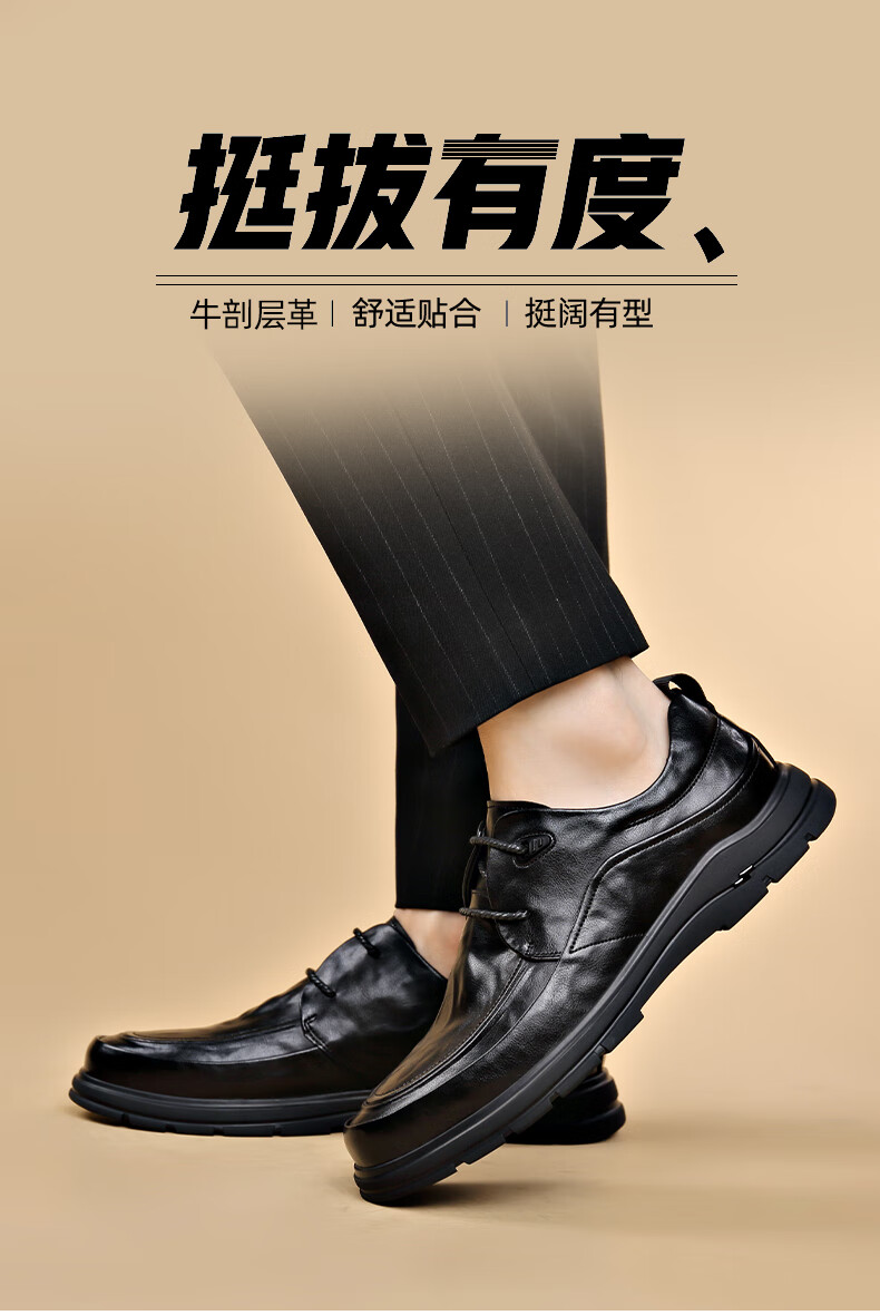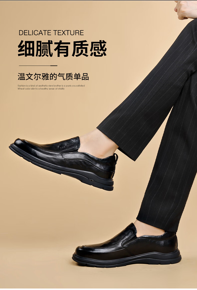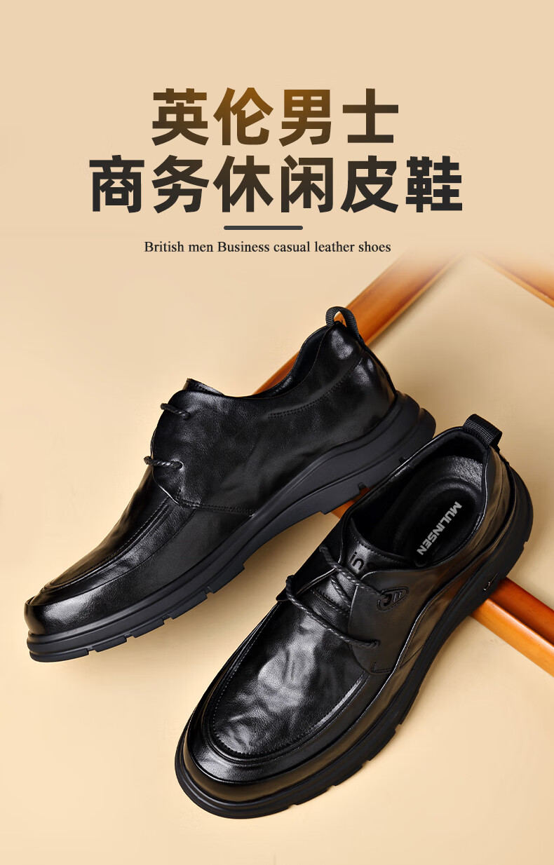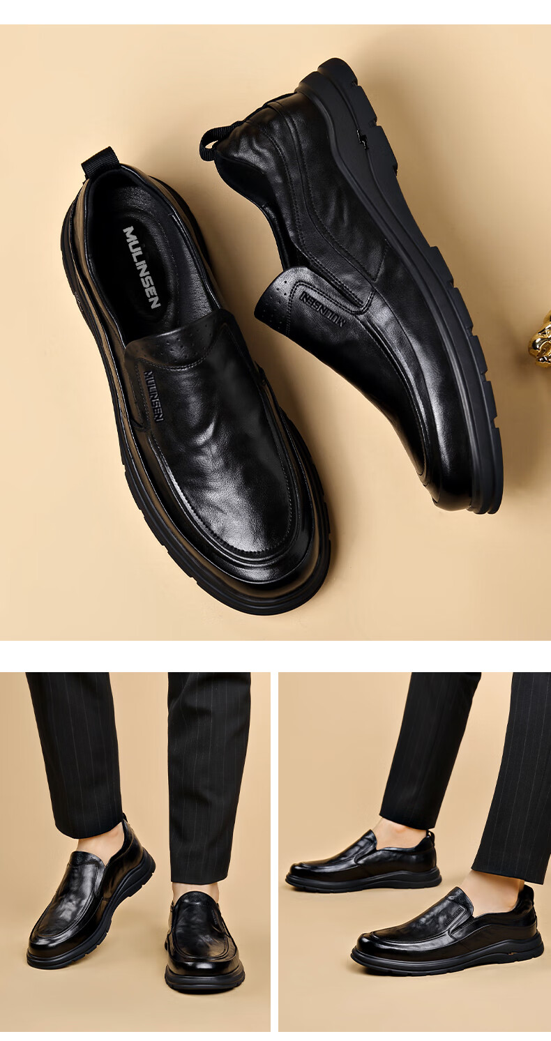 MULINSEN leather shoes men's genuine soft leather formal business casual shoes spring and autumn lace versatile soft sole wedding shoes dad shoes black DY-ZK236131 black 40