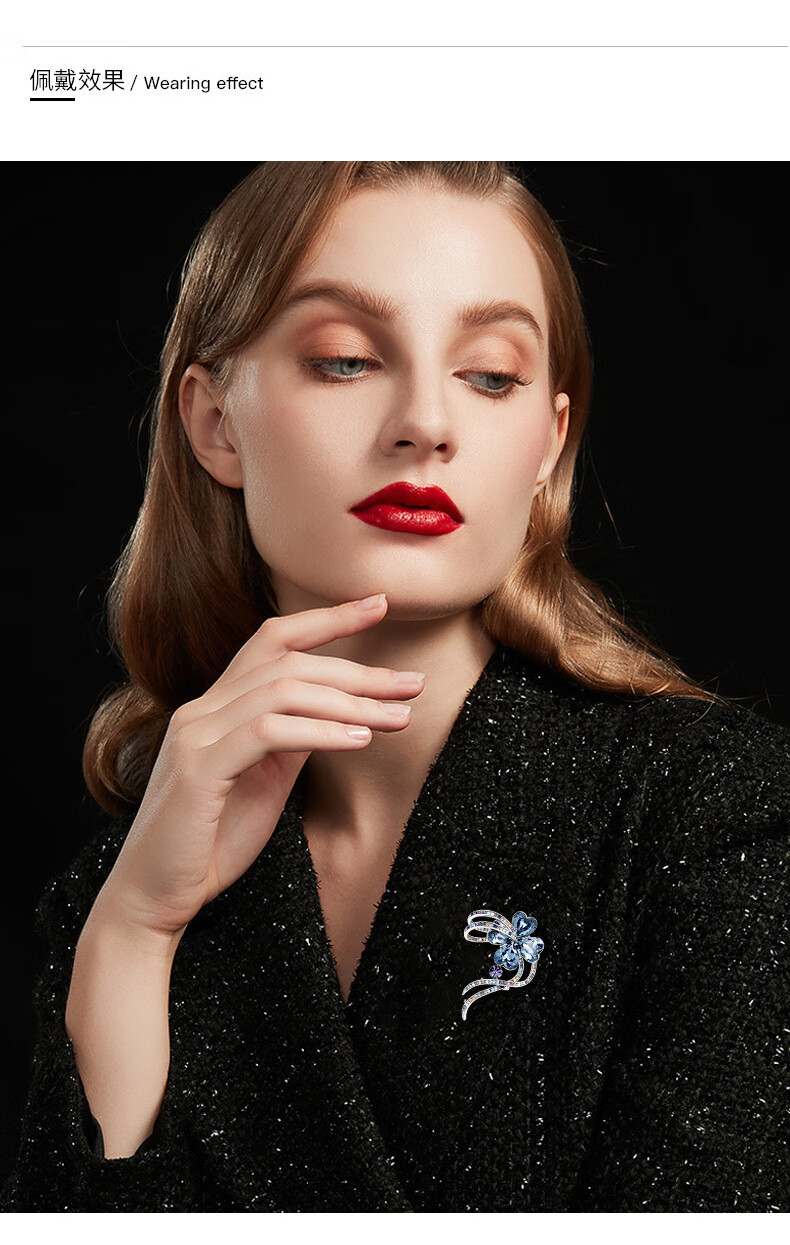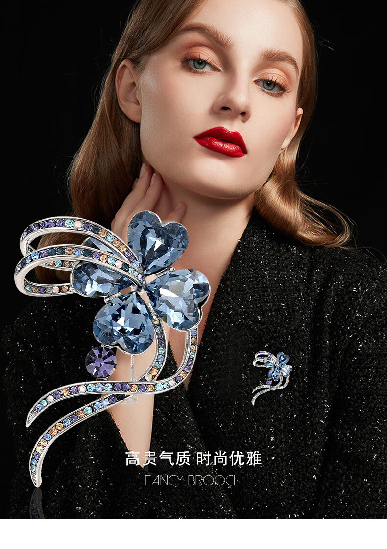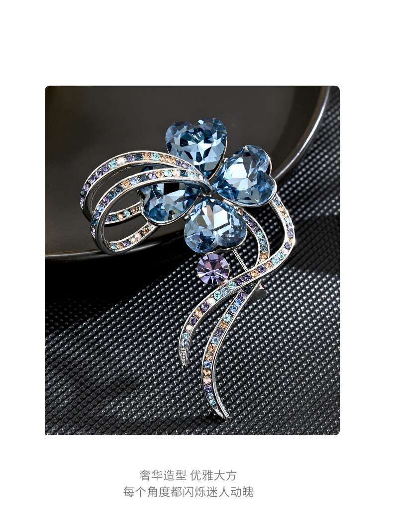 DEMURE Lucky Ribbon Four-leaf Clover Brooch High-end Women's Light Luxury Corsage Exquisite Suit Coat Accessories Lucky Ribbon Four-leaf Clover Brooch