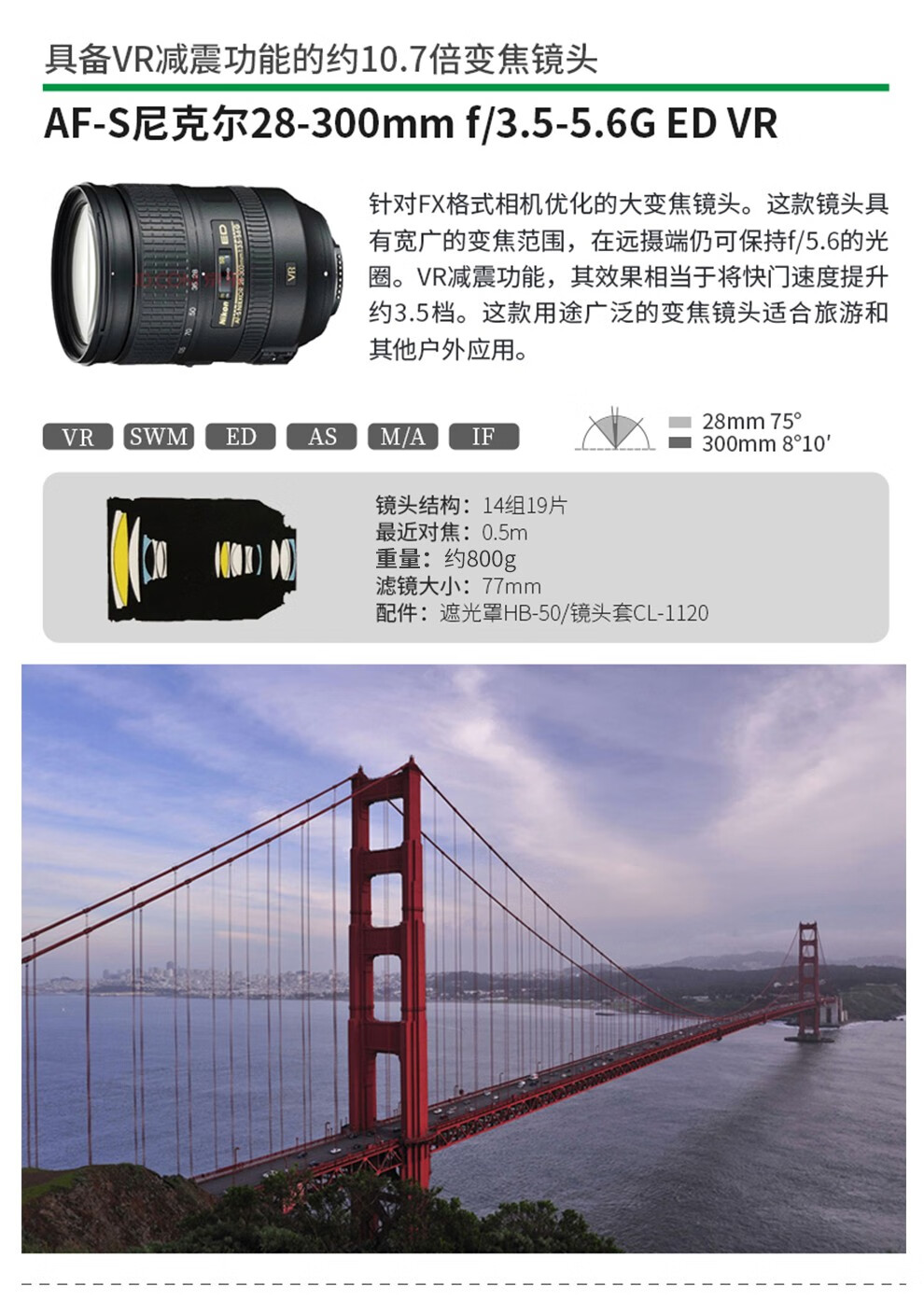 Nikon AF-S Nikkor full-frame SLR lens zoom lens wide-angle lens AF-S Nikkor 28-300mmf/3.5-5.6G New International