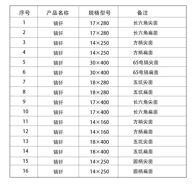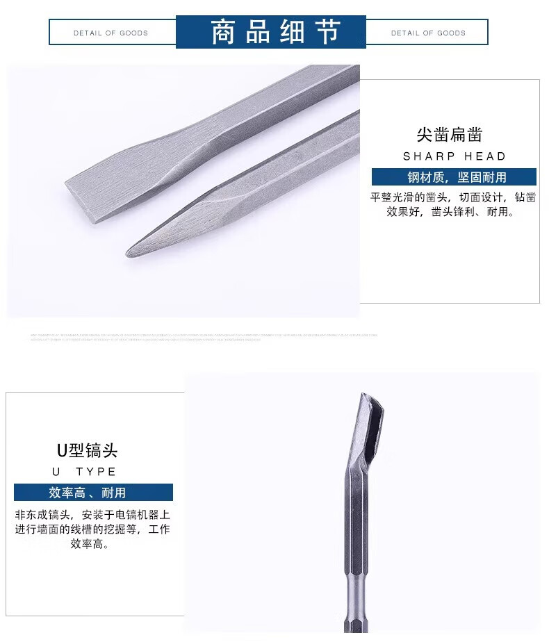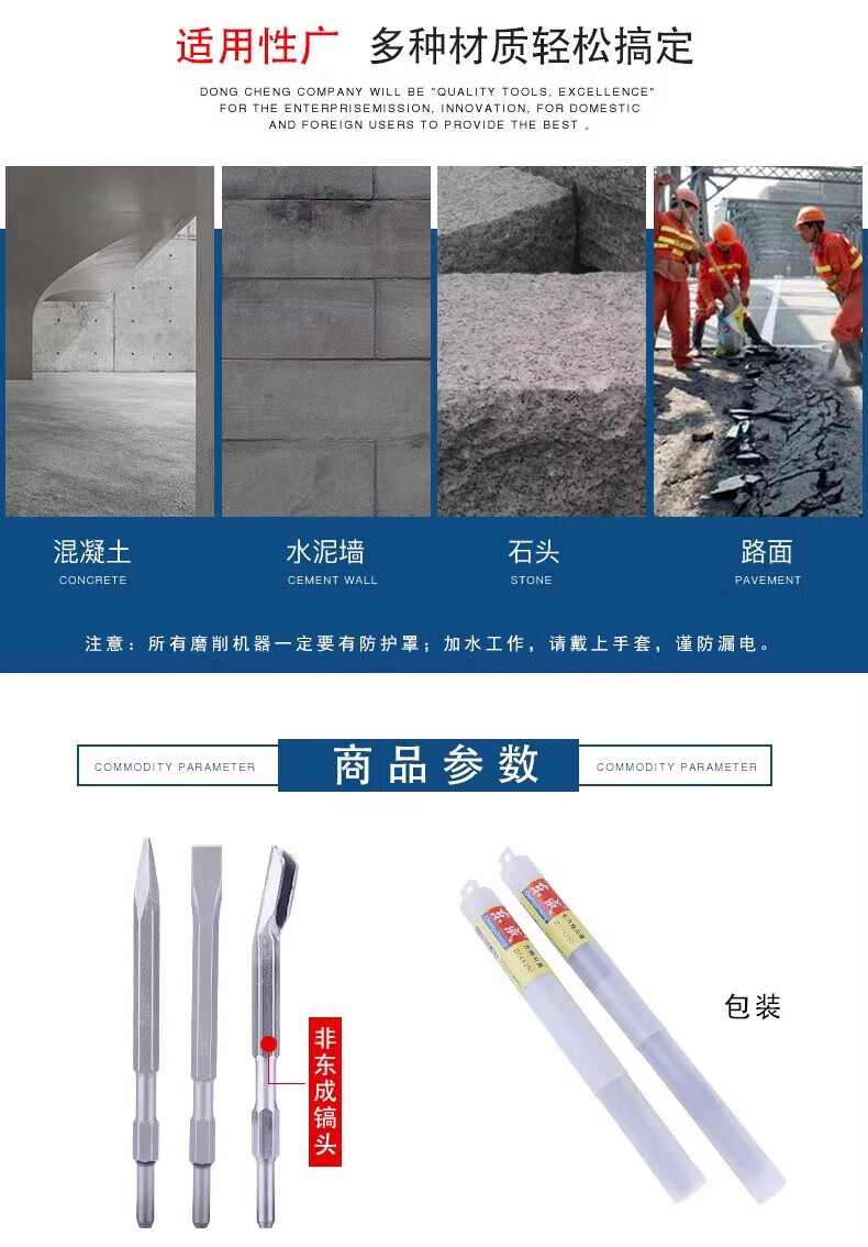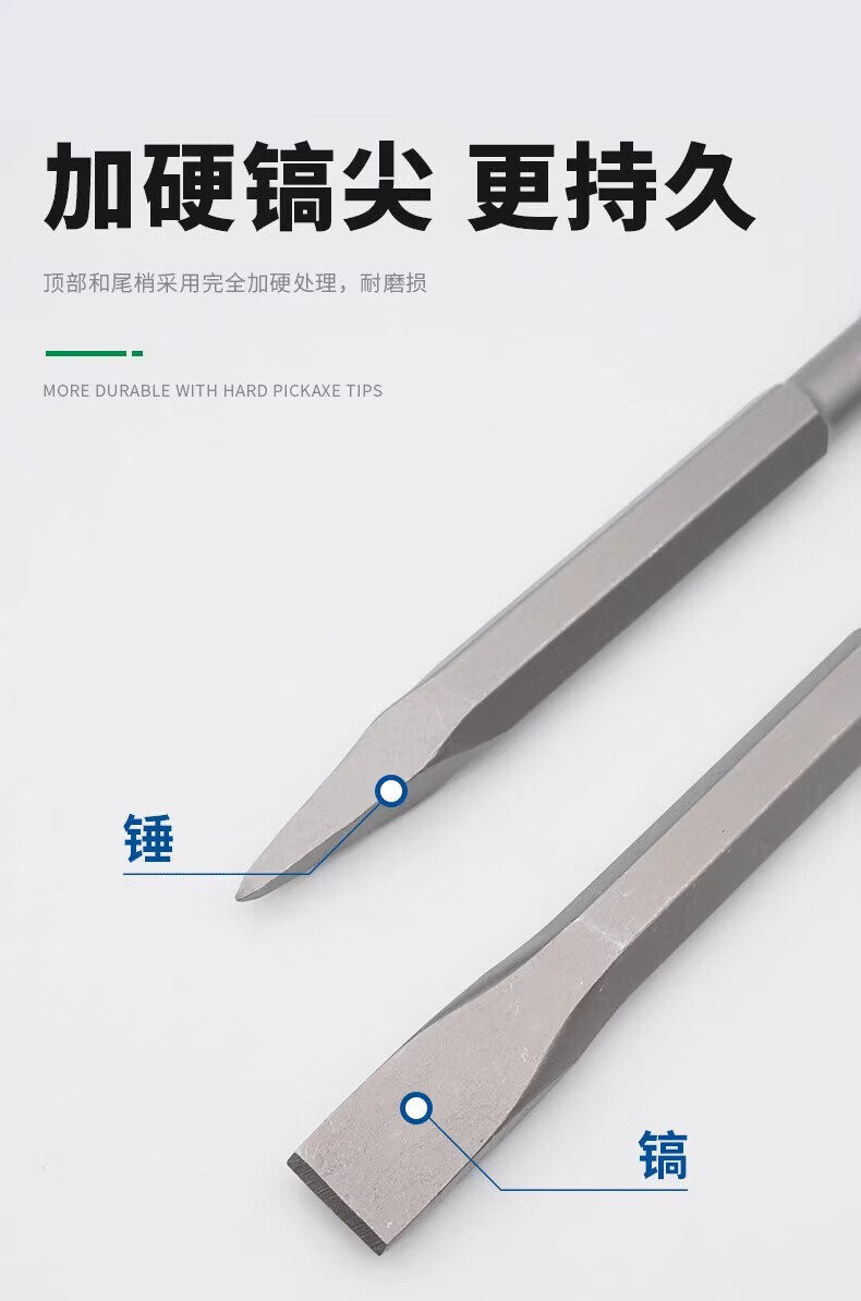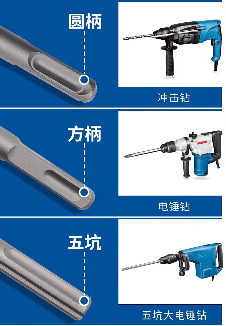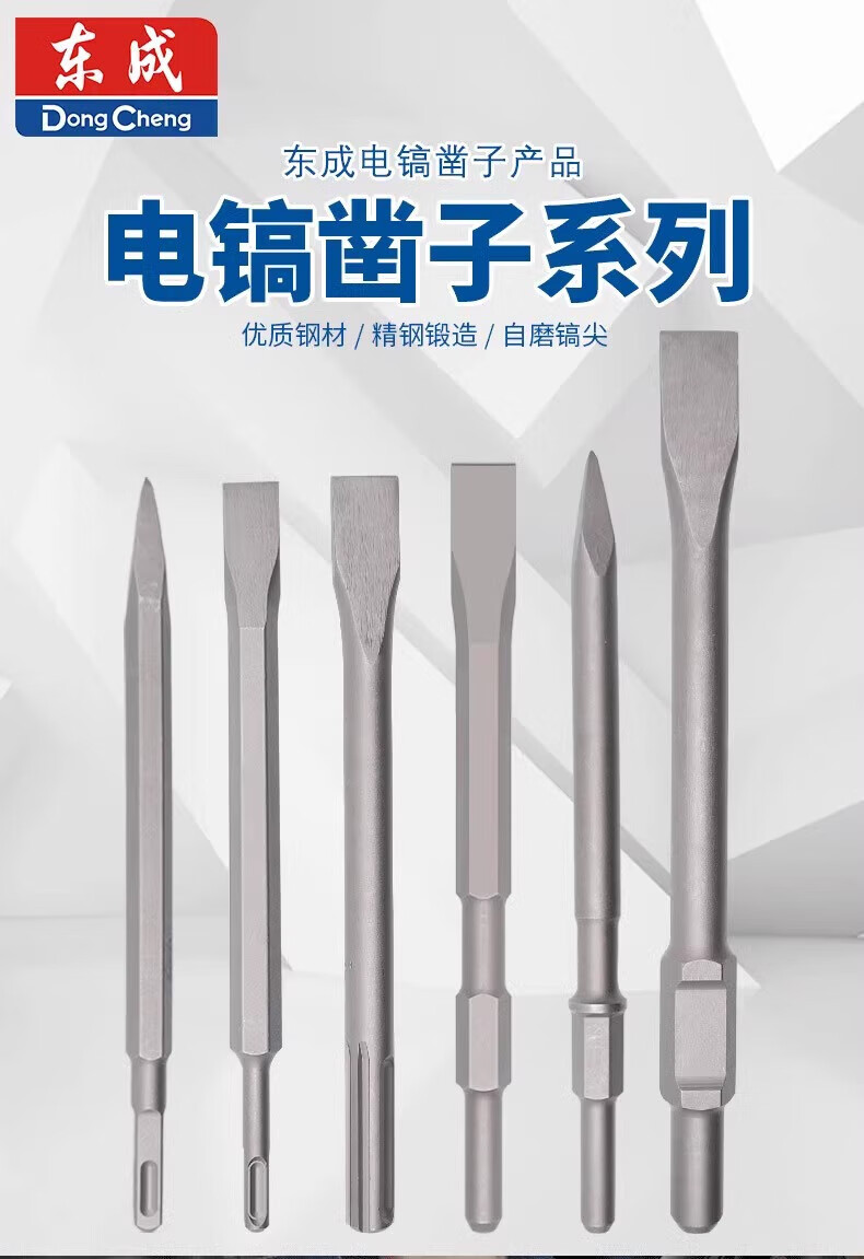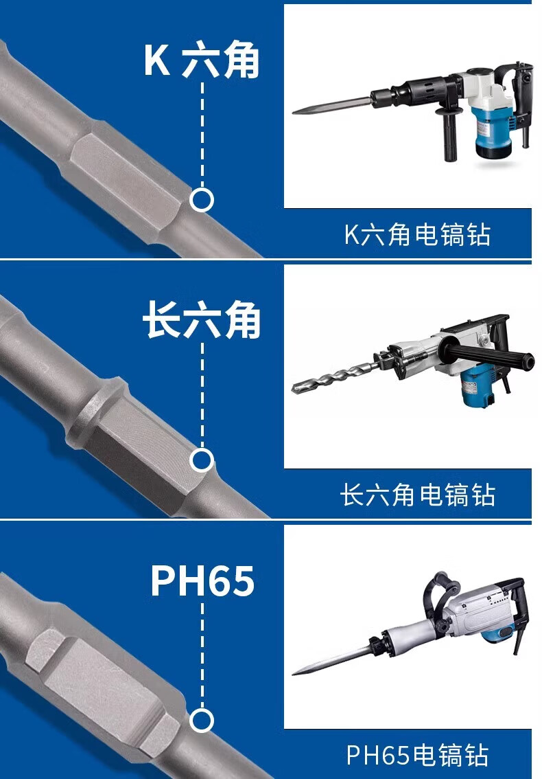 Dongcheng electric hammer, chisel, impact drill bit, electric pick, pointed chisel, flat chisel, square handle, round handle, hexagonal handle, widened and lengthened shovel, round handle, sharp chisel + flat chisel 14*250, one each