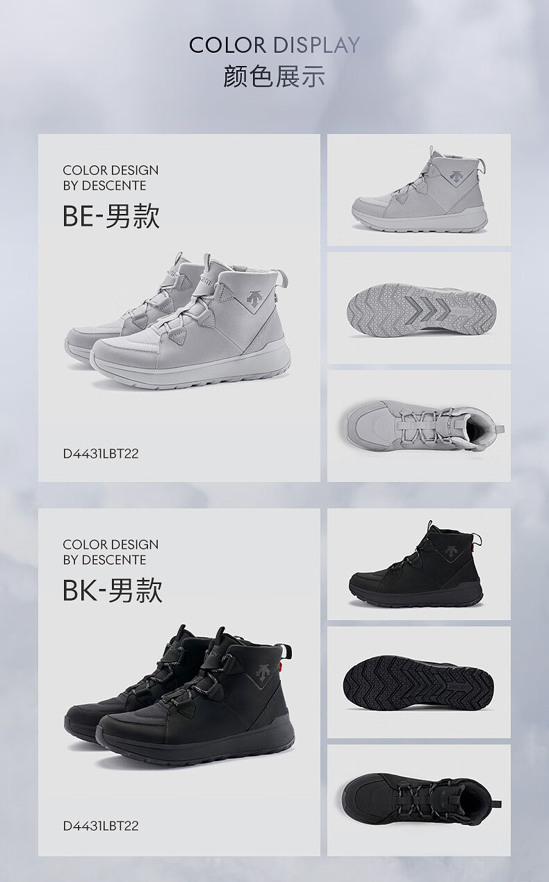 DESCENTE SKI STYLE Unisex wear-resistant cushioning warm snow boots short boots boots BK-black (D4431LBT22) 41