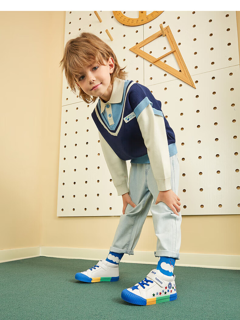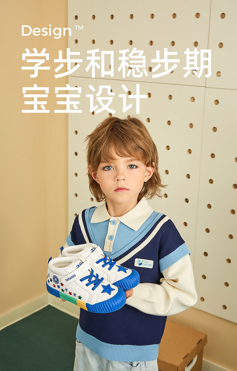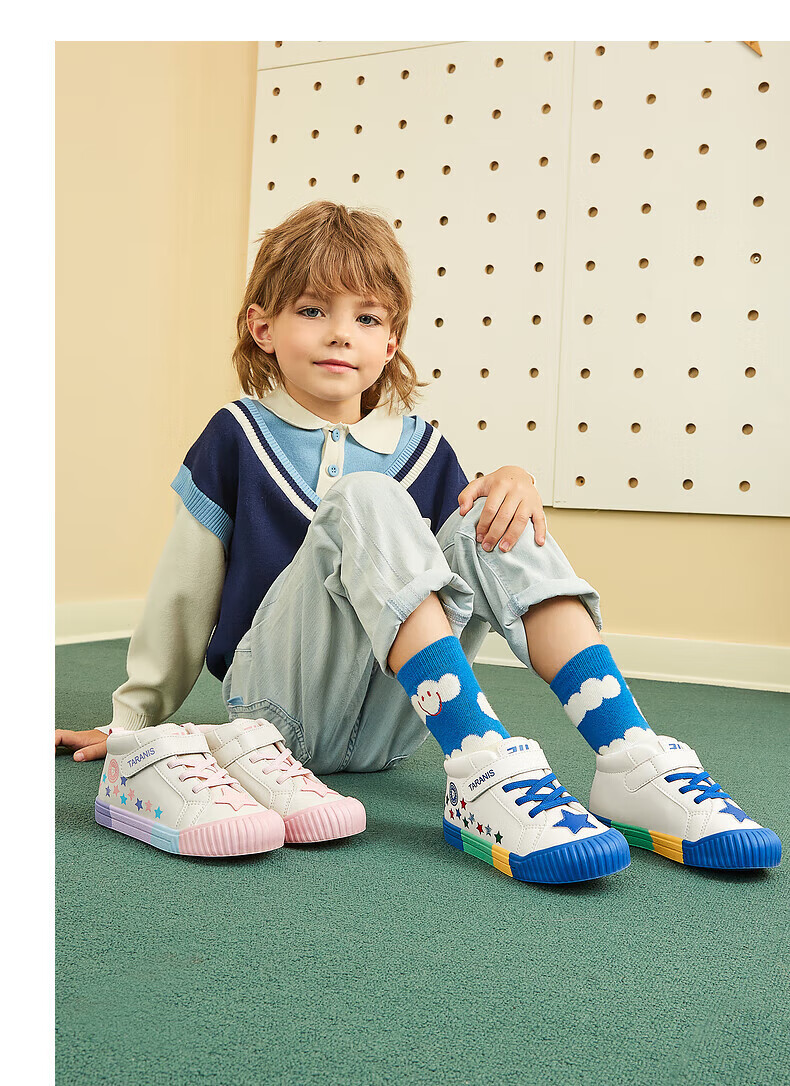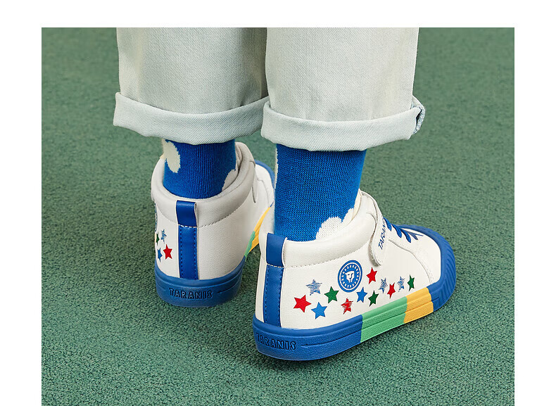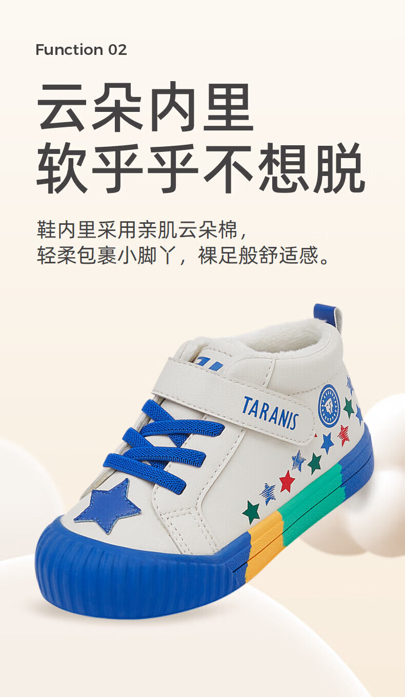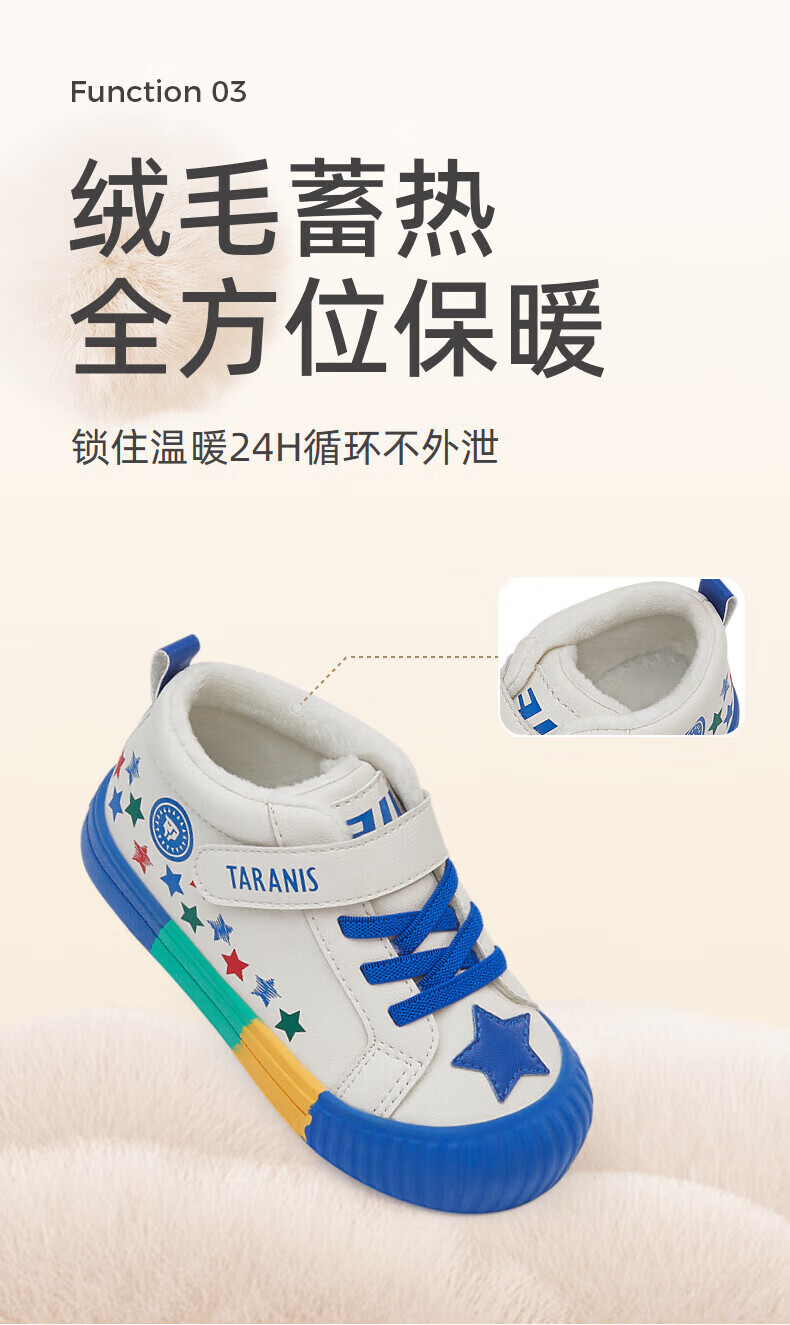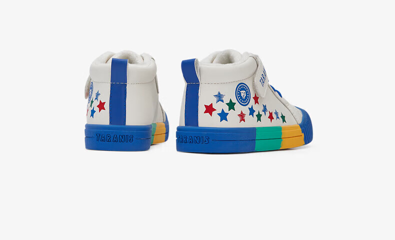 Tyrannis 311 new winter velvet warm kindergarten indoor shoes for boys, non-slip soft sole girls sneakers, white/blue/red 27, inner length 17.5/suitable for foot length 16.5