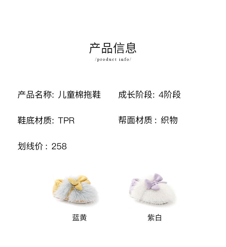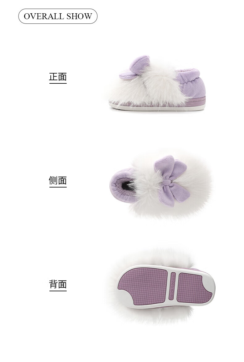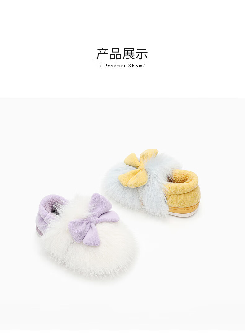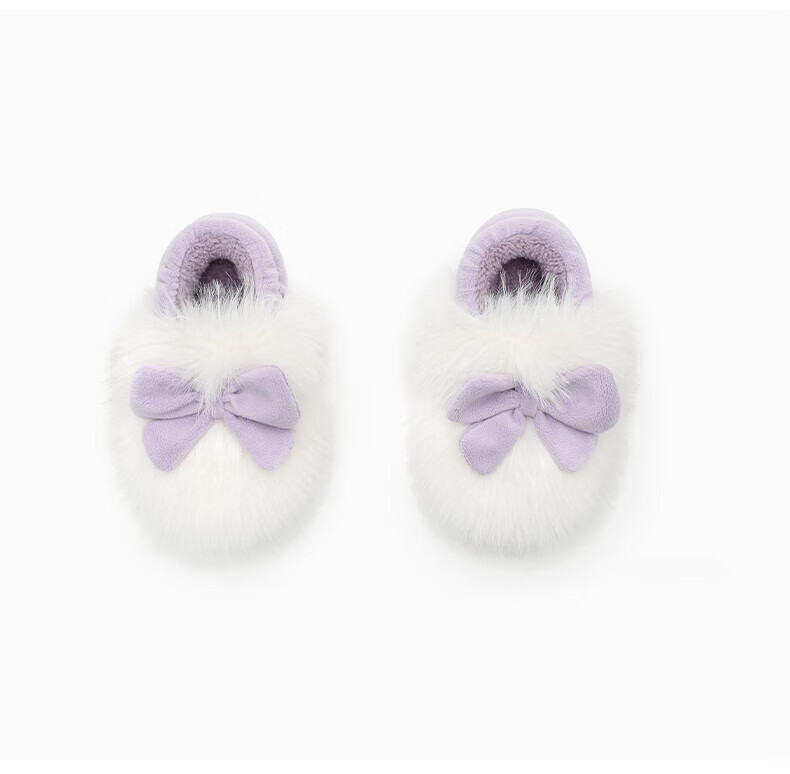 Terranis Children's Cotton Slippers Winter Fashion Thick Girls' Home Furnishing Warm Baby Cotton Shoes White/Purple 30-31 Suitable for Feet Length 18.5cm