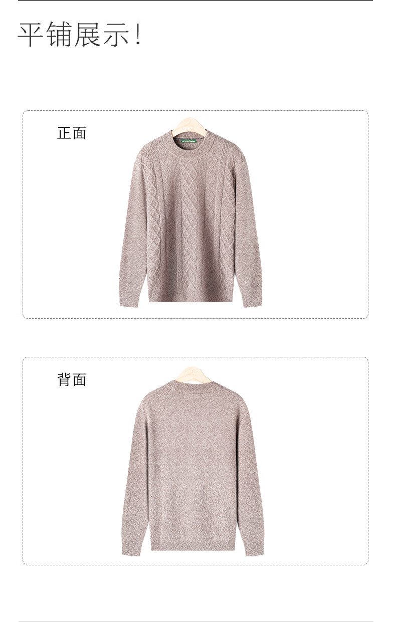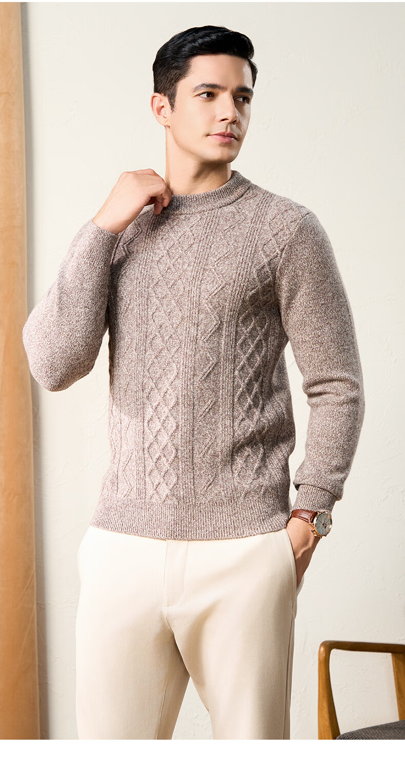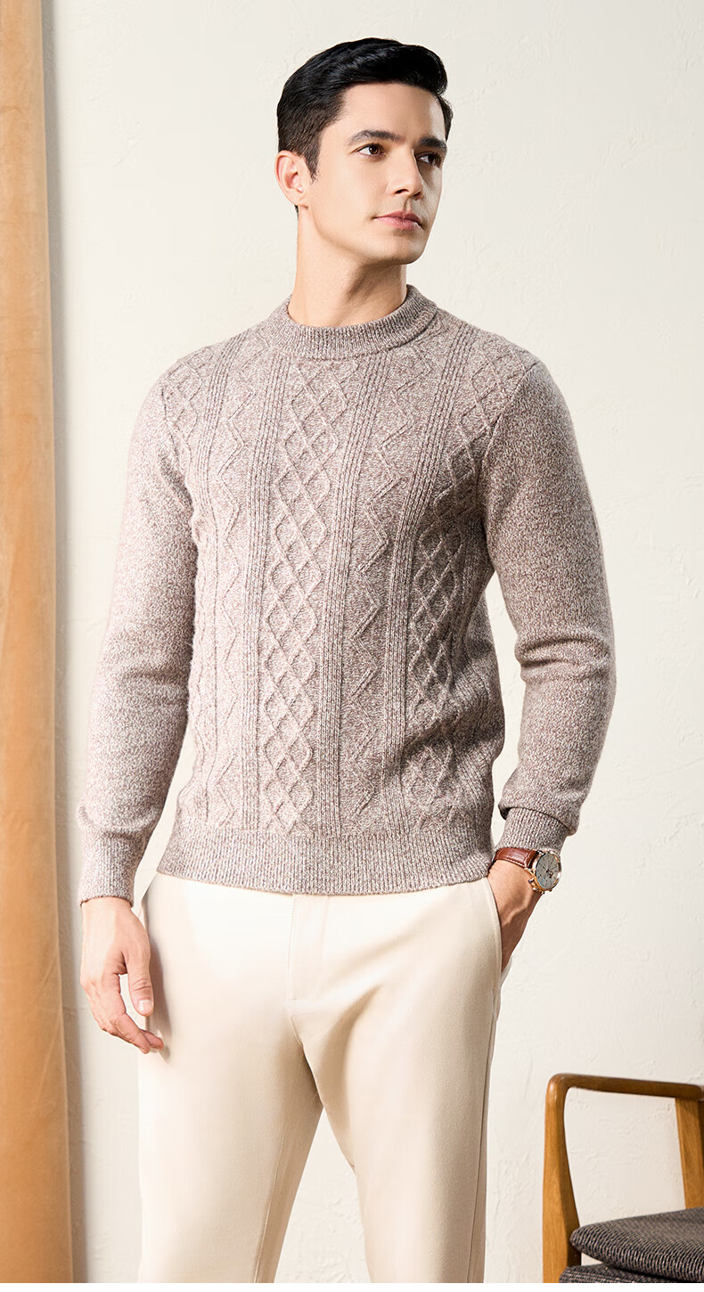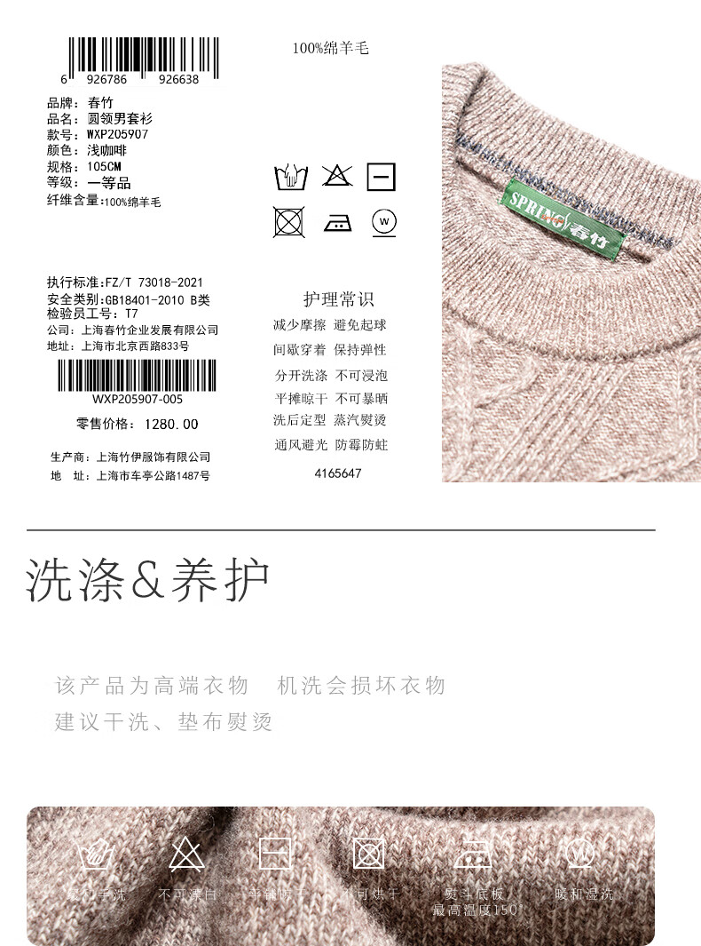 春竹羊毛衫男士圆领春季100%纯羊毛保暖针织毛衣中青年羊毛衫 浅咖啡 L (110CM)