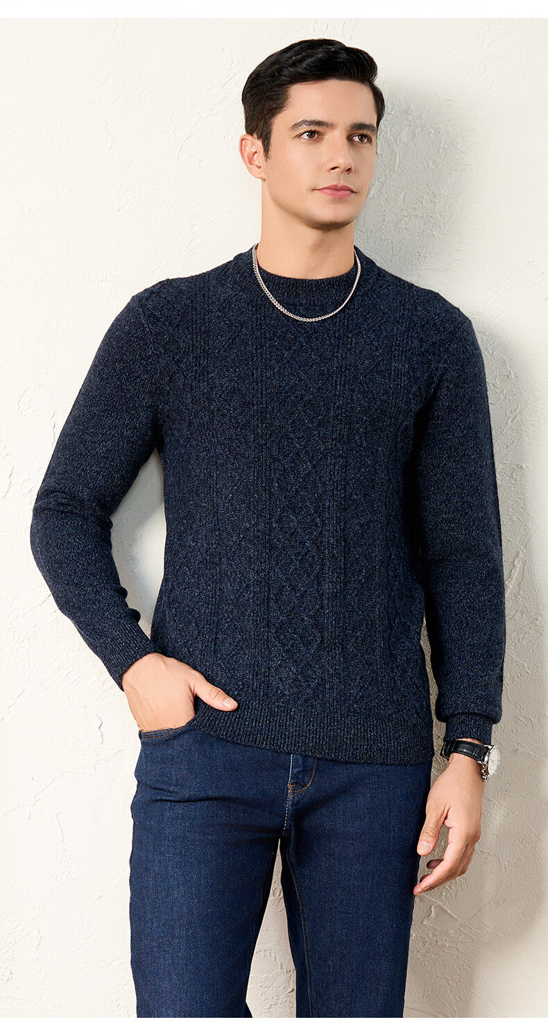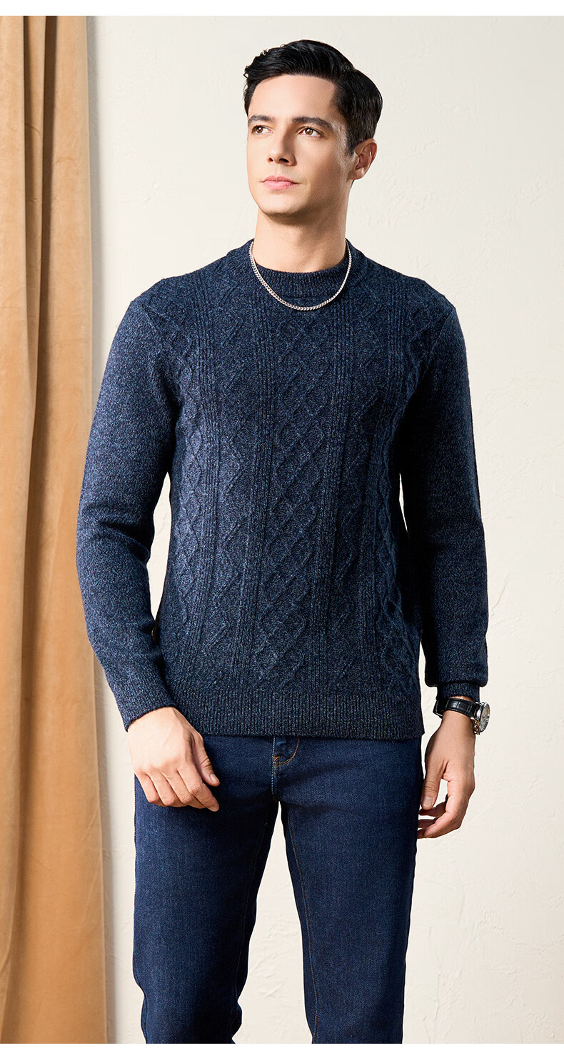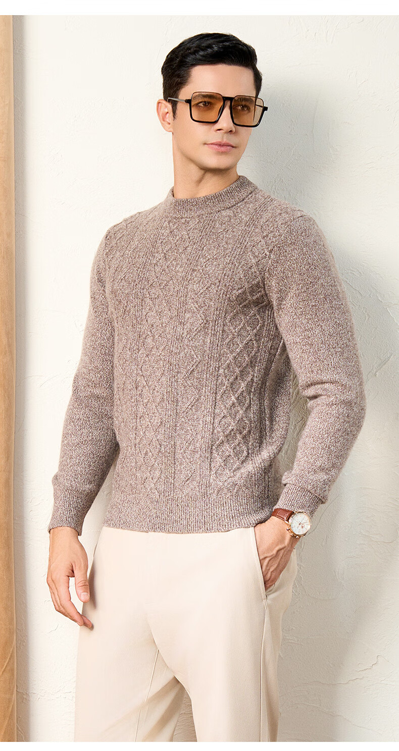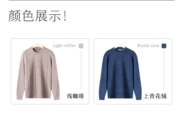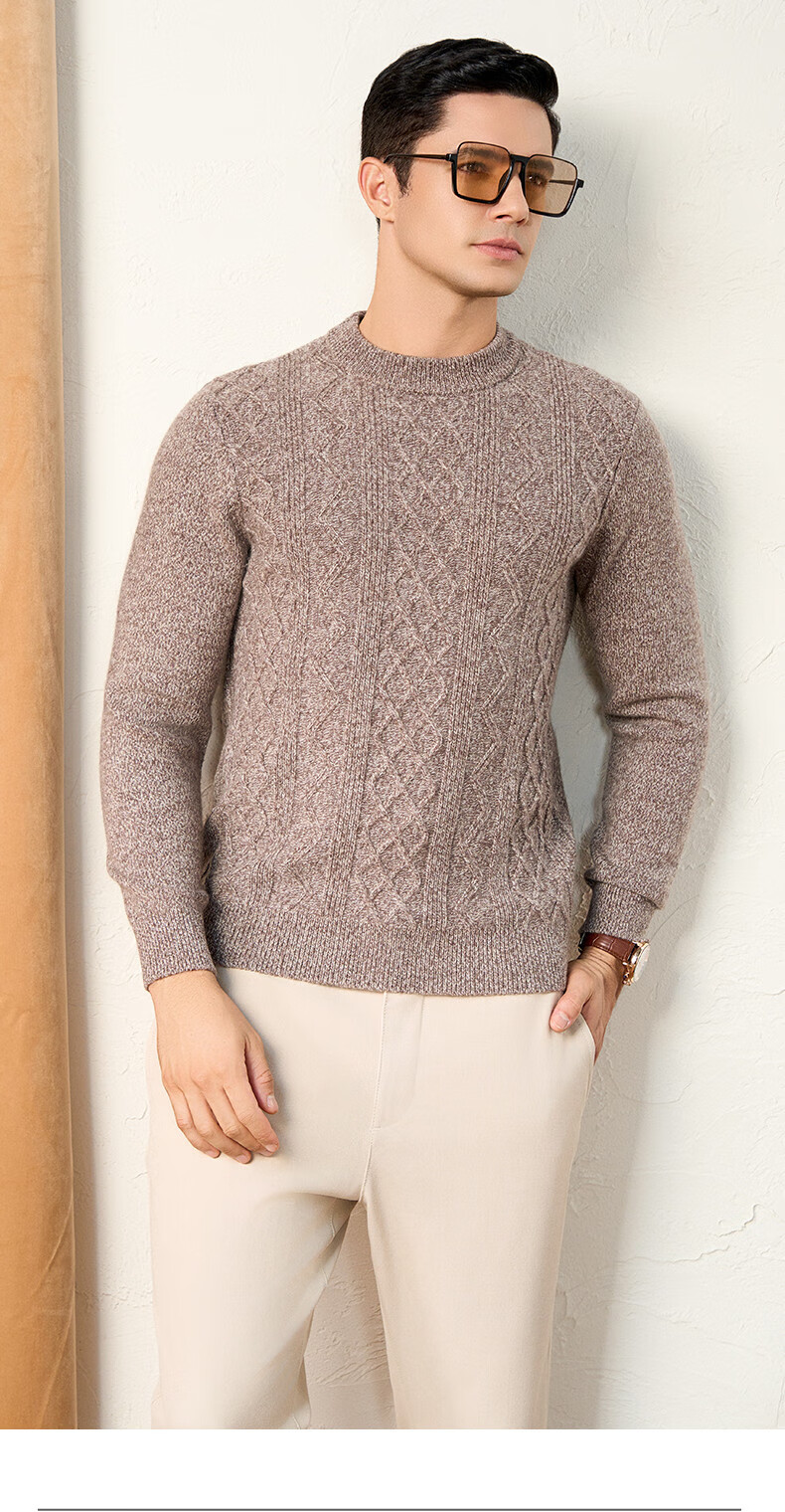春竹羊毛衫男士圆领春季100%纯羊毛保暖针织毛衣中青年羊毛衫 浅咖啡 L (110CM)