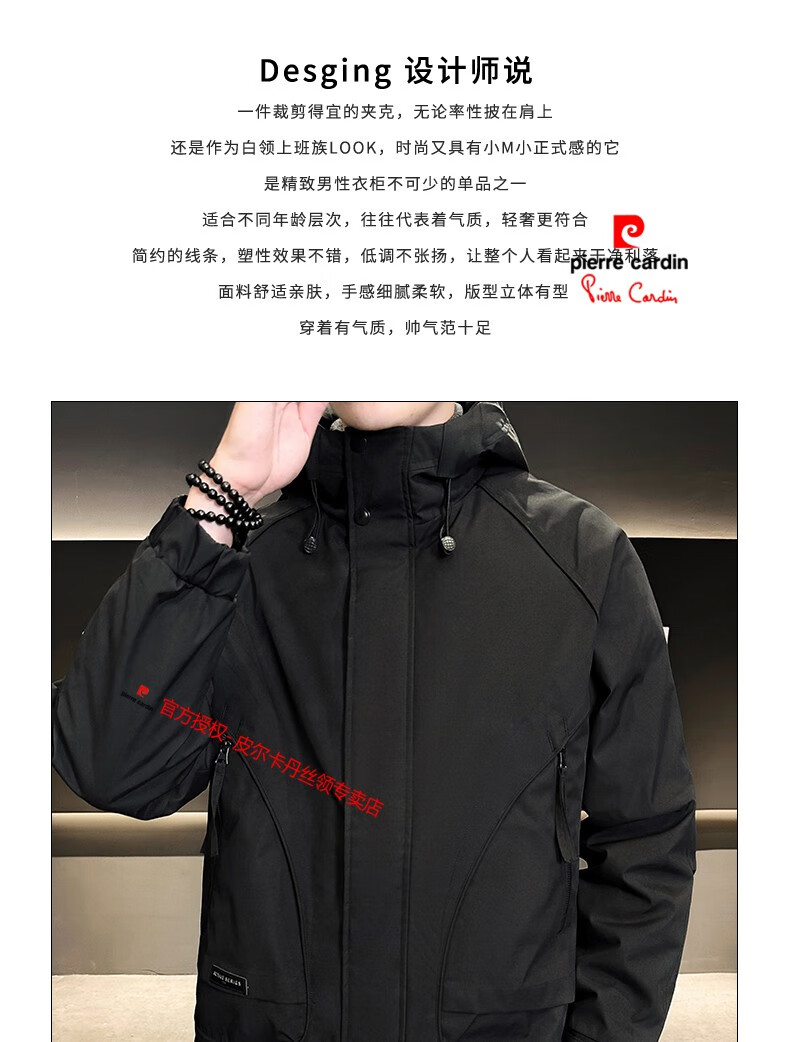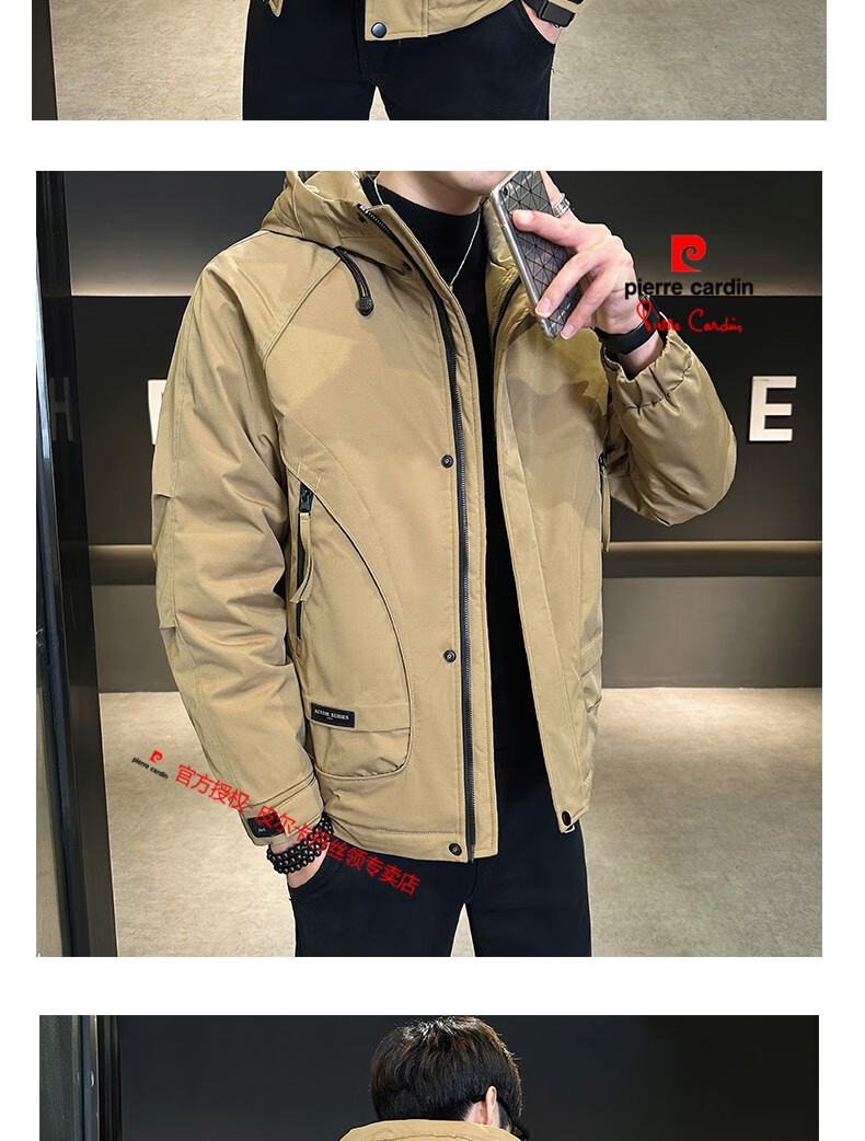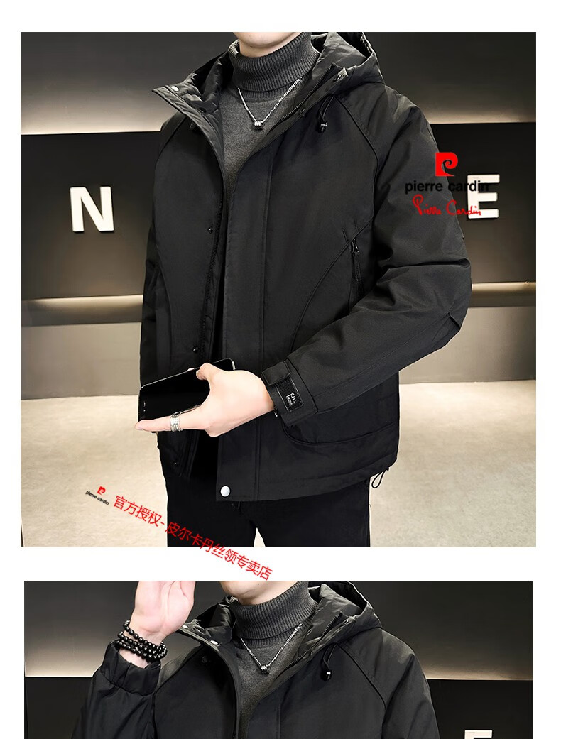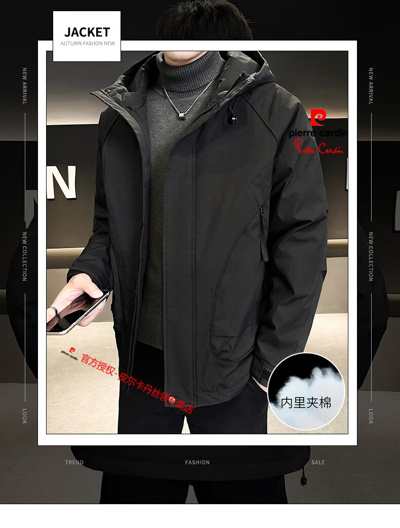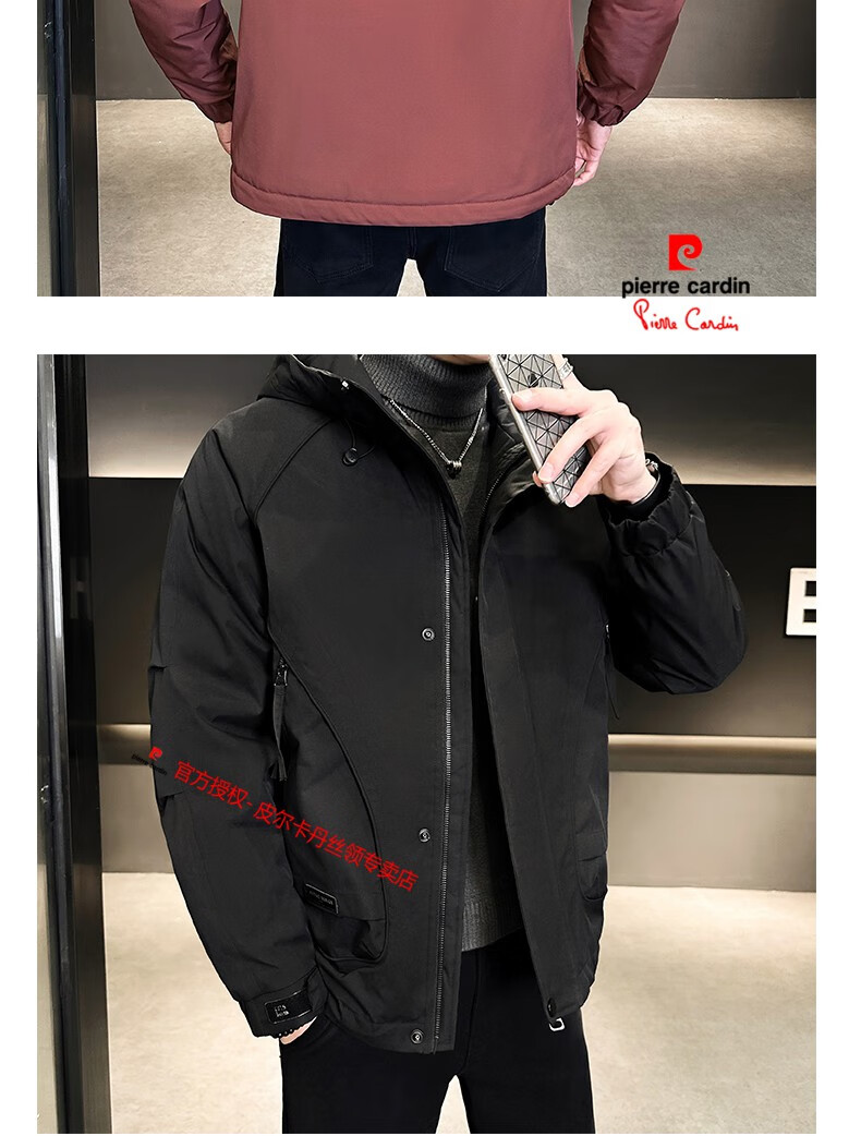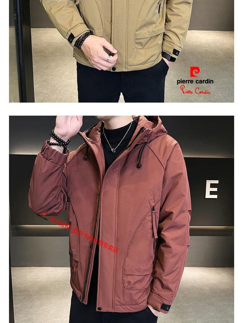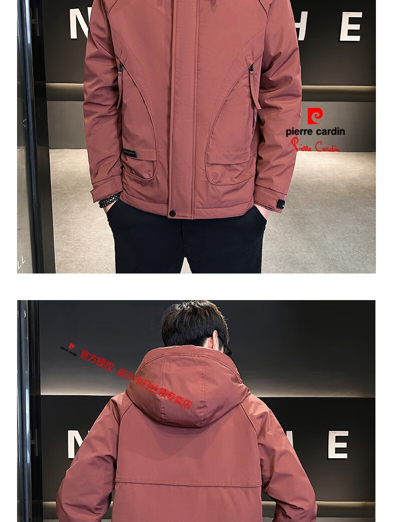 Pierre Cardin 2025 Autumn and Winter Second Cotton Jacket Men's Loose Hooded Workwear Cotton Jacket Thickened Warm Charge Top Burgundy 3XL