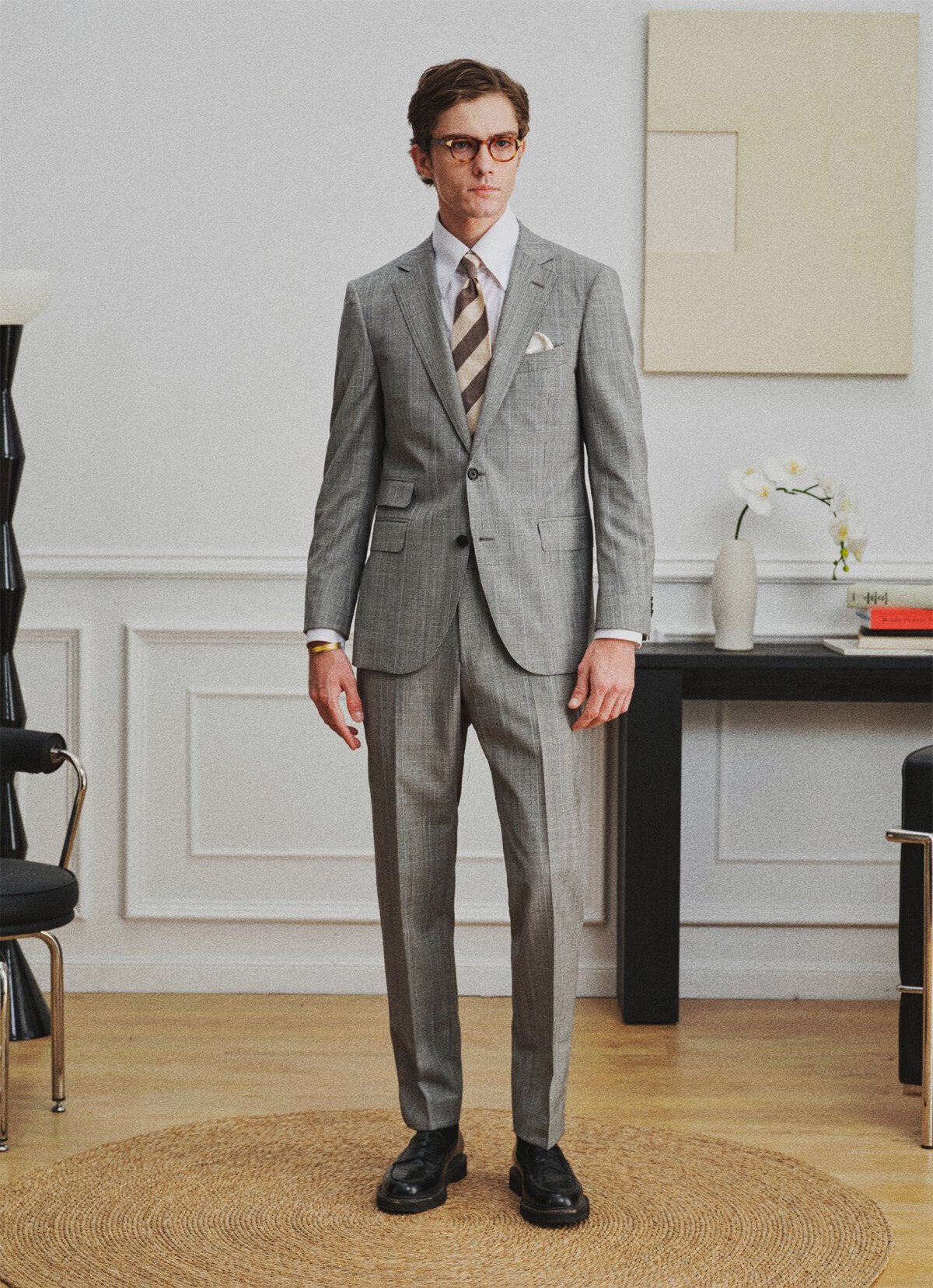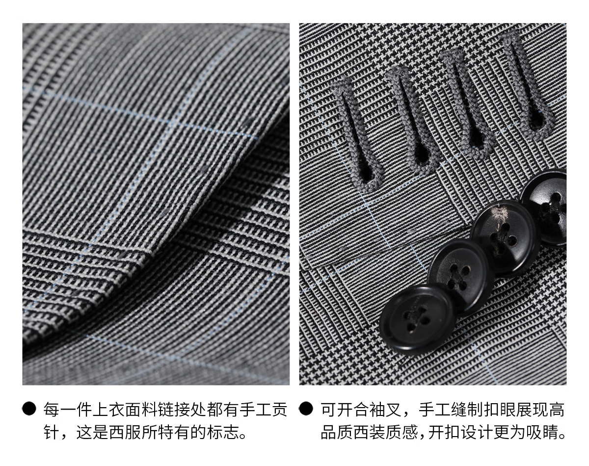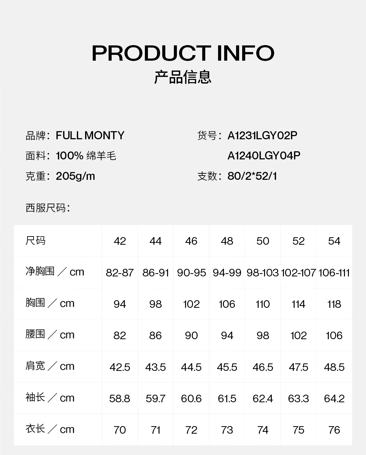 FULL MONTY Men's Wool Suit Plaid Business Professional Formal Wear Groom Wedding Suit Light Gray 1231 42