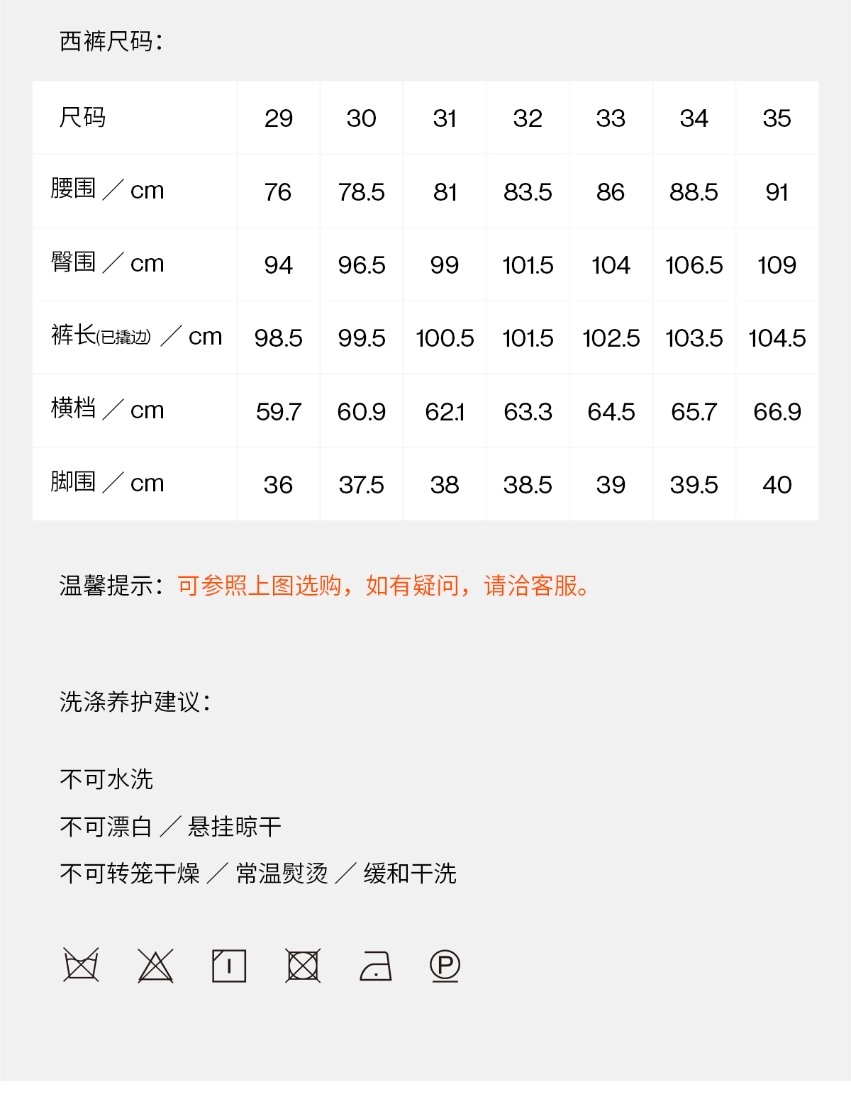 Outseam (cm) 99 cm 101.5 cm 104 cm 106.5 cm 109 cm