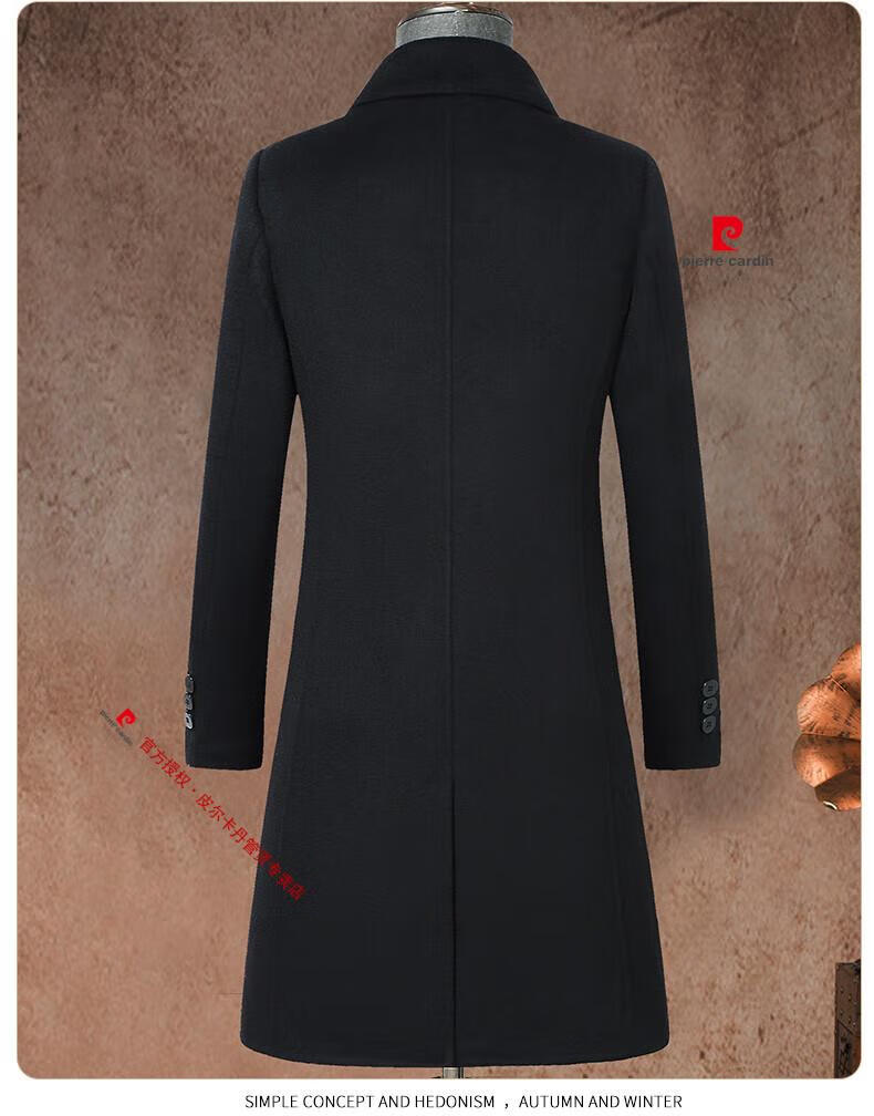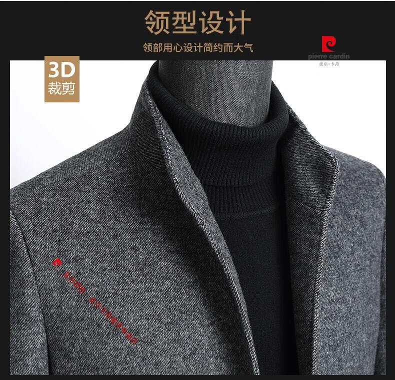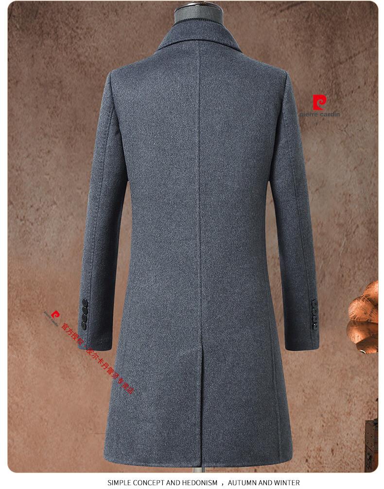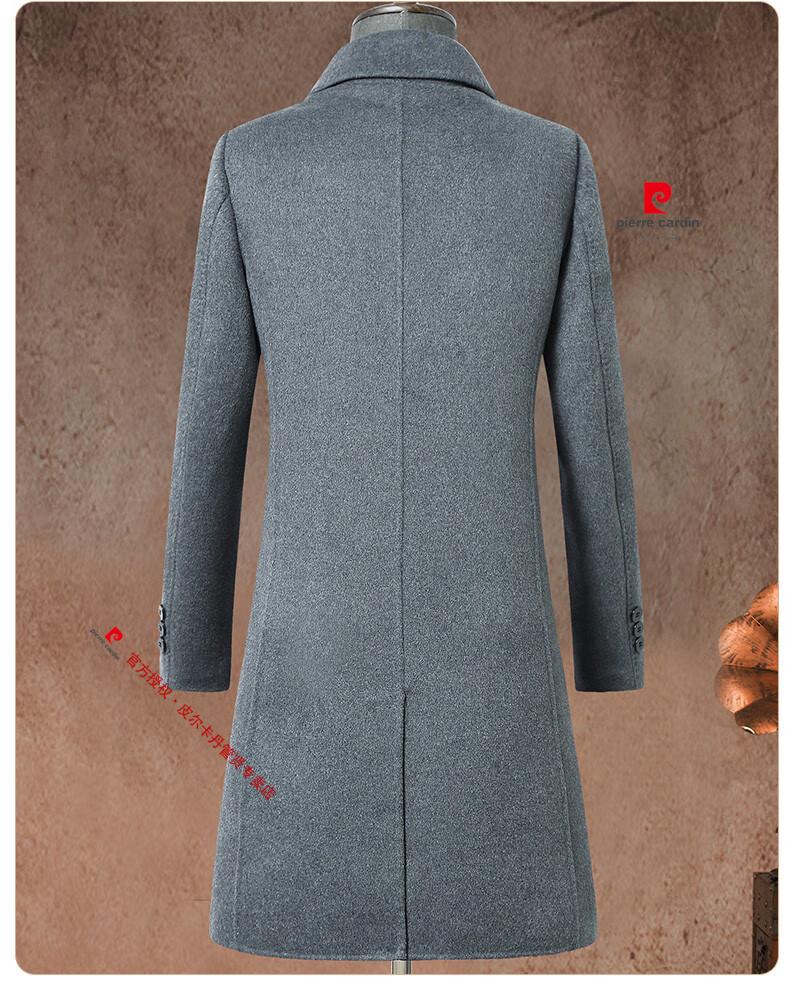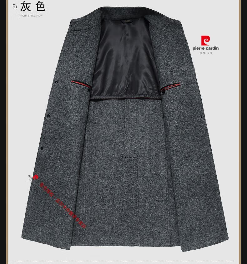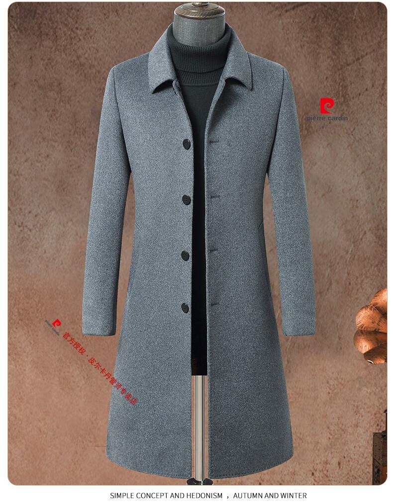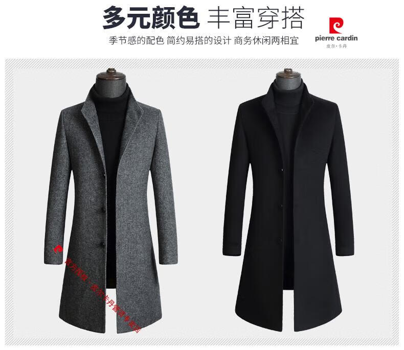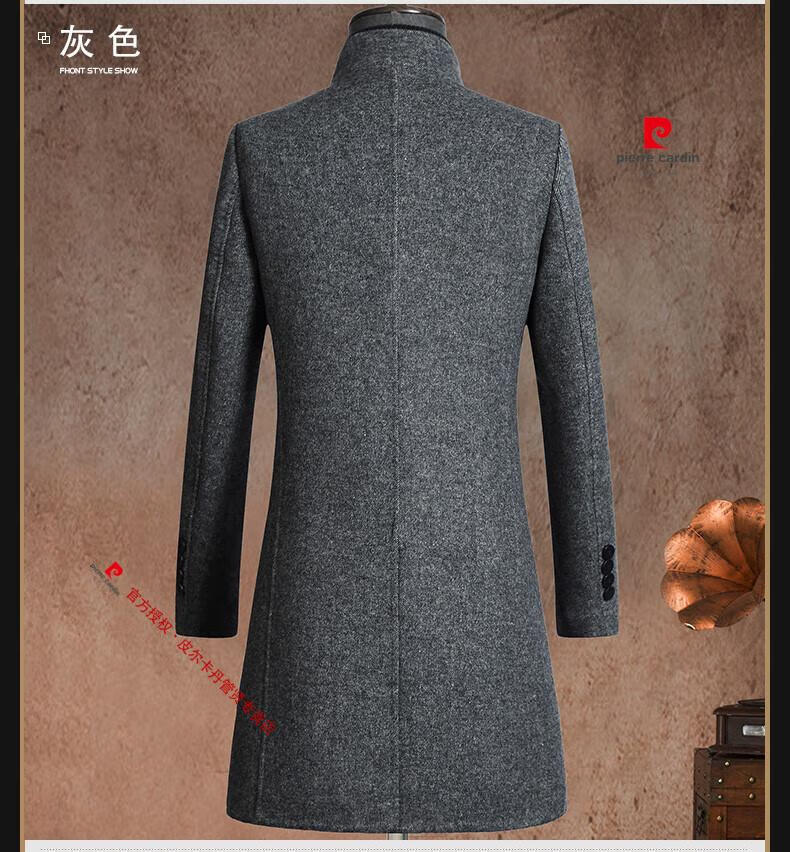Pierre Cardin brand autumn and winter thickened men's stand-up collar long knee-length woolen coat slim wool mid-length woolen coat gray (stand-up collar) M 170/88A