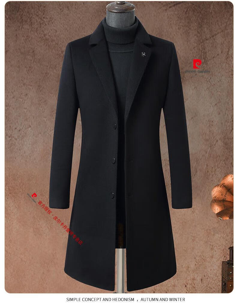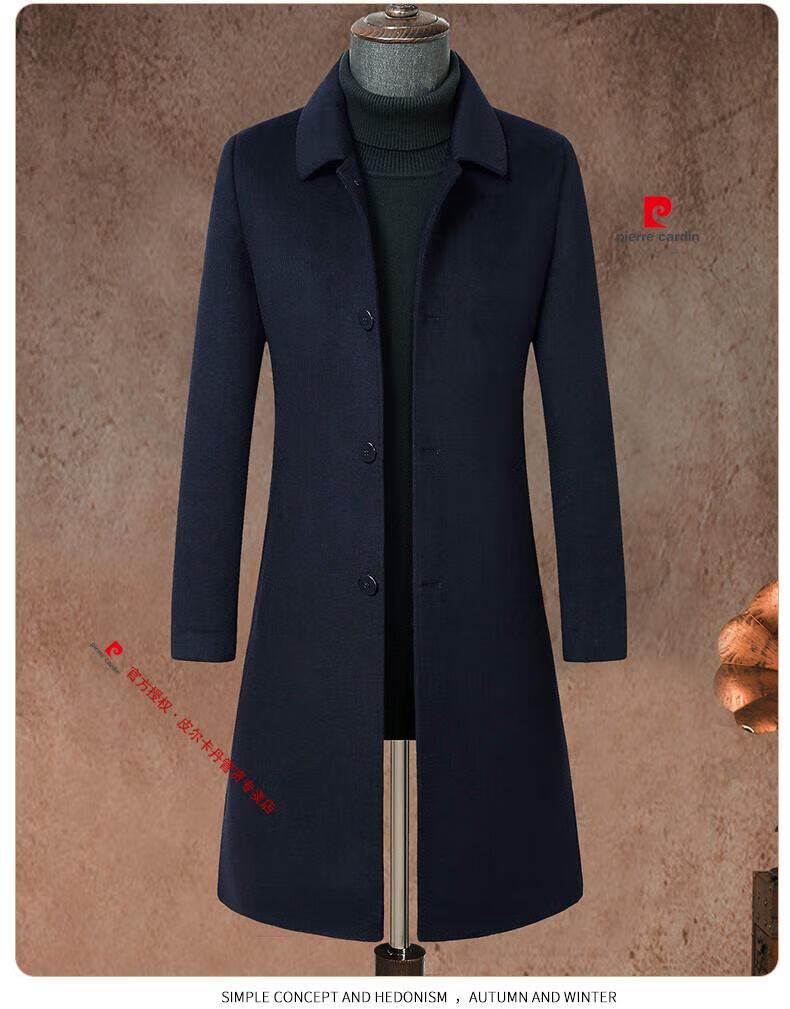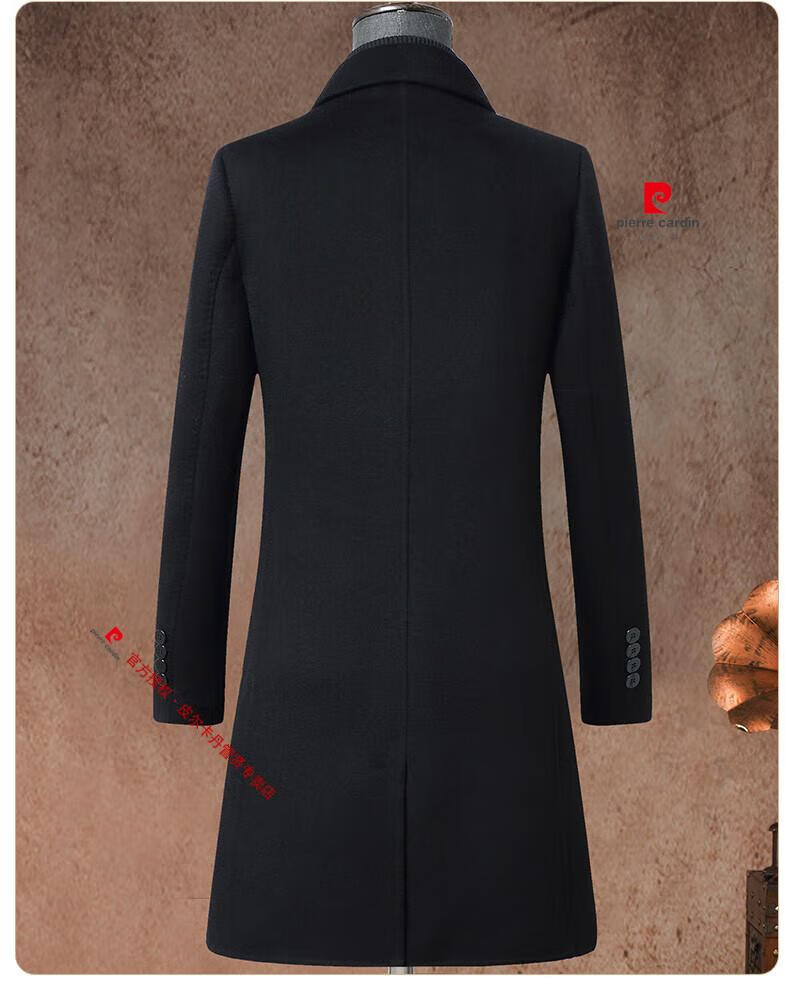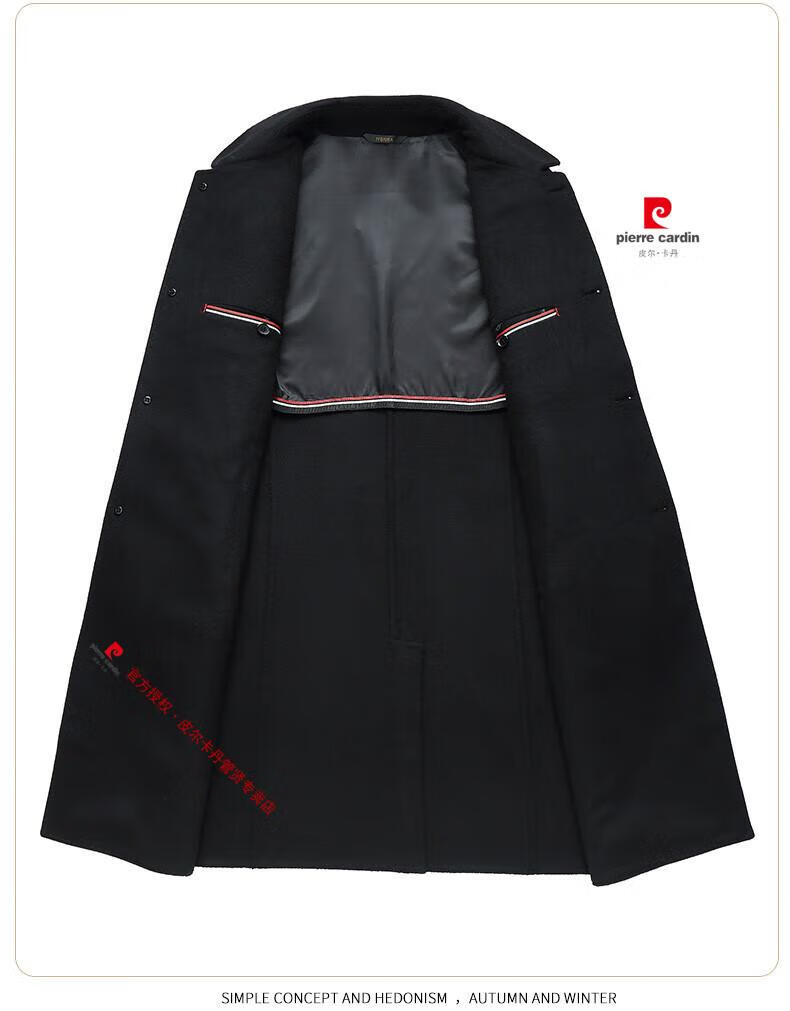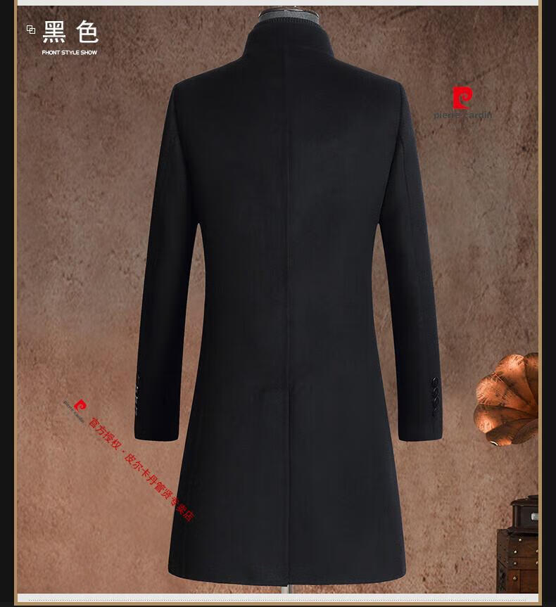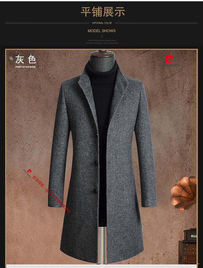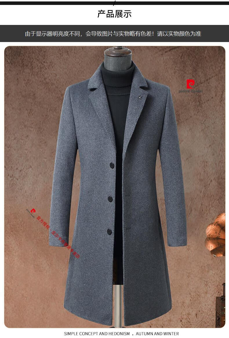 Pierre Cardin brand autumn and winter thickened men's stand-up collar long knee-length woolen coat slim wool mid-length woolen coat gray (stand-up collar) M 170/88A