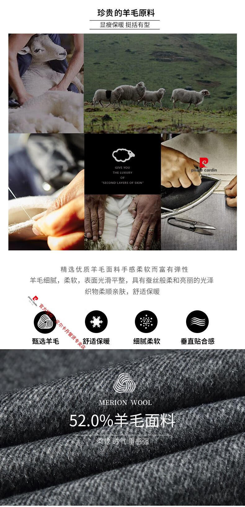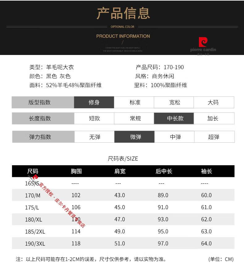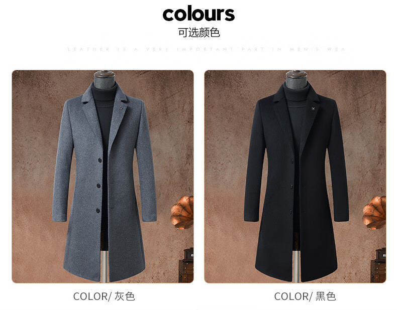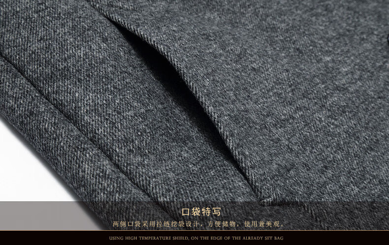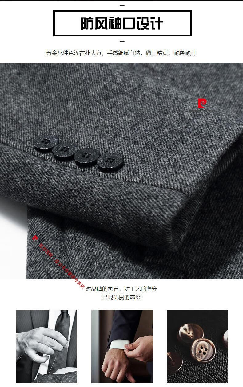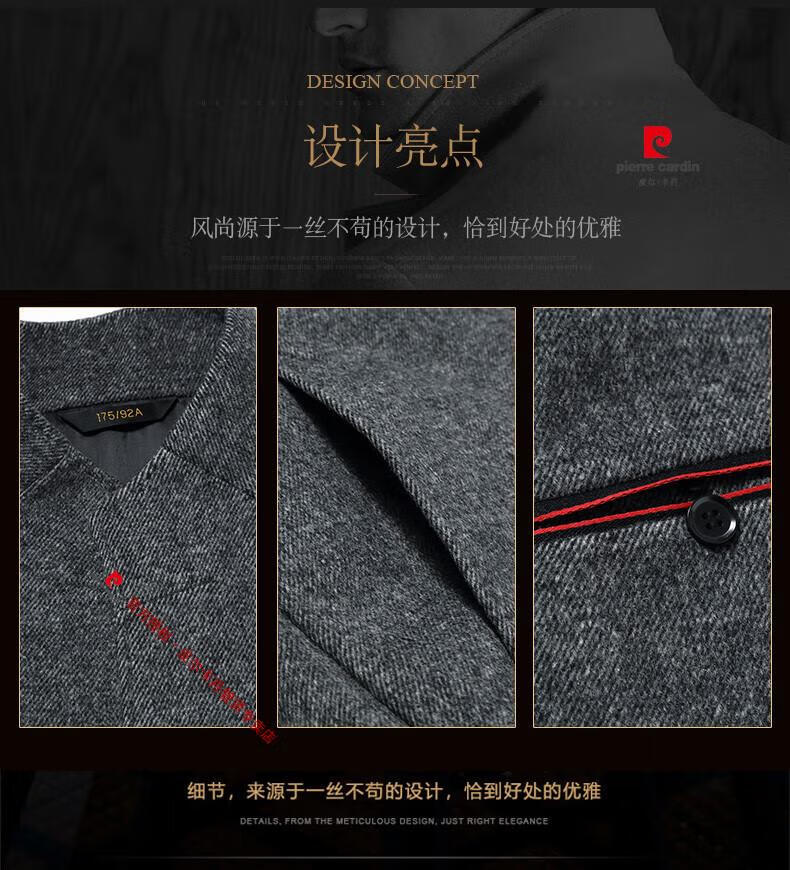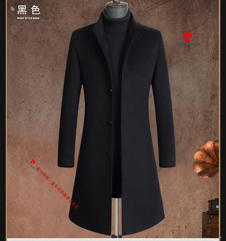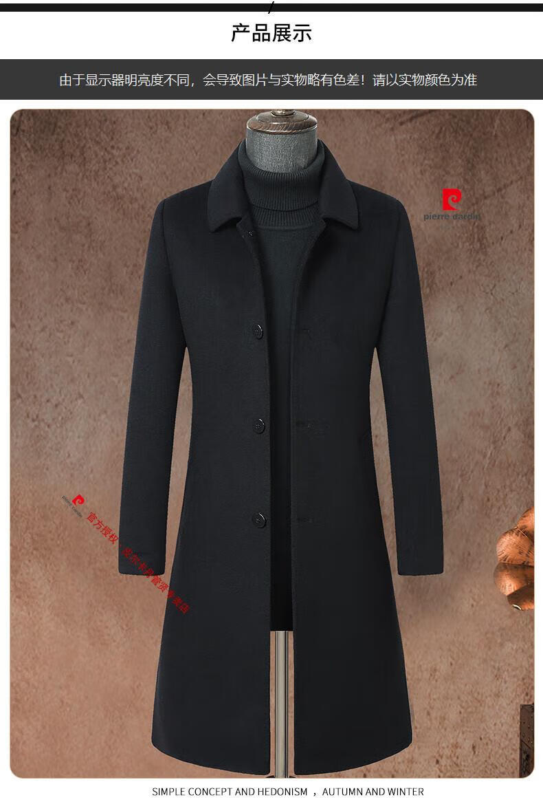 Pierre Cardin brand autumn and winter thickened men's stand-up collar long knee-length woolen coat slim wool mid-length woolen coat gray (stand-up collar) M 170/88A