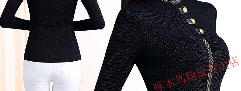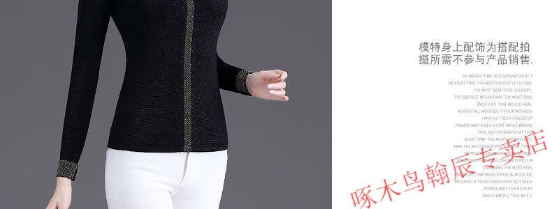 Woodpecker 2025 new model stand-up collar bottoming shirt long-sleeved women's warm temperament inner with velvet thickened western style top fashionable and versatile black boutique ready stock plus velvet 4XL 140-155Jin Jin is equal to 0.5 kg