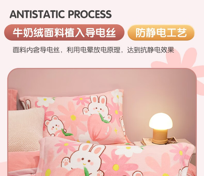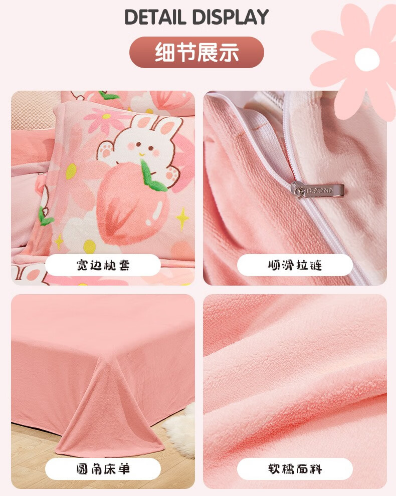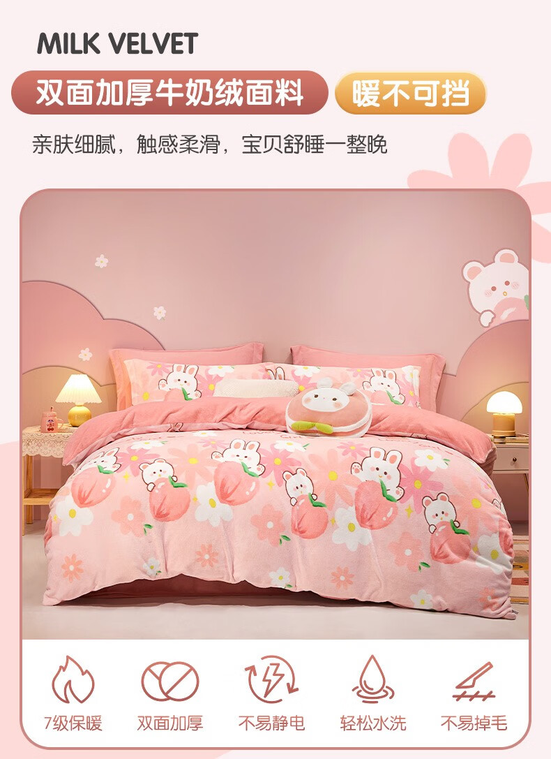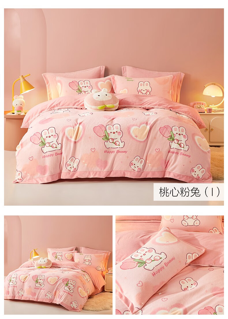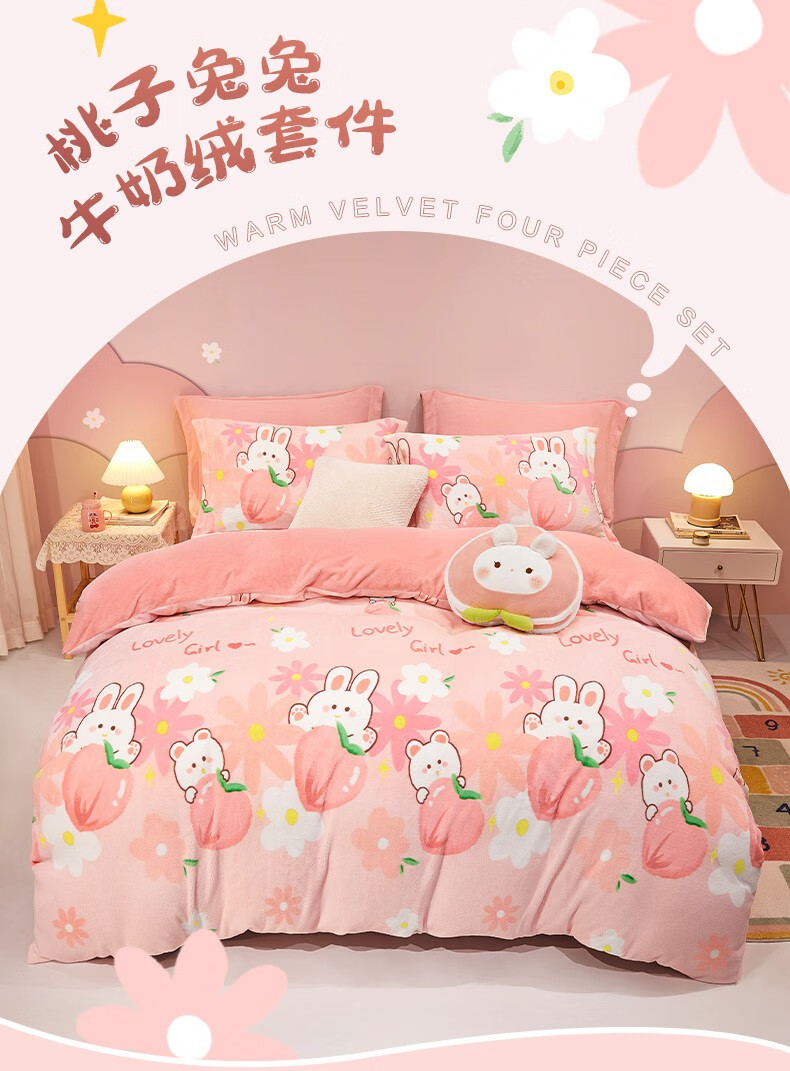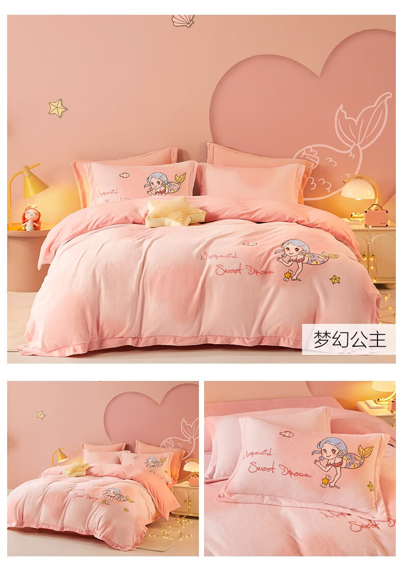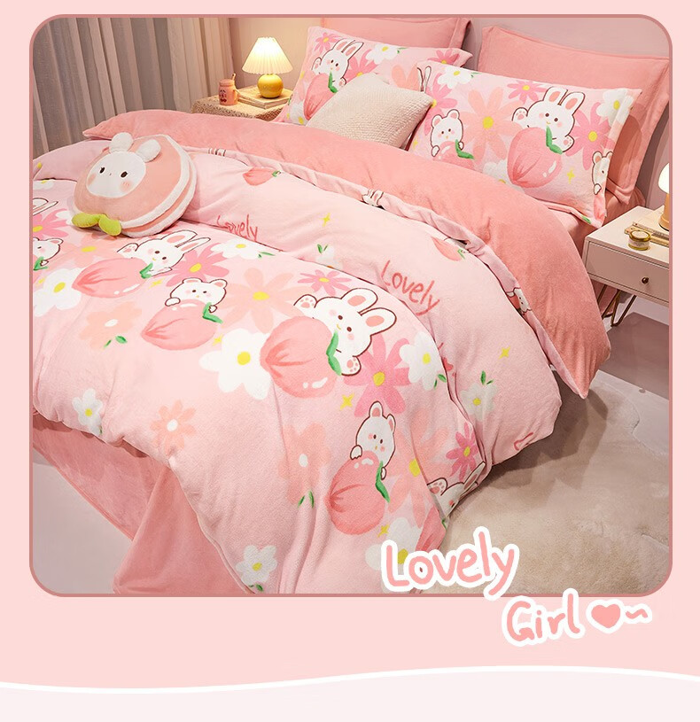 Beyond Kids Winter Warm Velvet Four-piece Set Princess Style Cute Student Coral Velvet Winter Double-sided Thickened Sheet Quilt Cover Type A Flannel + Beanie Velvet Dinosaur Baby 1.5 Sheet Style (Duvet Cover 200*230cm) Four-piece Set