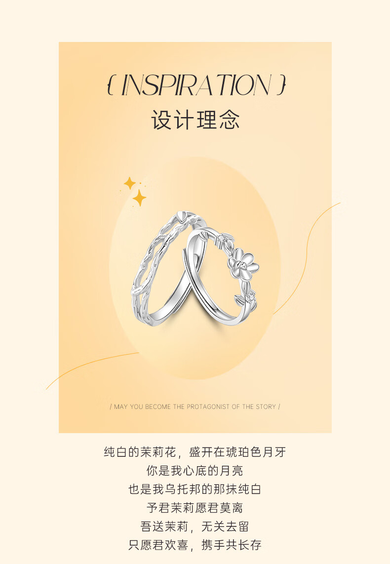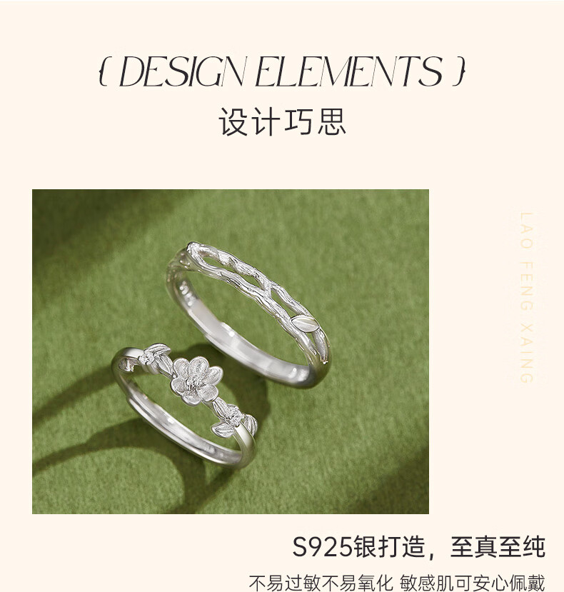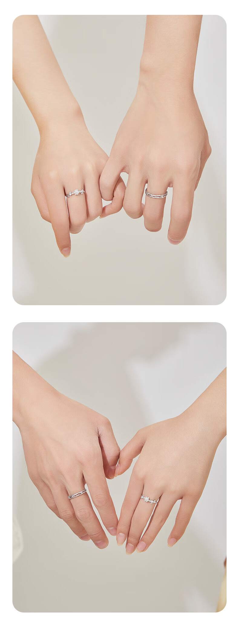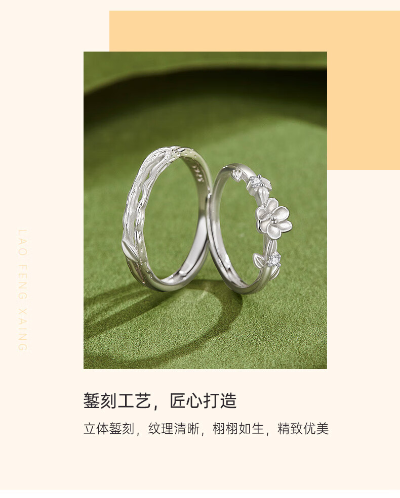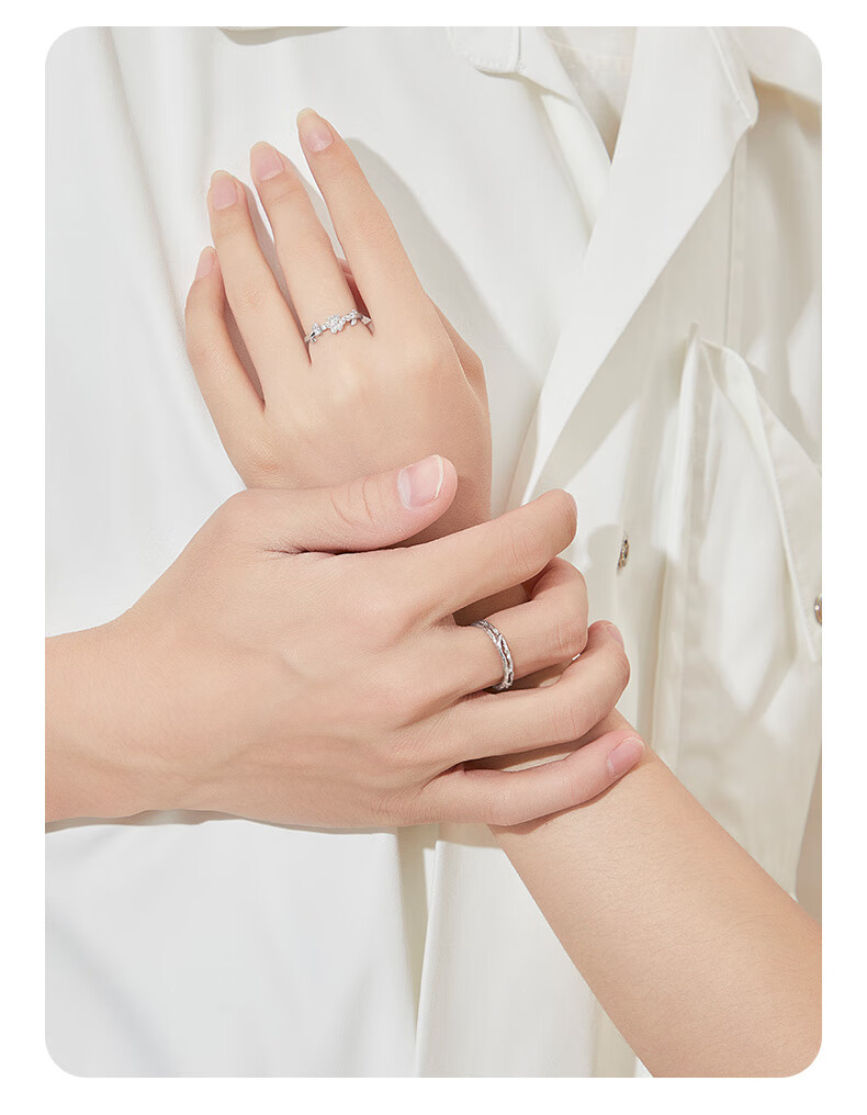 Lao Fengxiang 925 silver couple's ring, proposal, engagement ring, men's and women's pair of jewelry, Valentine's Day birthday gift for girlfriend and wife, sparkling zircon, Moli ring + custom engraving