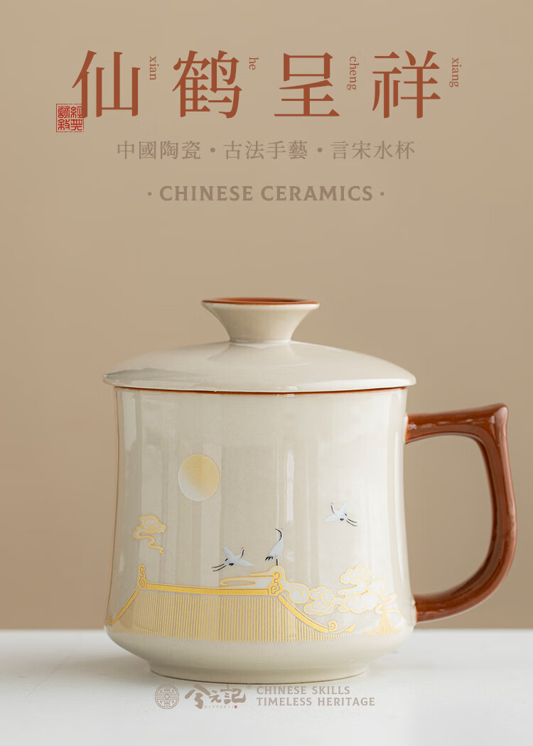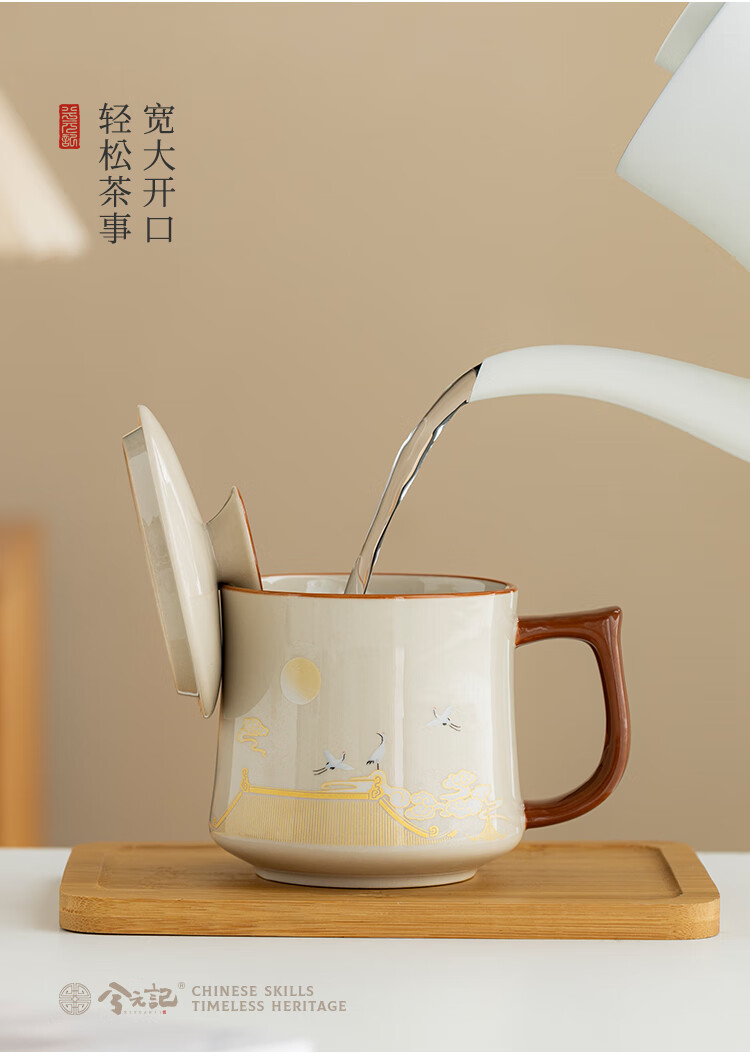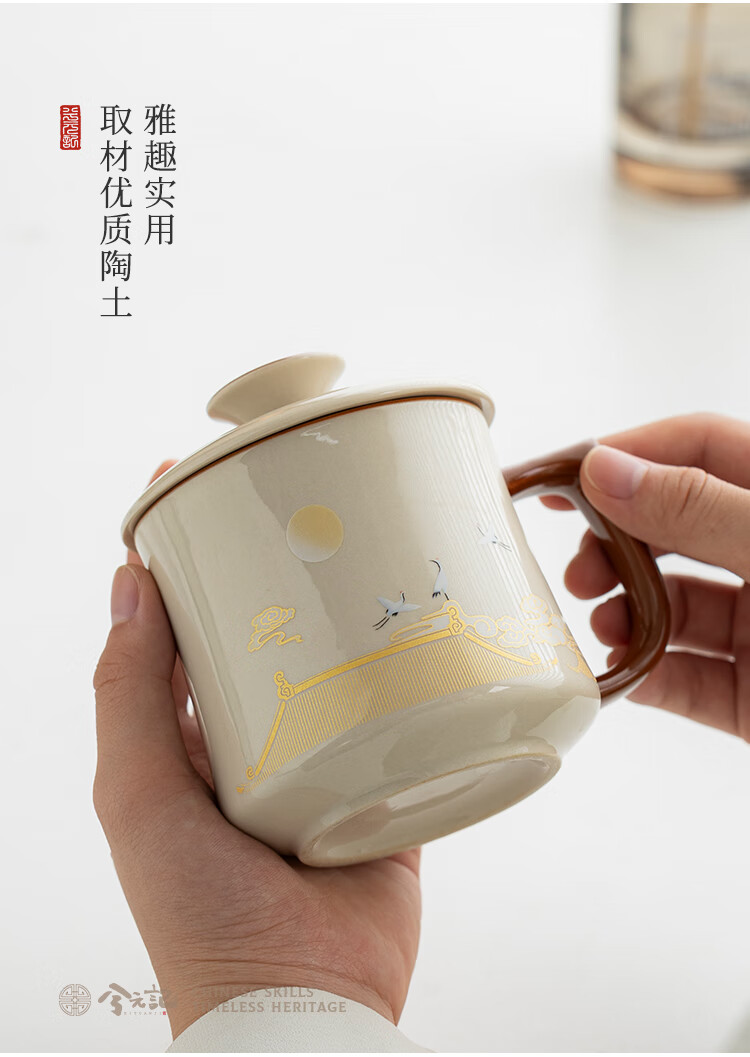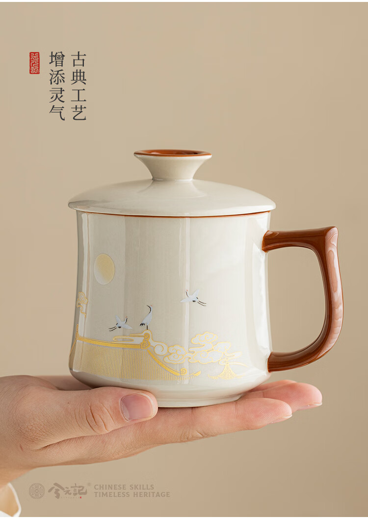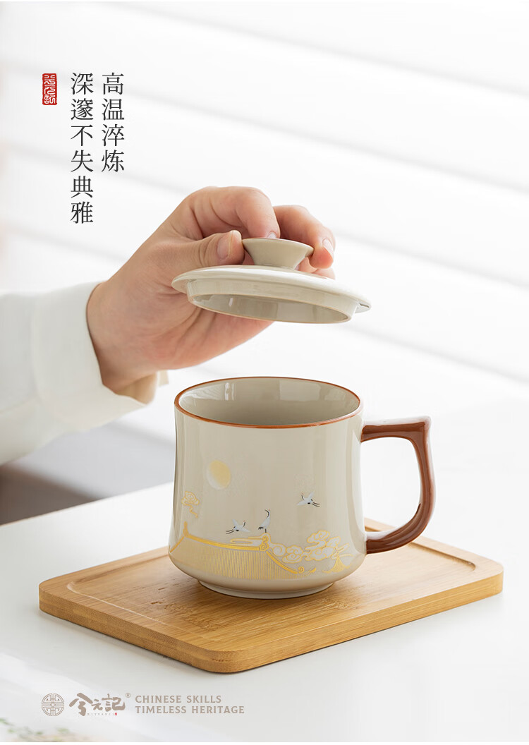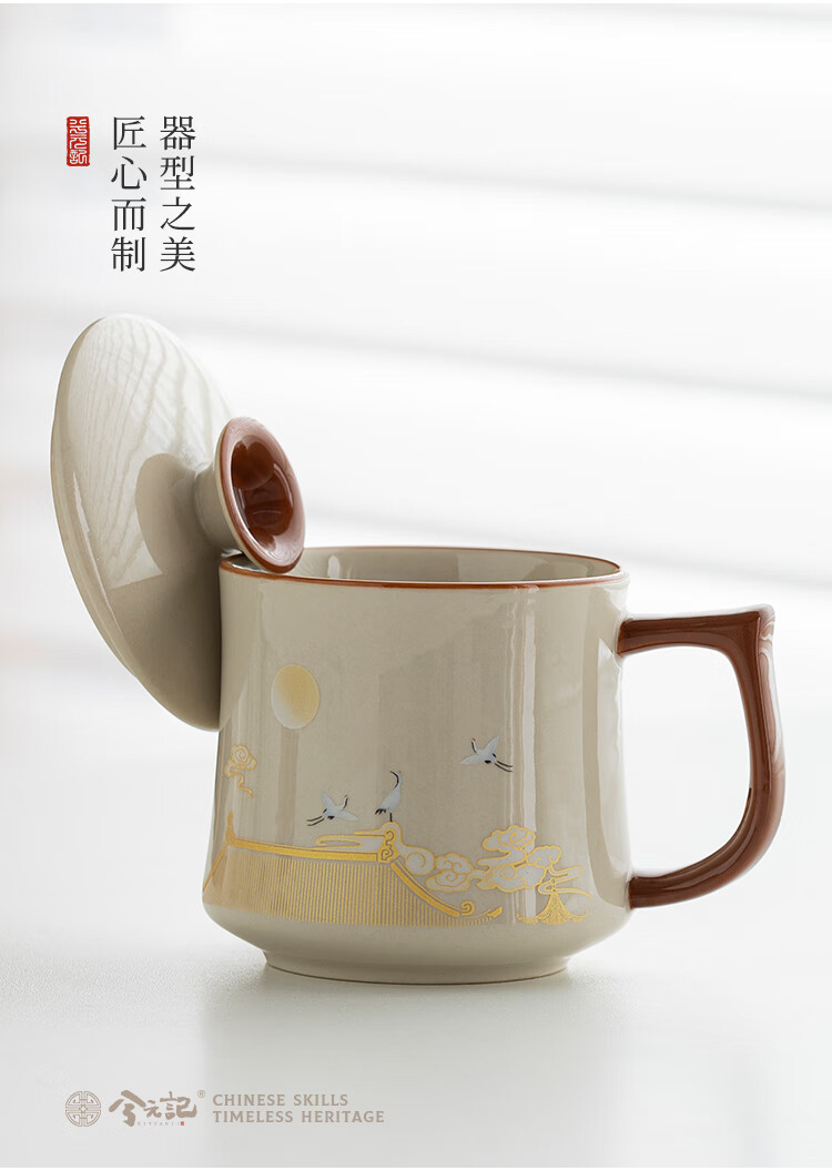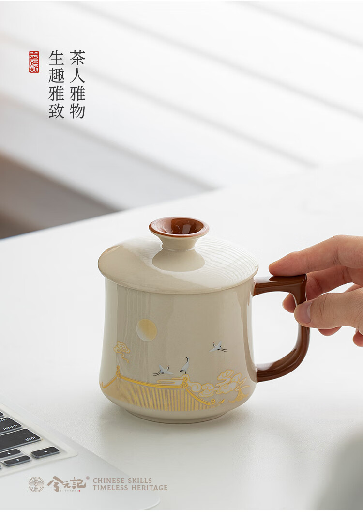 Xiyuanji Forbidden City Ruihe Chengxiang Ceramic Tea Cup Mug High-end Office Tea Cup Men's Father's Day Gift Xianhe Chengxiang Grass Tree Huiyan Song Water Cup 360ml
