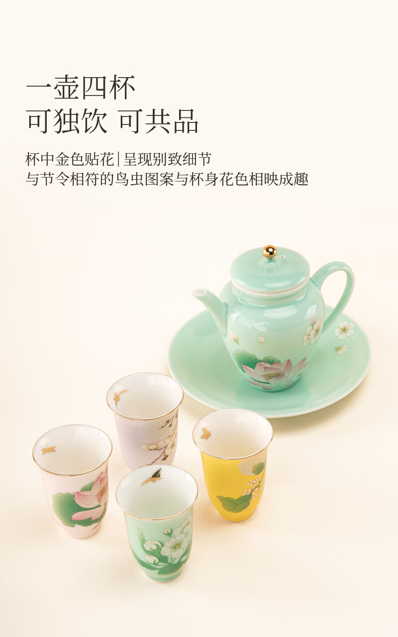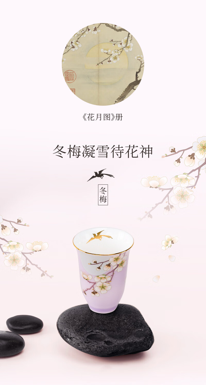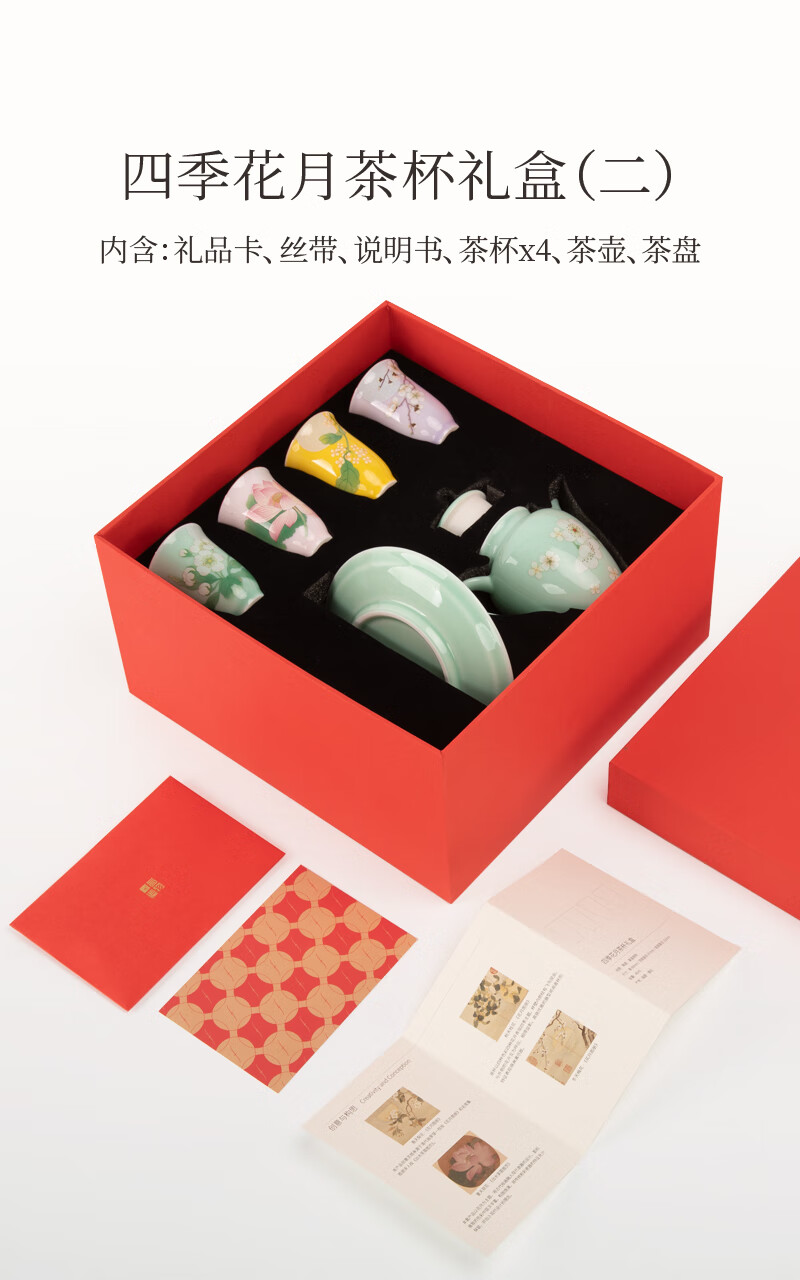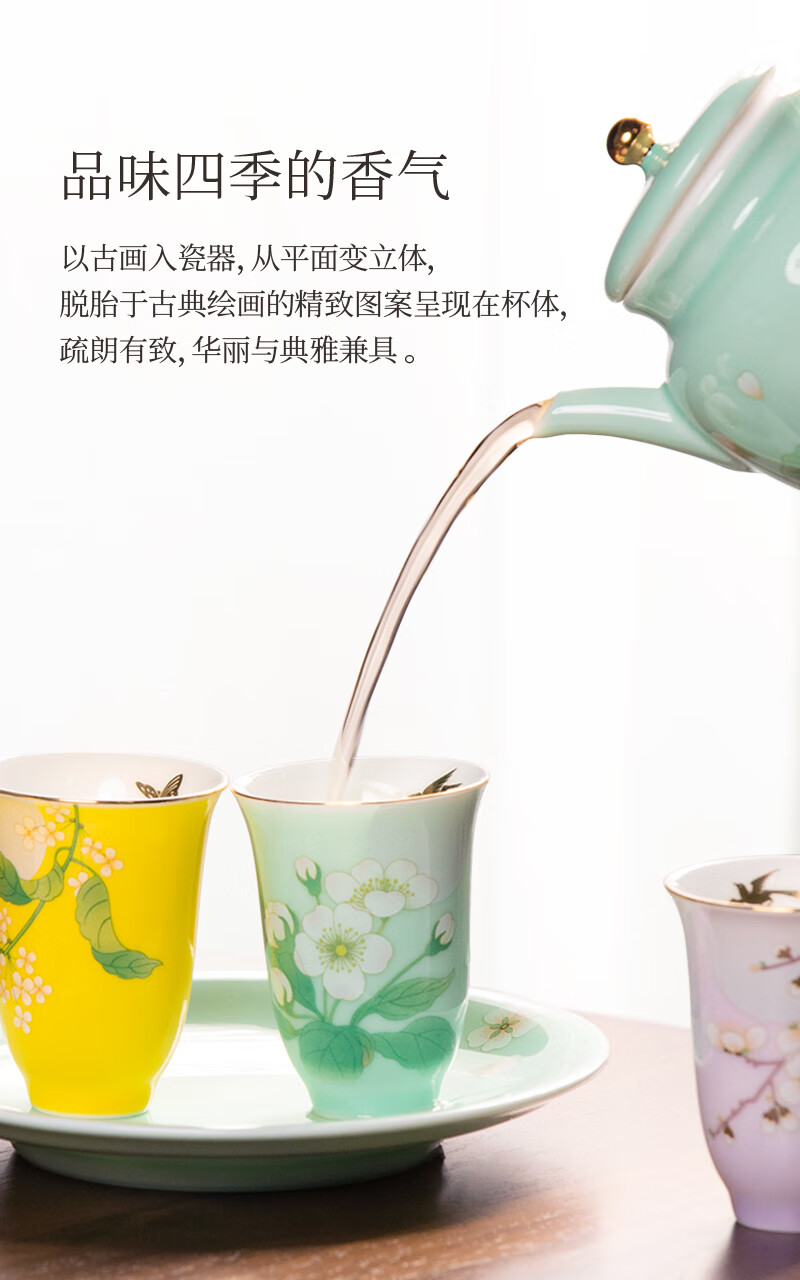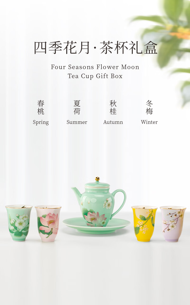 Imperial Palace Cultural and Creative Four Seasons Flowers and Moon Tea Cup Set Household Complete Tea Set Women's High-end Birthday Gift Souvenir Teapot Set