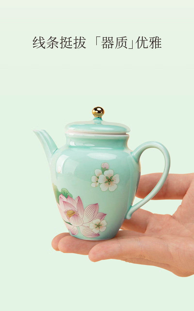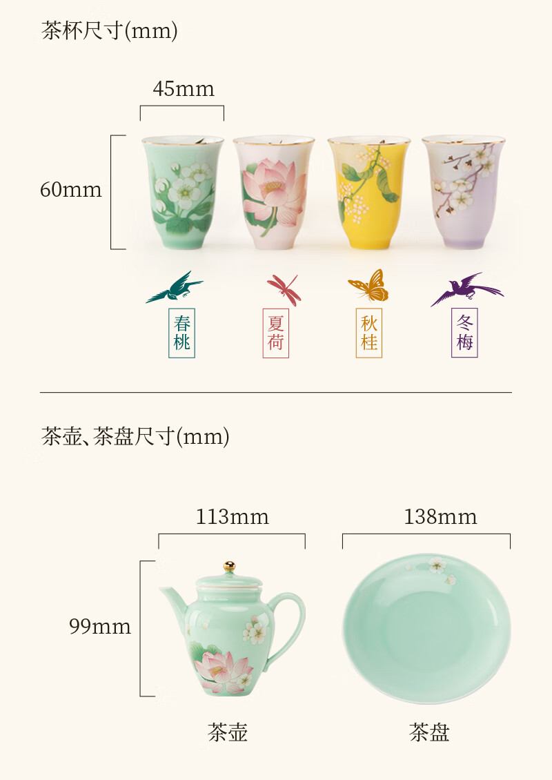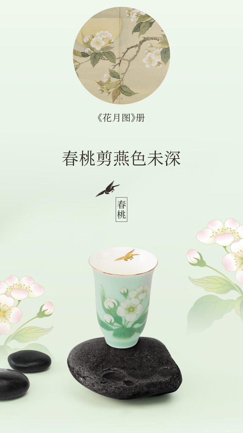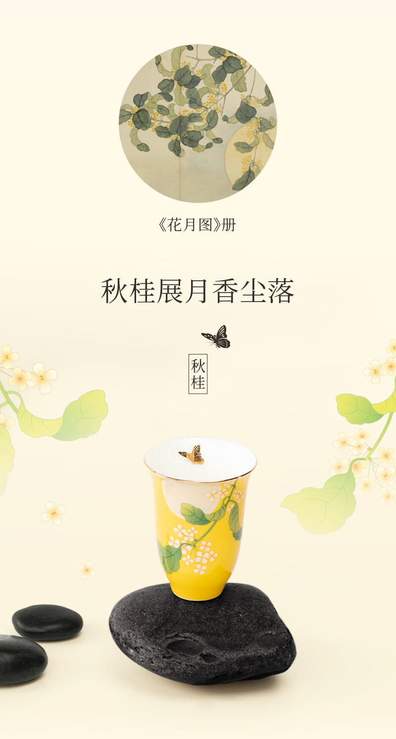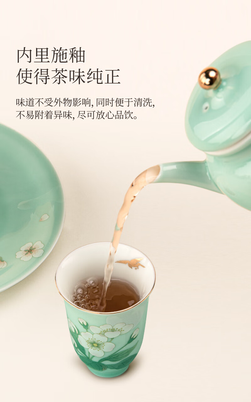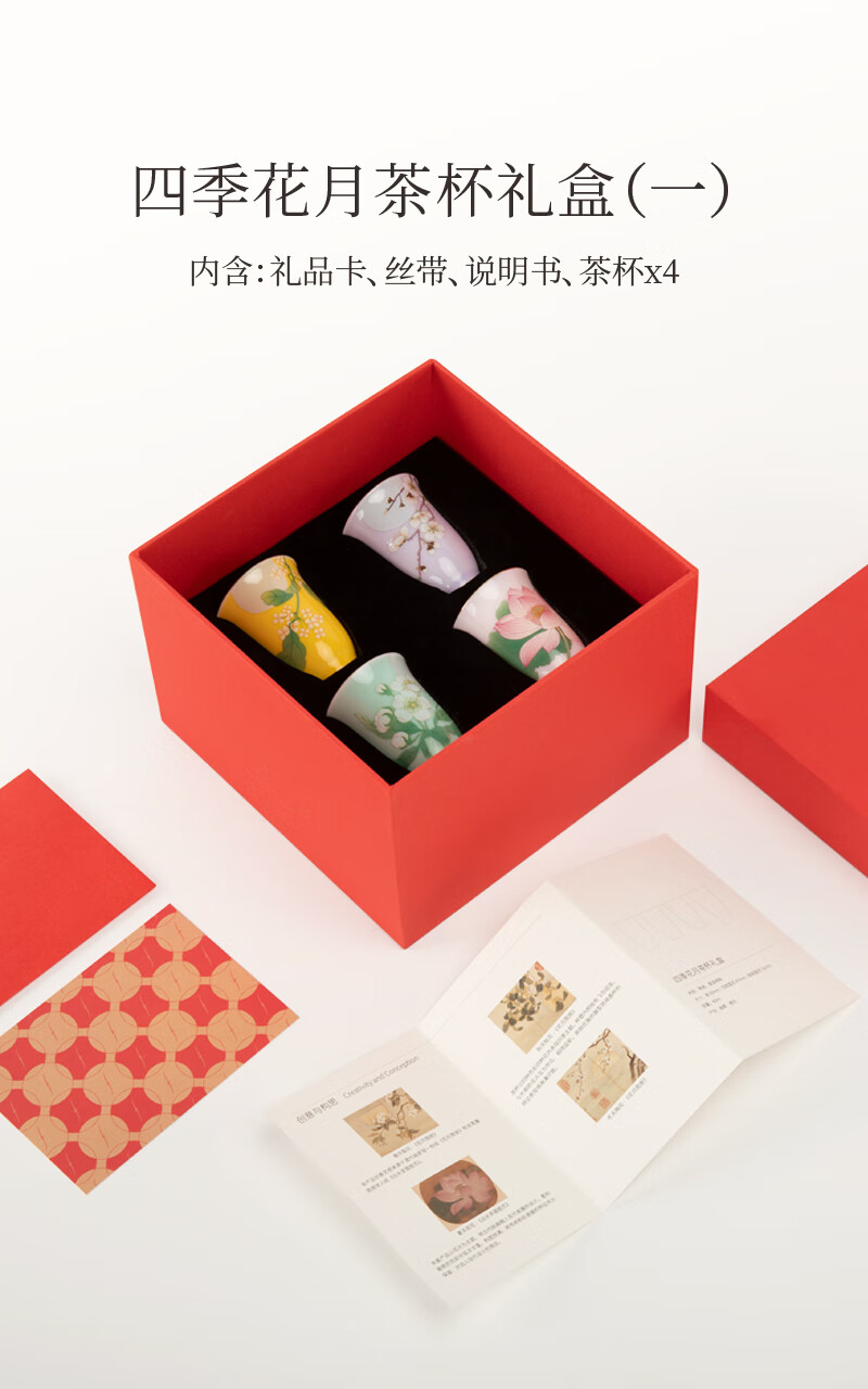 Imperial Palace Cultural and Creative Four Seasons Flowers and Moon Tea Cup Set Household Complete Tea Set Women's High-end Birthday Gift Souvenir Teapot Set