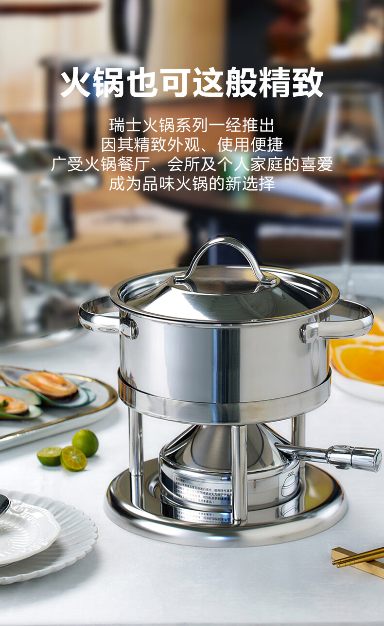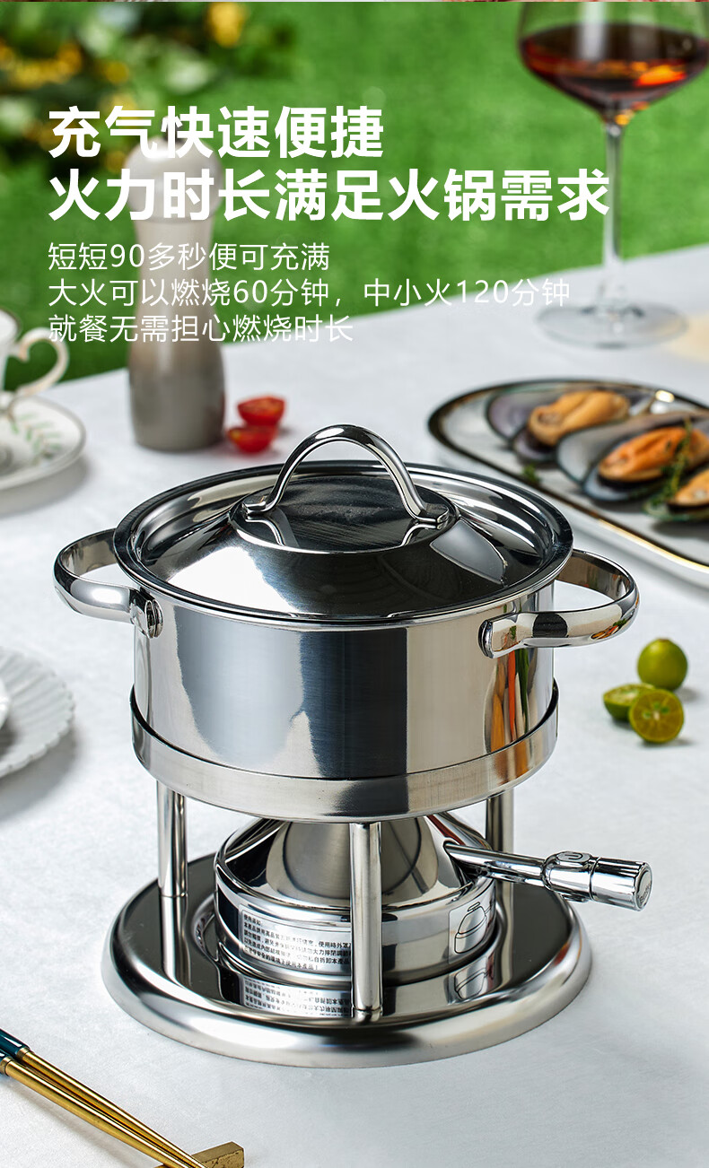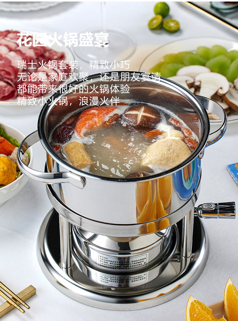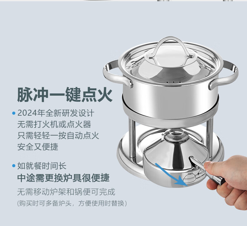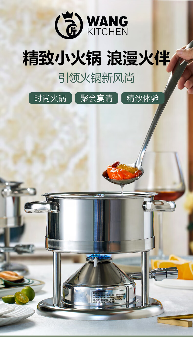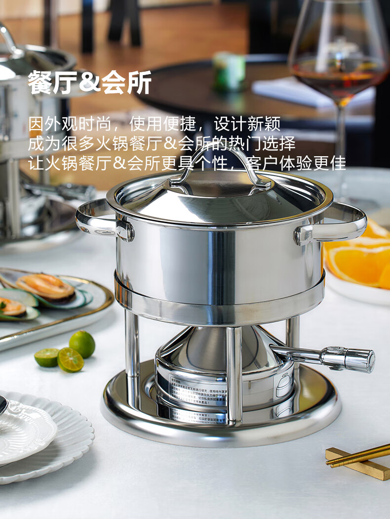 Wangjiajiang 304 stainless steel pot small hot pot pot, one person, one pot, single hot pot special pot, rotating hot pot soup pot, commercial new pulse ignition Swiss small hot pot set 16cm