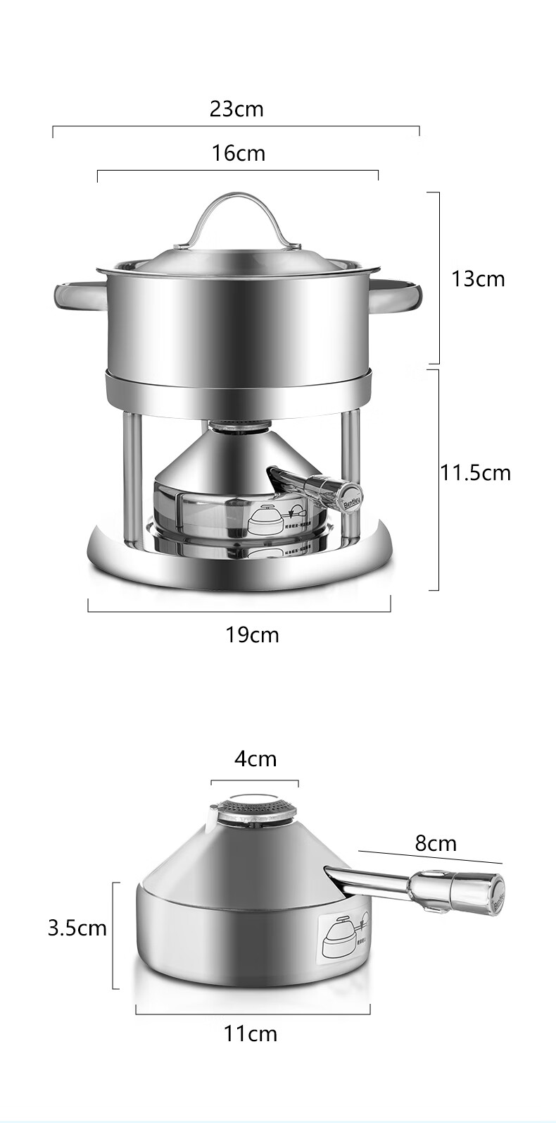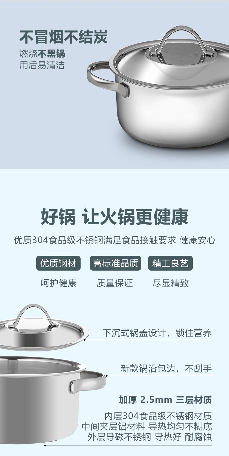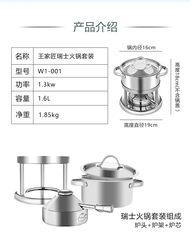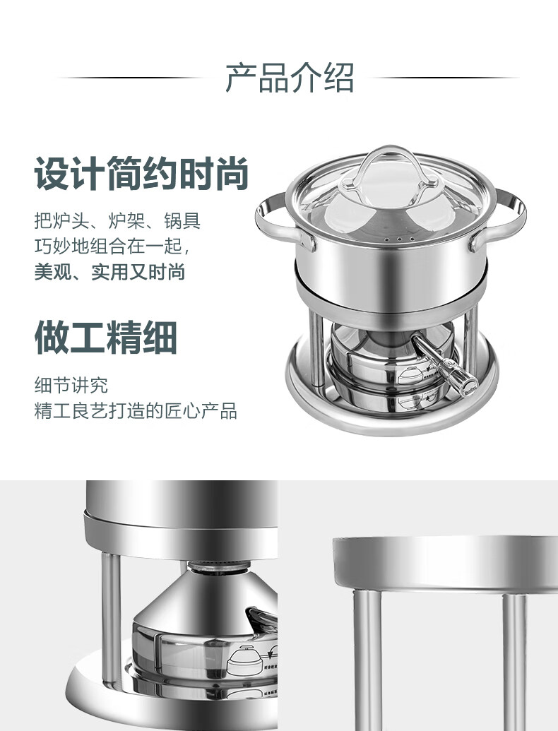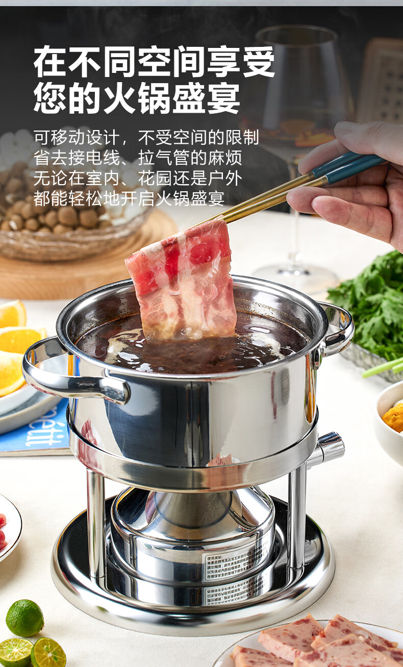 Wangjiajiang 304 stainless steel pot small hot pot pot, one person, one pot, single hot pot special pot, rotating hot pot soup pot, commercial new pulse ignition Swiss small hot pot set 16cm