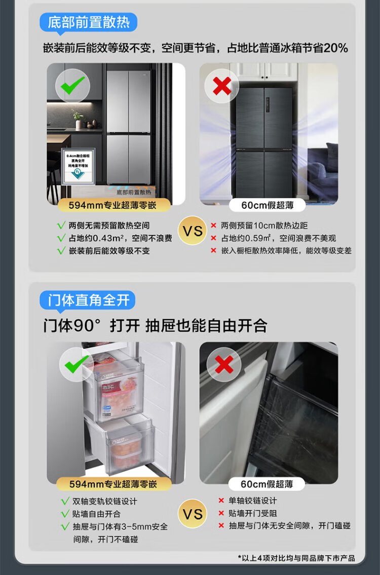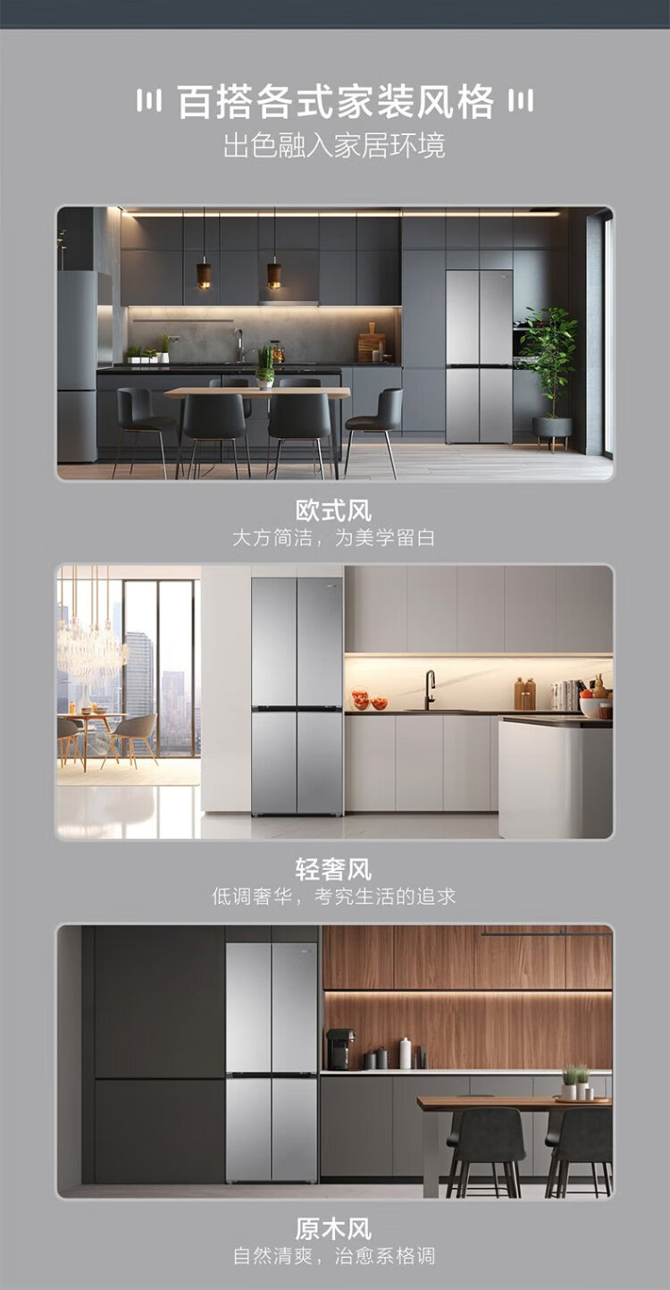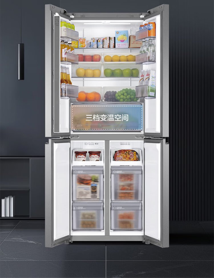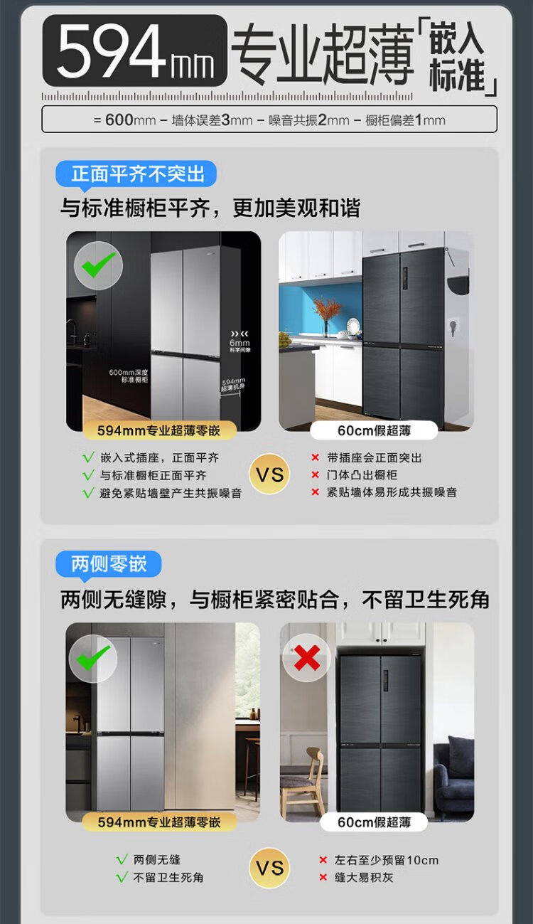 Leader refrigerator produced by Haier 415 liters ultra-thin zero-embedded cross-door four-door double-door first-class energy efficiency dual-frequency air-cooled frost-free household refrigerator flagship leader 594mm ultra-thin zero-embedded + first-class dual frequency + black gold purification + three-speed temperature change