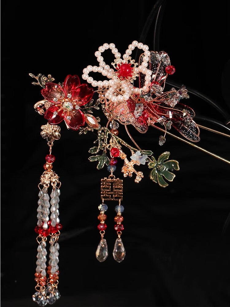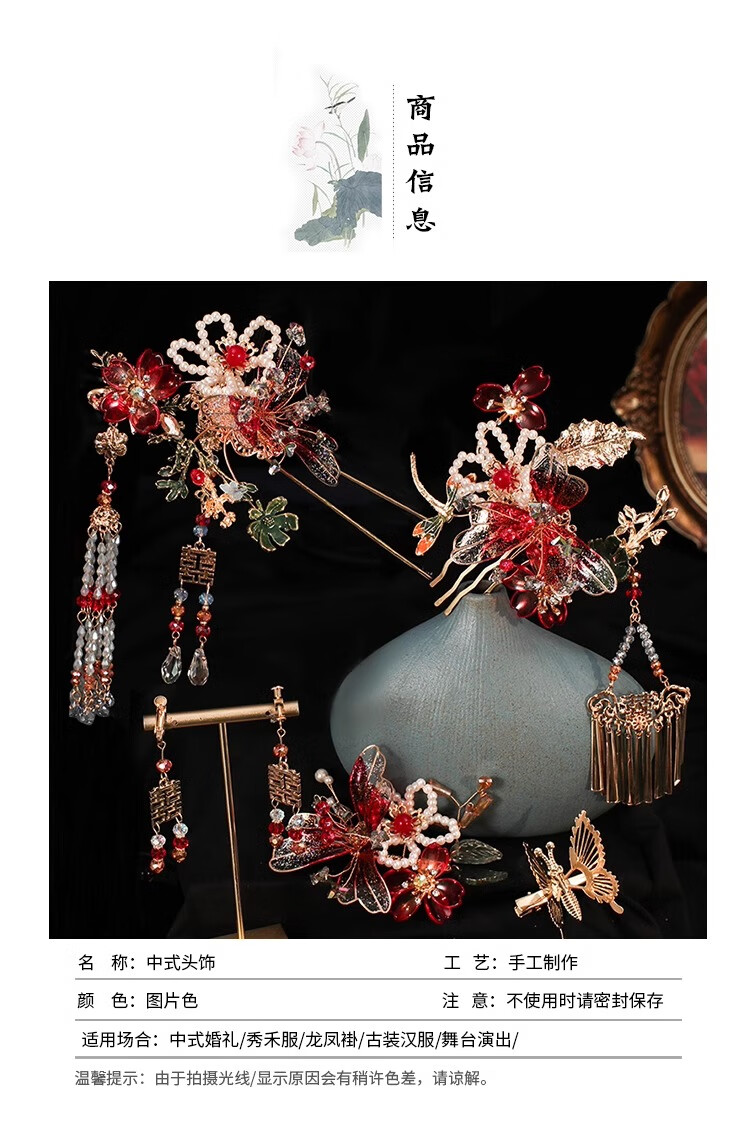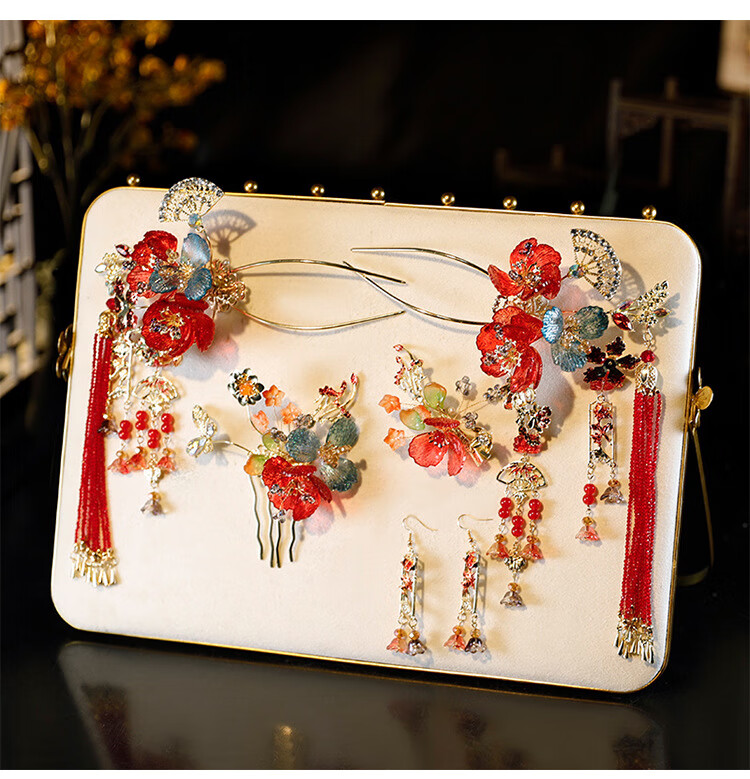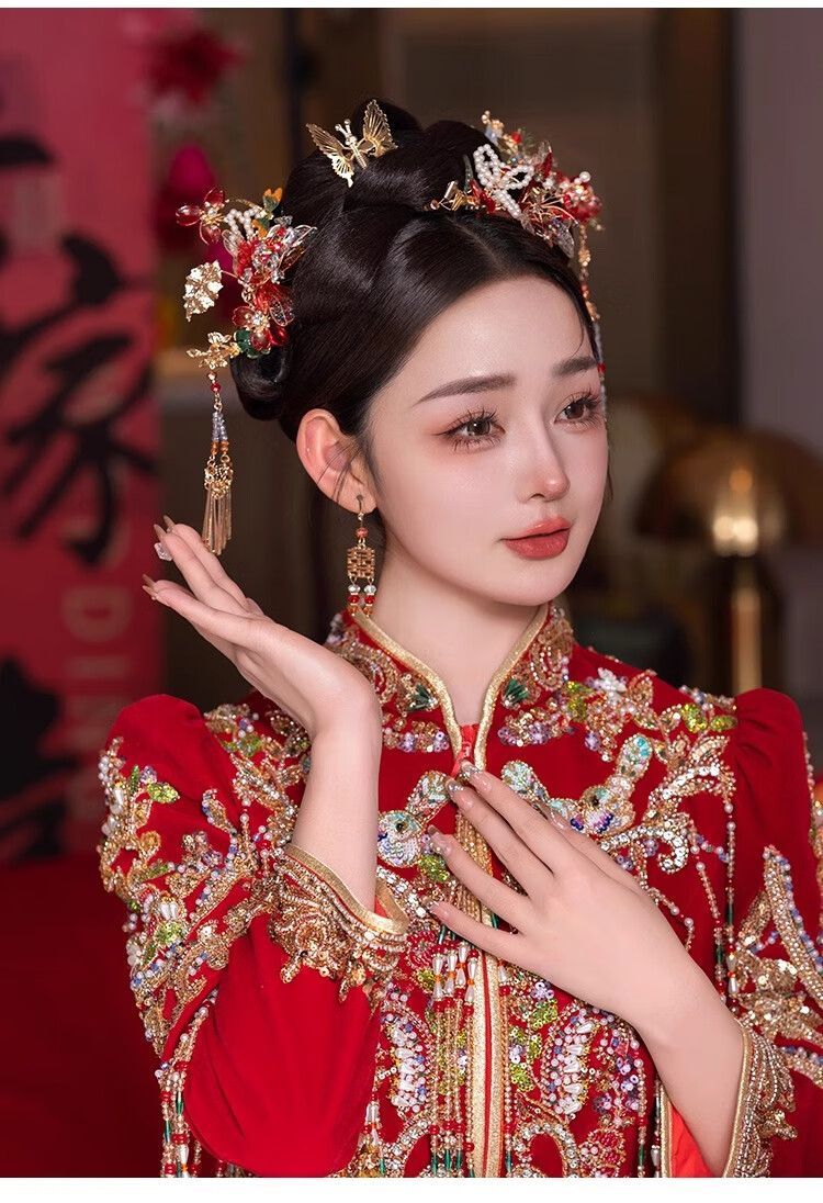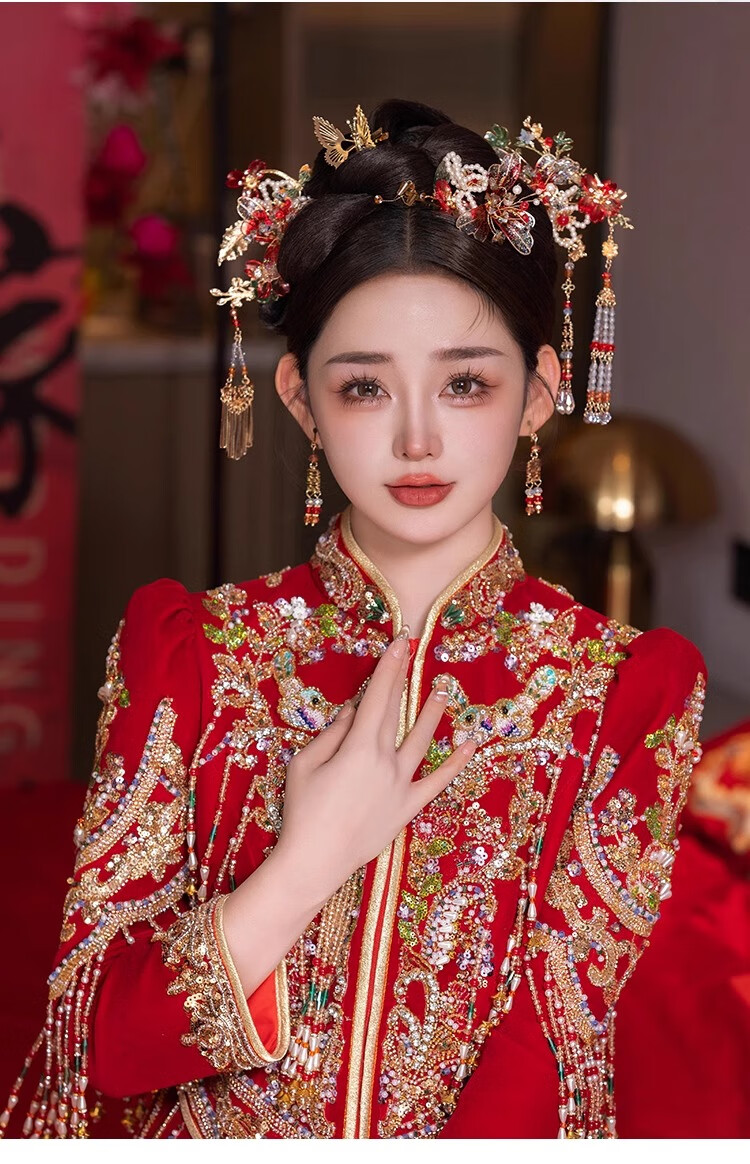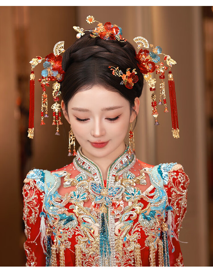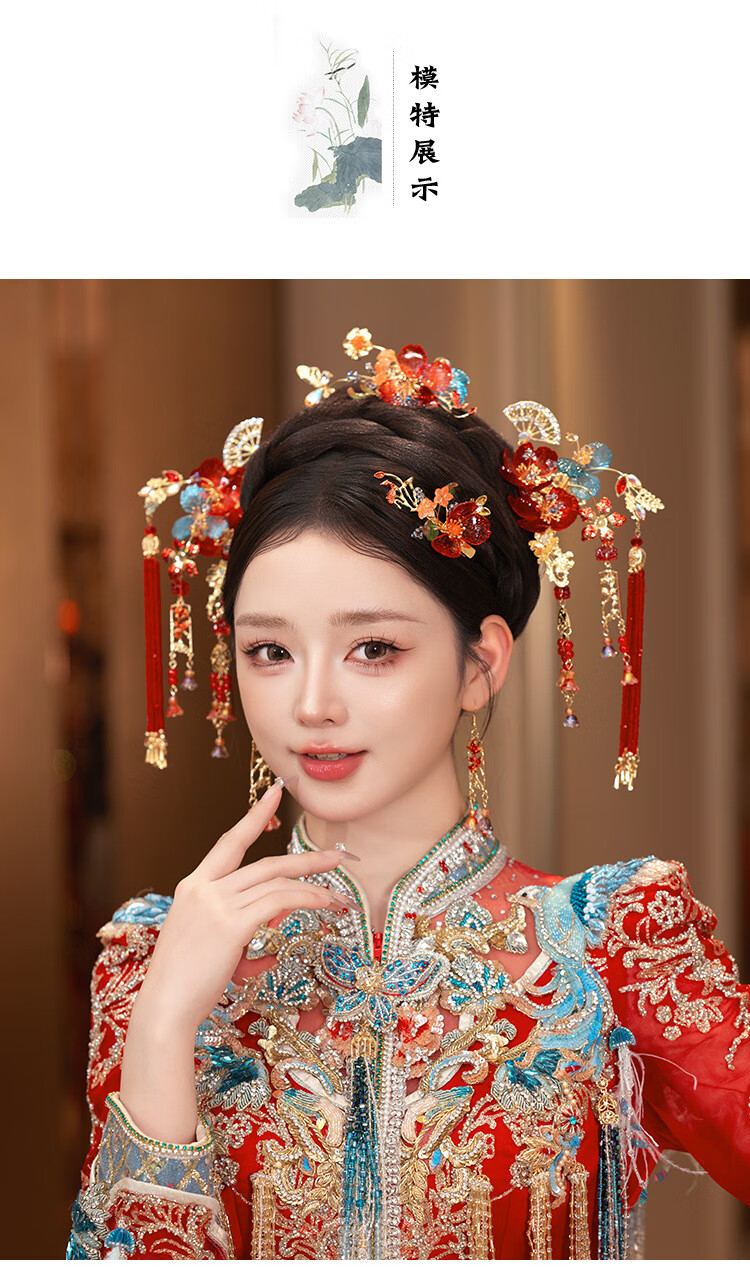 Ancient bridal headdress Chinese Xiuhe dress headdress phoenix crown ancient costume Hanfu hair accessories wedding dress accessories wedding bridal headdress five-piece set