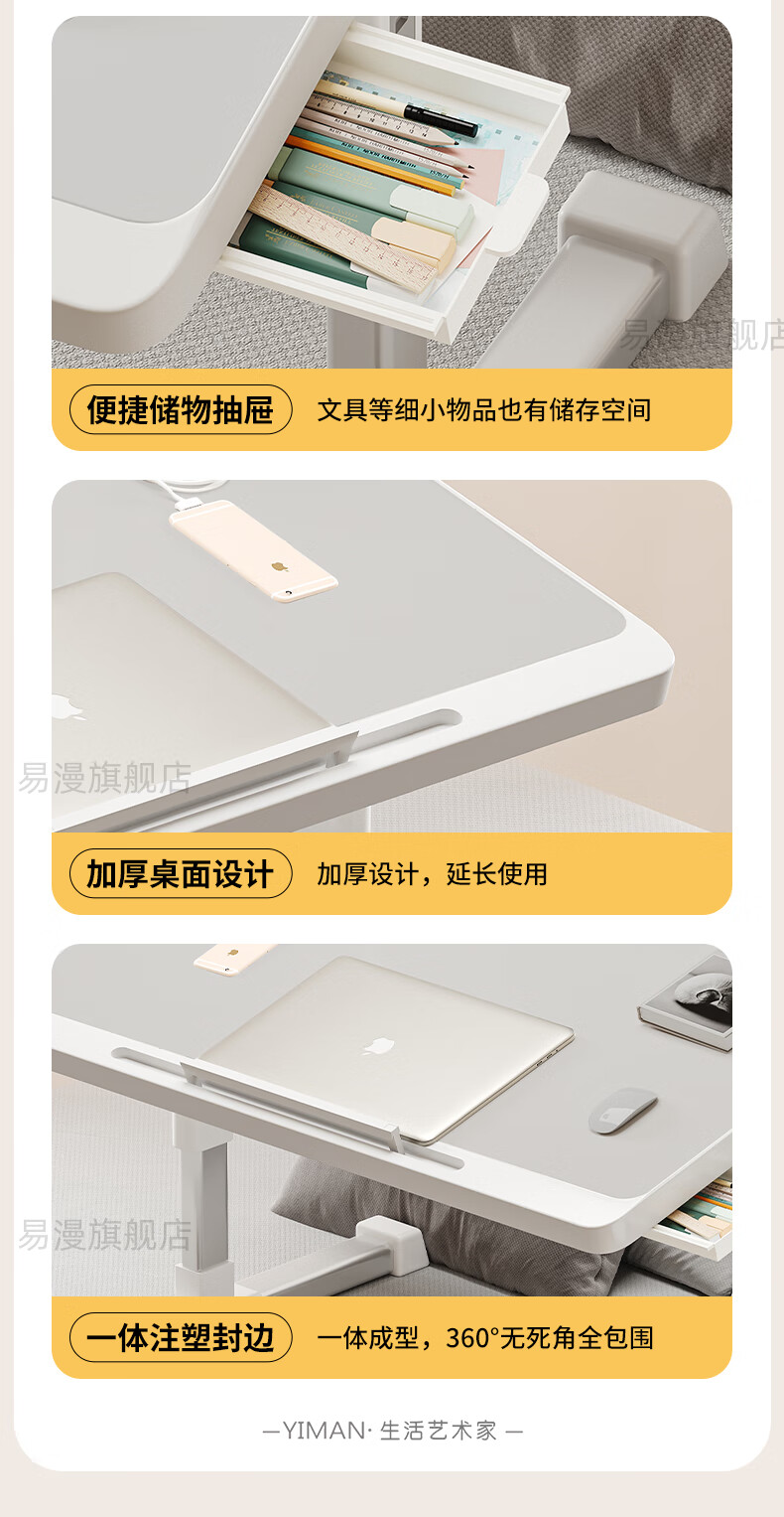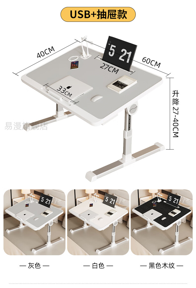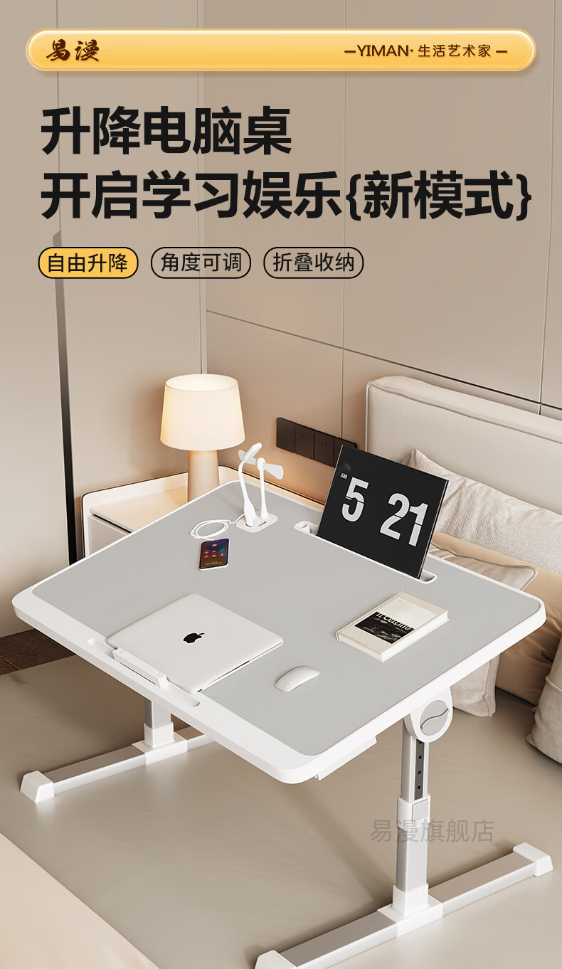 Yiman bed table lifting study table computer table folding table adjustable desktop table legs large desktop dormitory dormitory student lift flip + card slot 60*40cm | Yahei