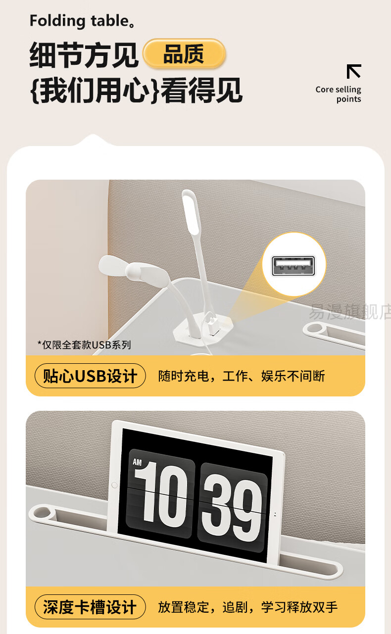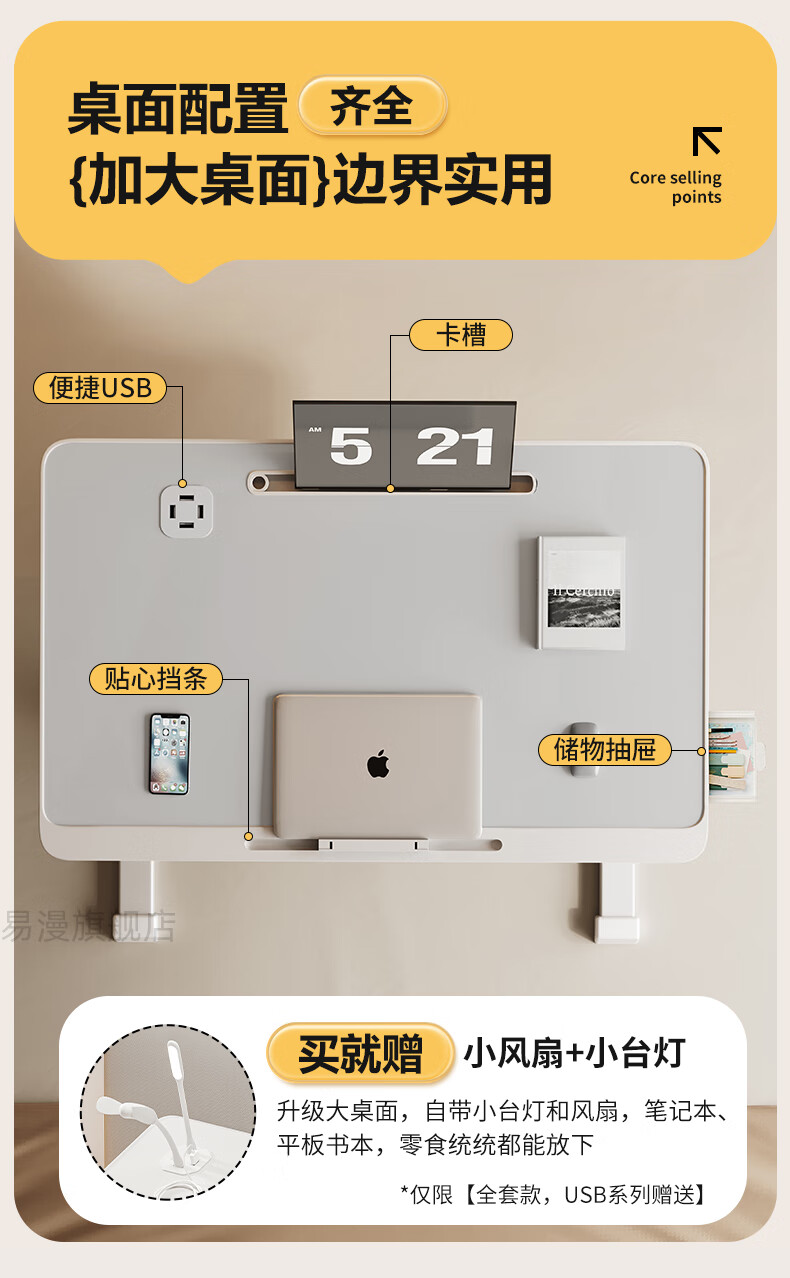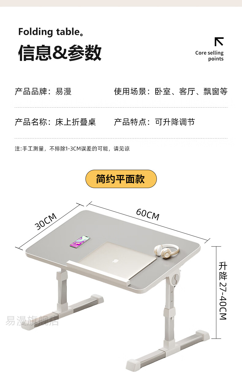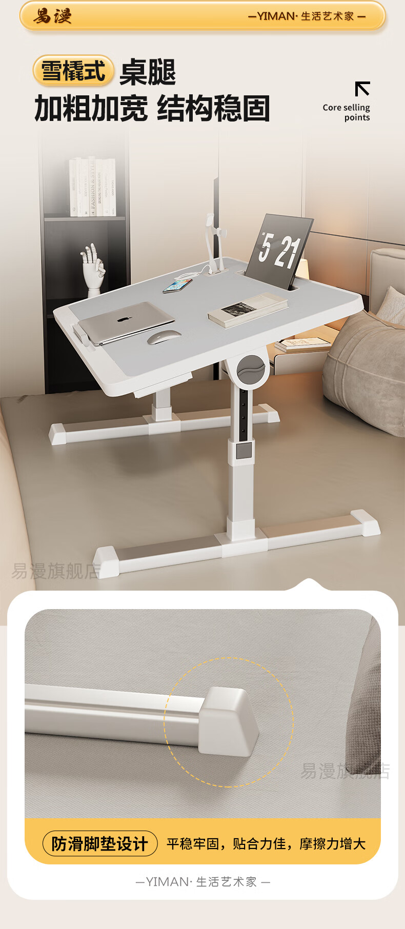 Yiman bed table lifting study table computer table folding table adjustable desktop table legs large desktop dormitory dormitory student lift flip + card slot 60*40cm | Yahei