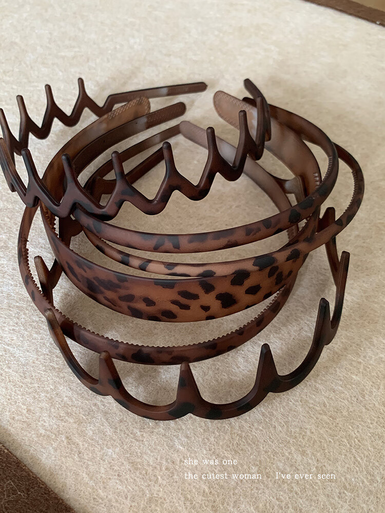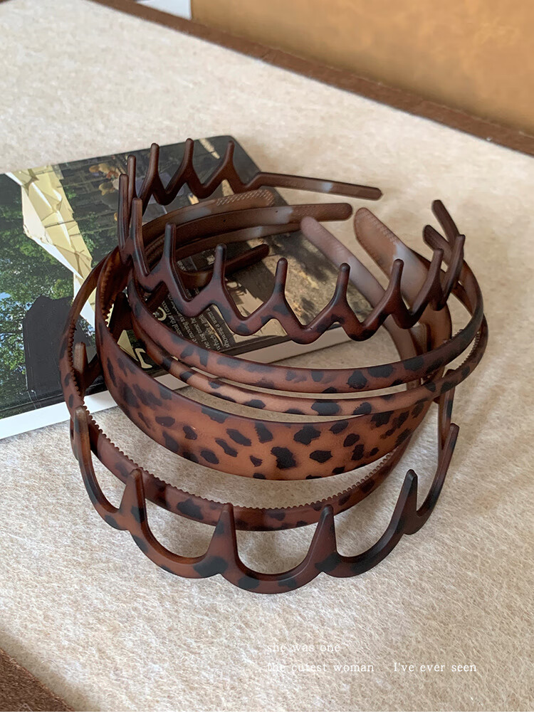Morning Star Korean style simple frosted leopard print headband for women, high-end wavy headband, high skull face wash hairpin with toothed hair accessories, big waves - leopard print headband