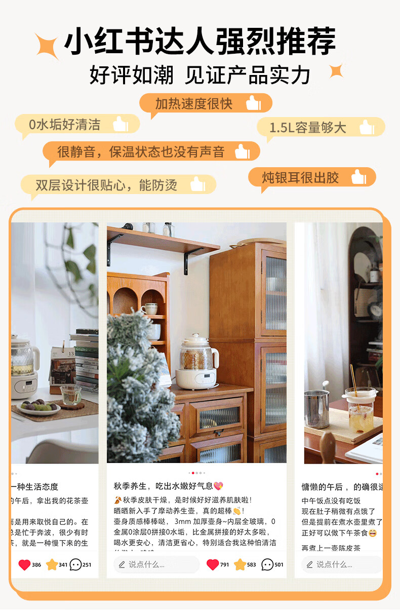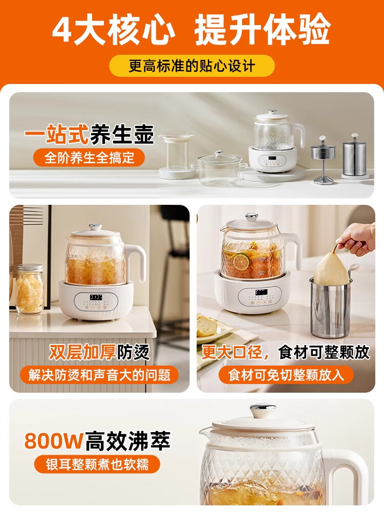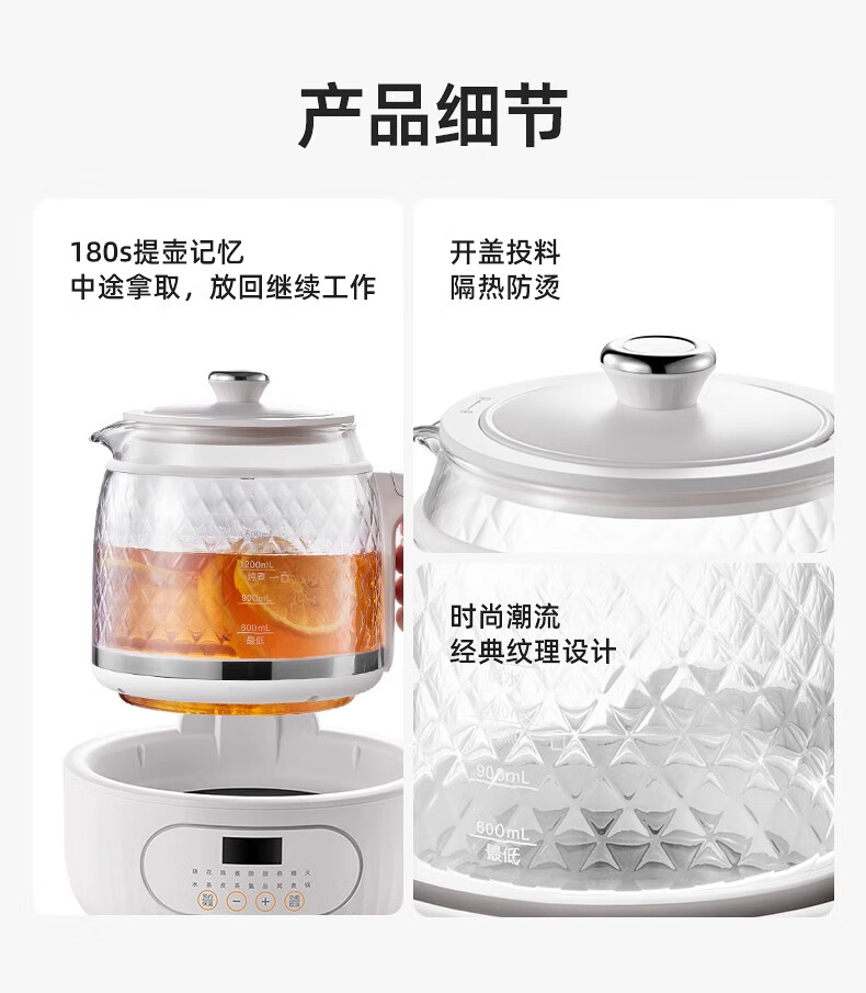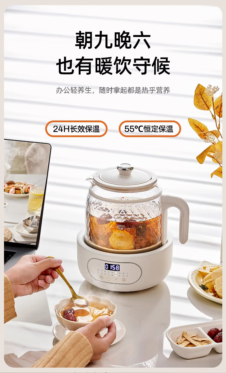 Modong national subsidy all-glass health kettle constant temperature kettle double-layer anti-scald milk brewing upgraded multi-functional office tea maker 1.5L large capacity MD-YS02 all-glass 1.5L stand-alone model