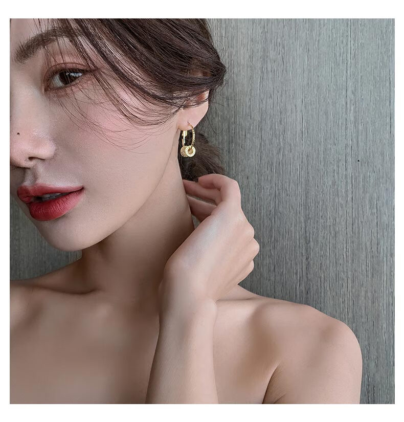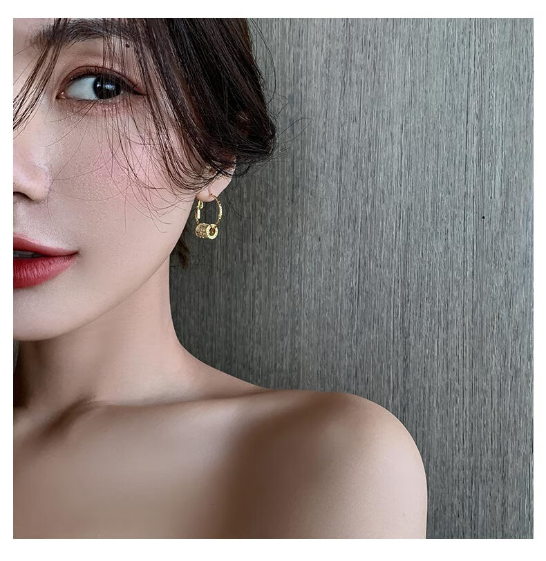 DL 1998 Fat Donglai same style 18k gold small waist earrings outlet counter K gold fashion light luxury earrings temperament ear gold silver needle