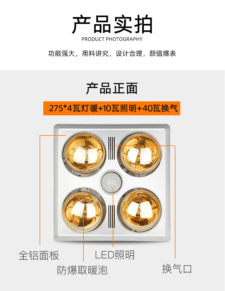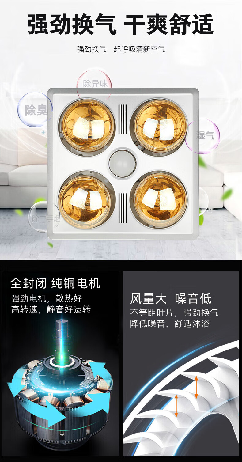 Good Wife Smart Light Warmer Bathroom Heating Lighting Exhaust Fan Integrated Old Four-Light Bathroom Integrated Ceiling Toilet Light Warming Traditional Ceiling Silver Bubble No Ventilation Key Switch
