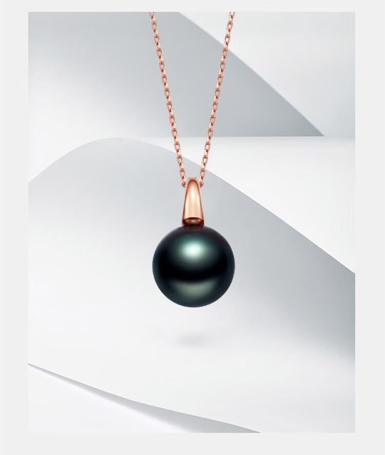 Chishe Oriental Night Rhythm Series 18k Gold Seawater Tahitian Black Pearl Pendant Versatile Gift for Your Girlfriend 18k Gold-Rose