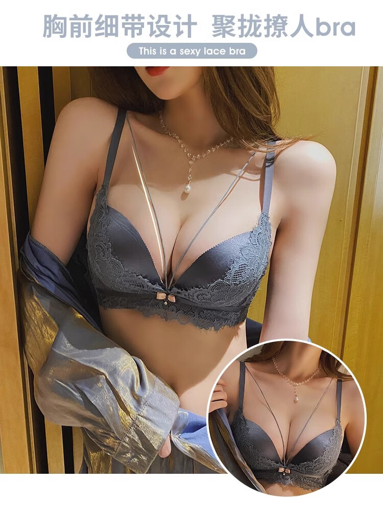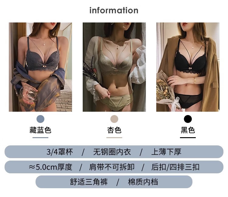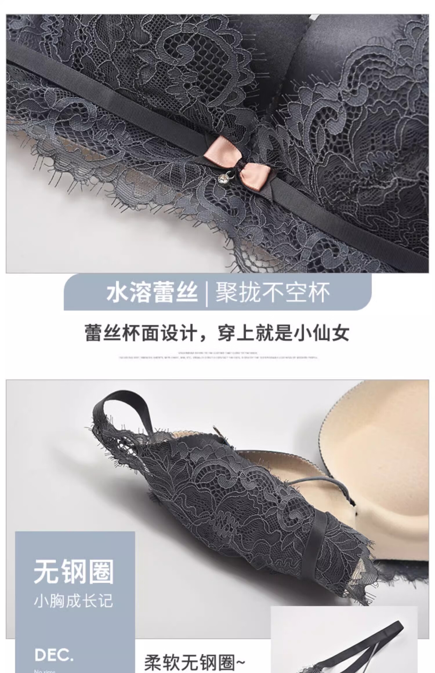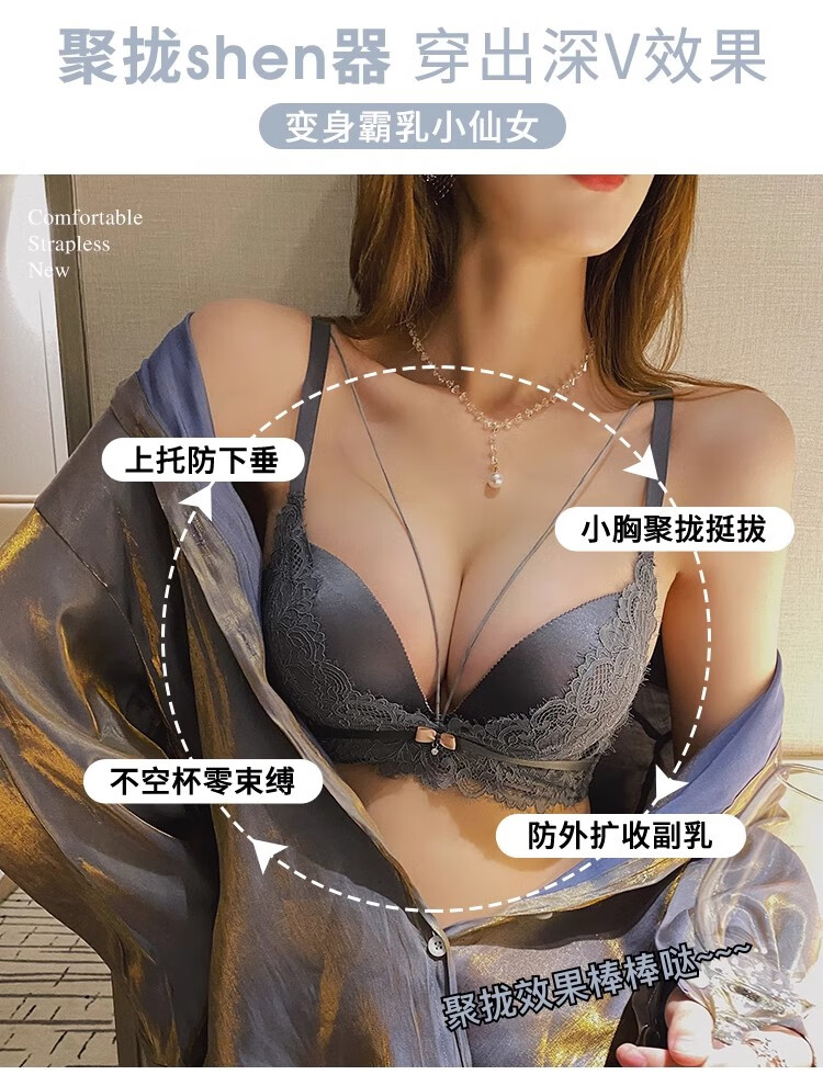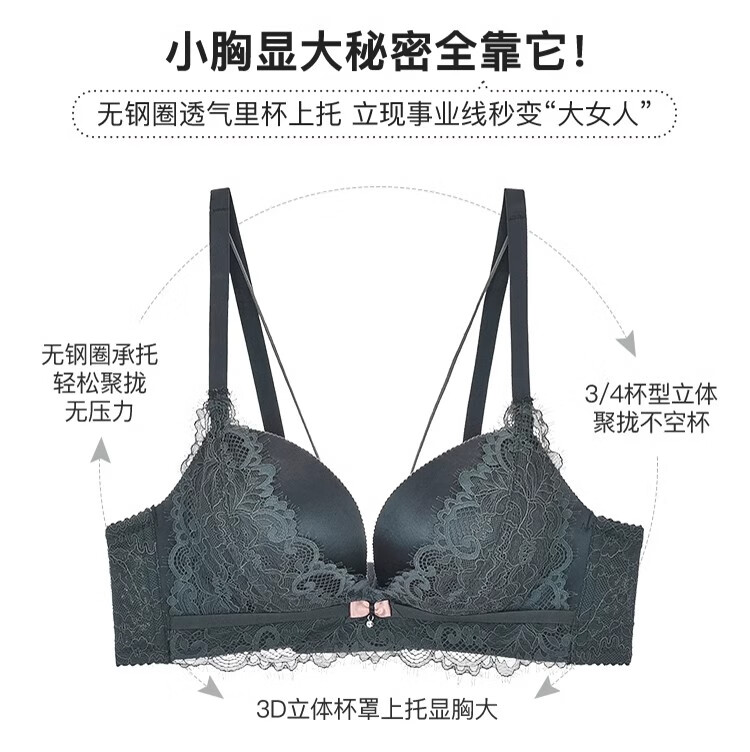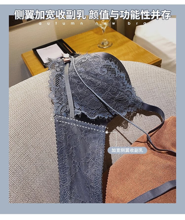 Victoria Palace Sexy Bra Small Breasts Gather Up and Show Big Thickening Bra Adjustable Top Thin Bottom Thick Molded Cup Flat Chest Bra Set Apricot Set 36/80A