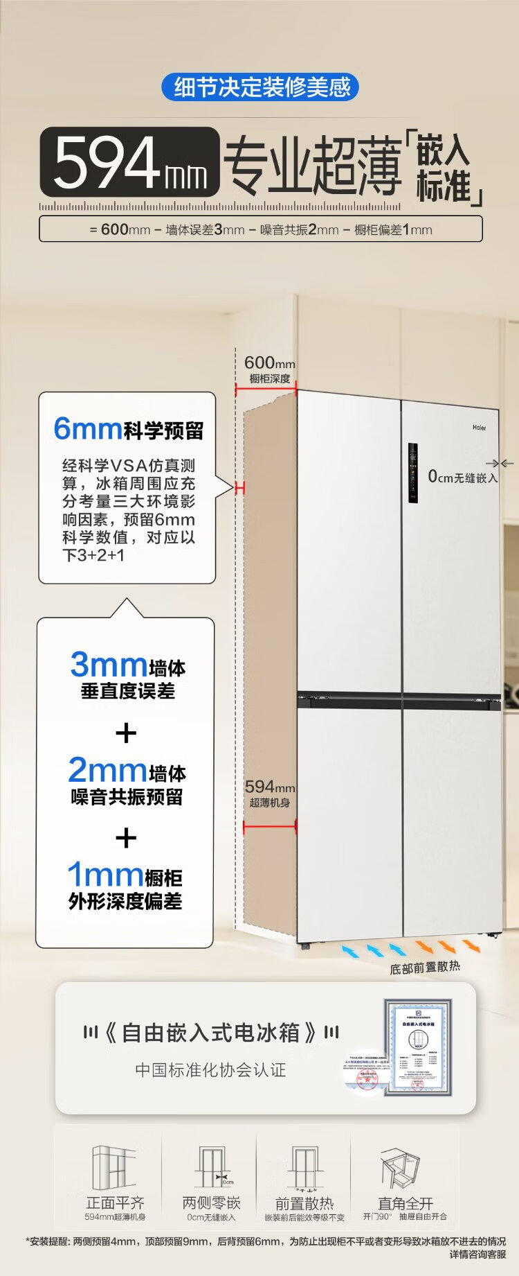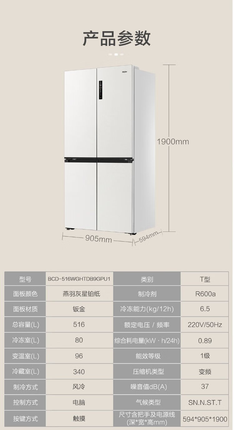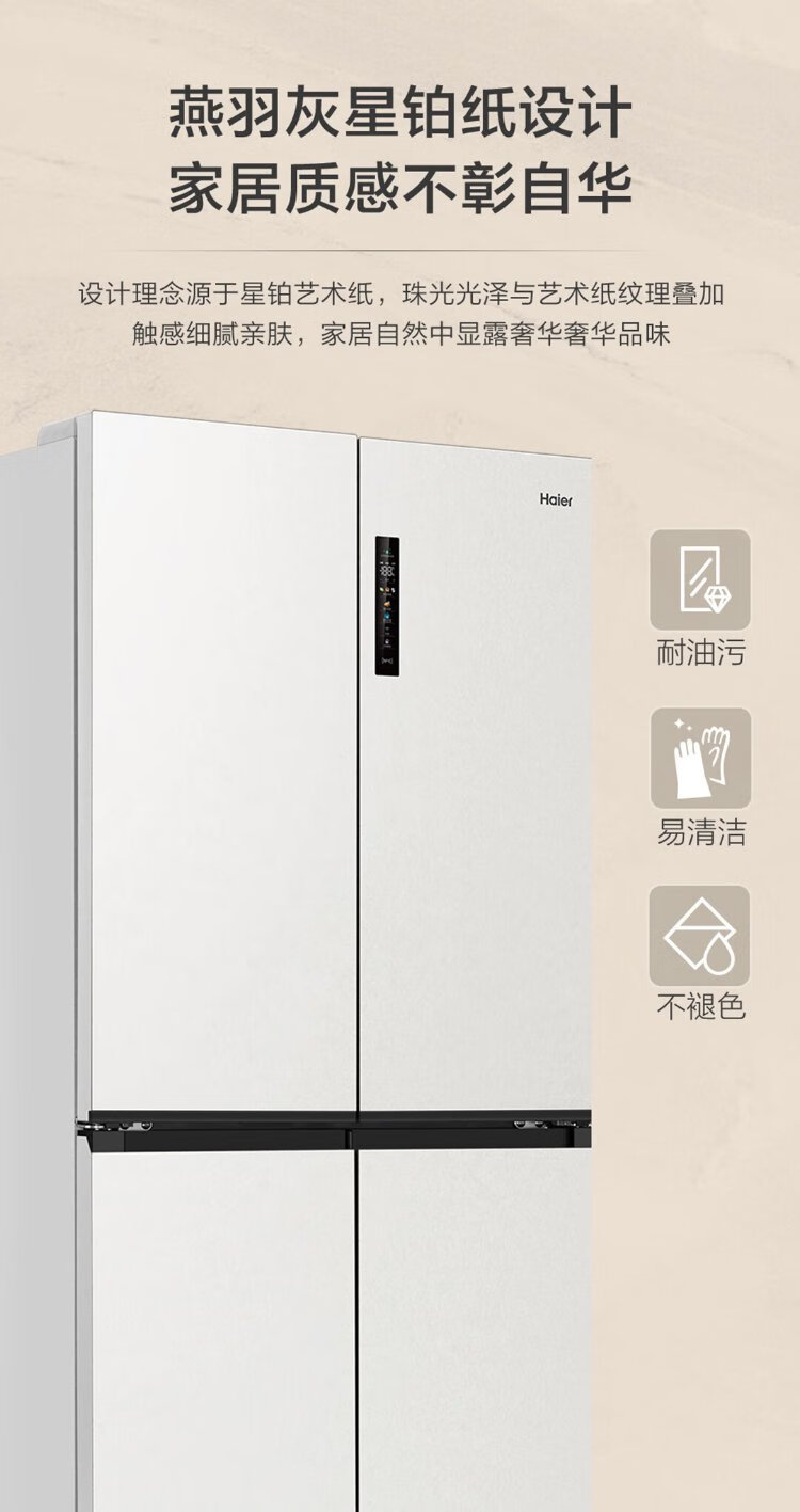 Haier Xiaohonghua 516L cross-door refrigerator 594mm professional ultra-thin zero-embedded EPP ultra-clean system sterilization and oxygen blocking dry and wet three-speed variable temperature space first-class energy efficiency large capacity Receive subsidy BCD-516WGHTDB9GYU1 Boca Gray
