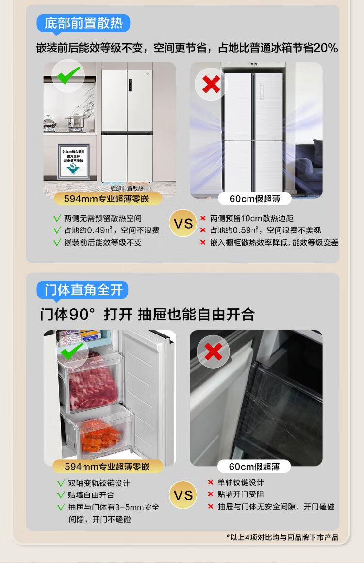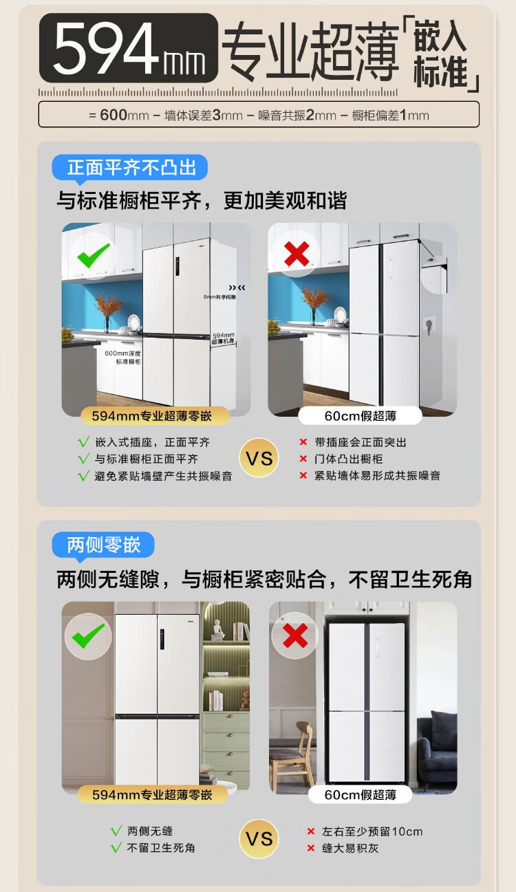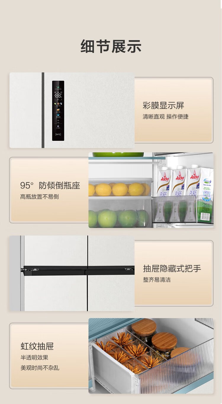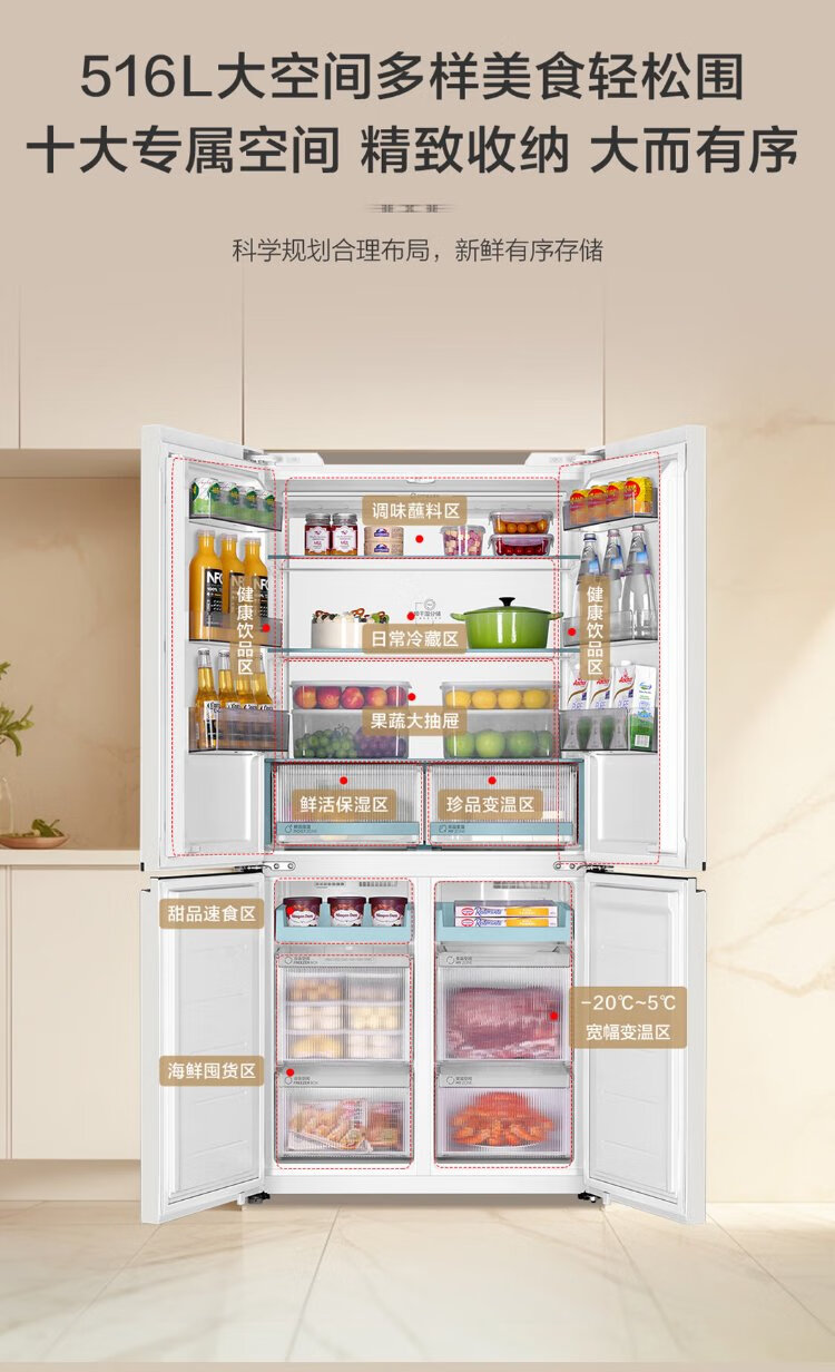 Haier Xiaohonghua 516L cross-door refrigerator 594mm professional ultra-thin zero-embedded EPP ultra-clean system sterilization and oxygen blocking dry and wet three-speed variable temperature space first-class energy efficiency large capacity Receive subsidy BCD-516WGHTDB9GYU1 Boca Gray