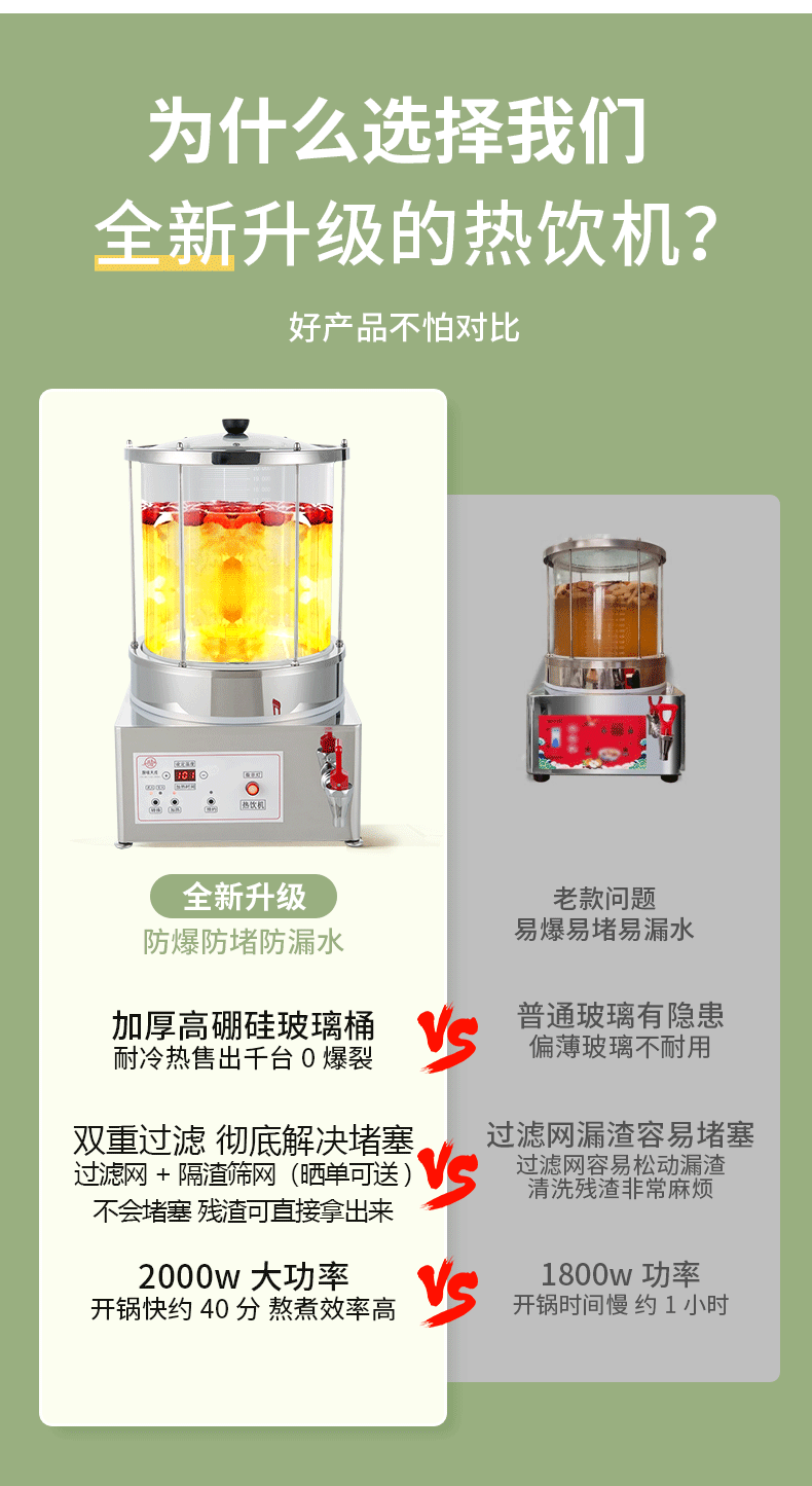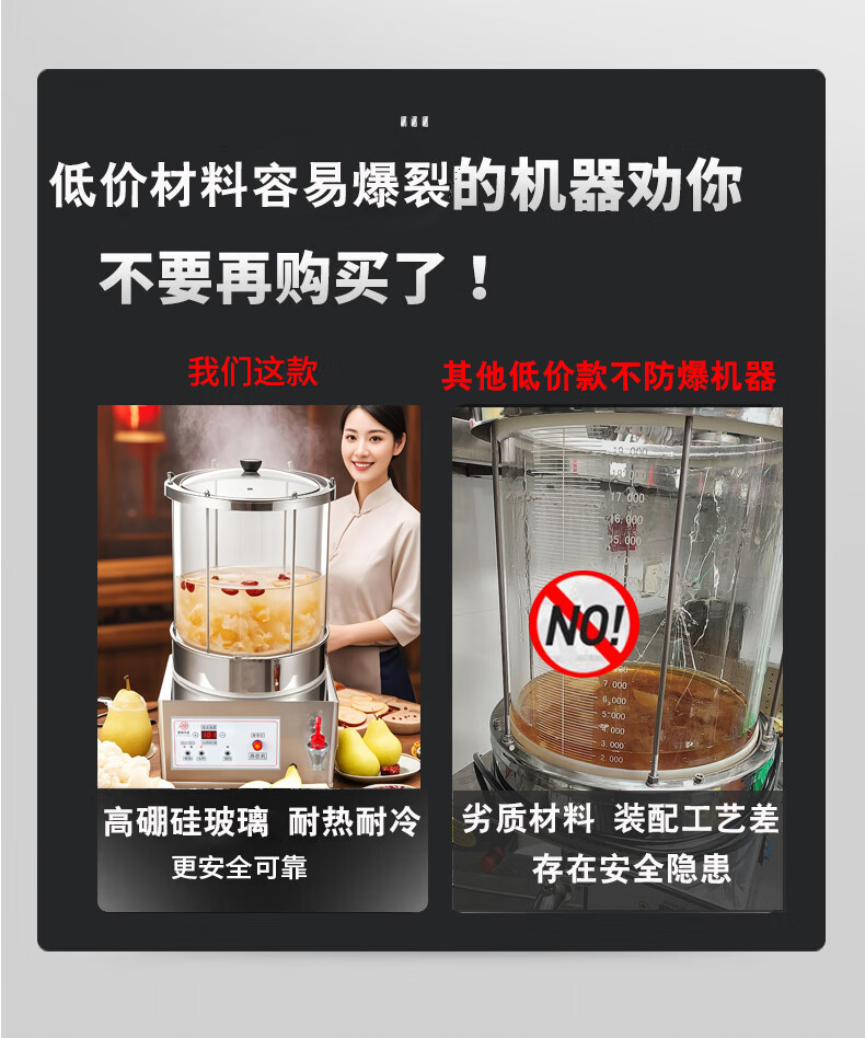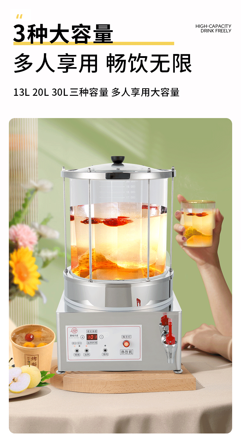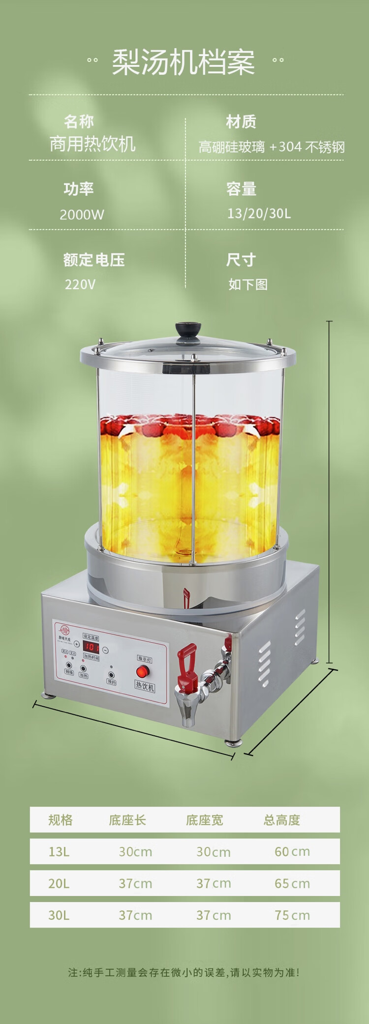 Chuwei Tiancheng commercial large-capacity hanging pear soup machine sour plum soup beverage machine multi-functional 20L30L explosion-proof glass hot drink stewing machine 20L (37*37*65cm)