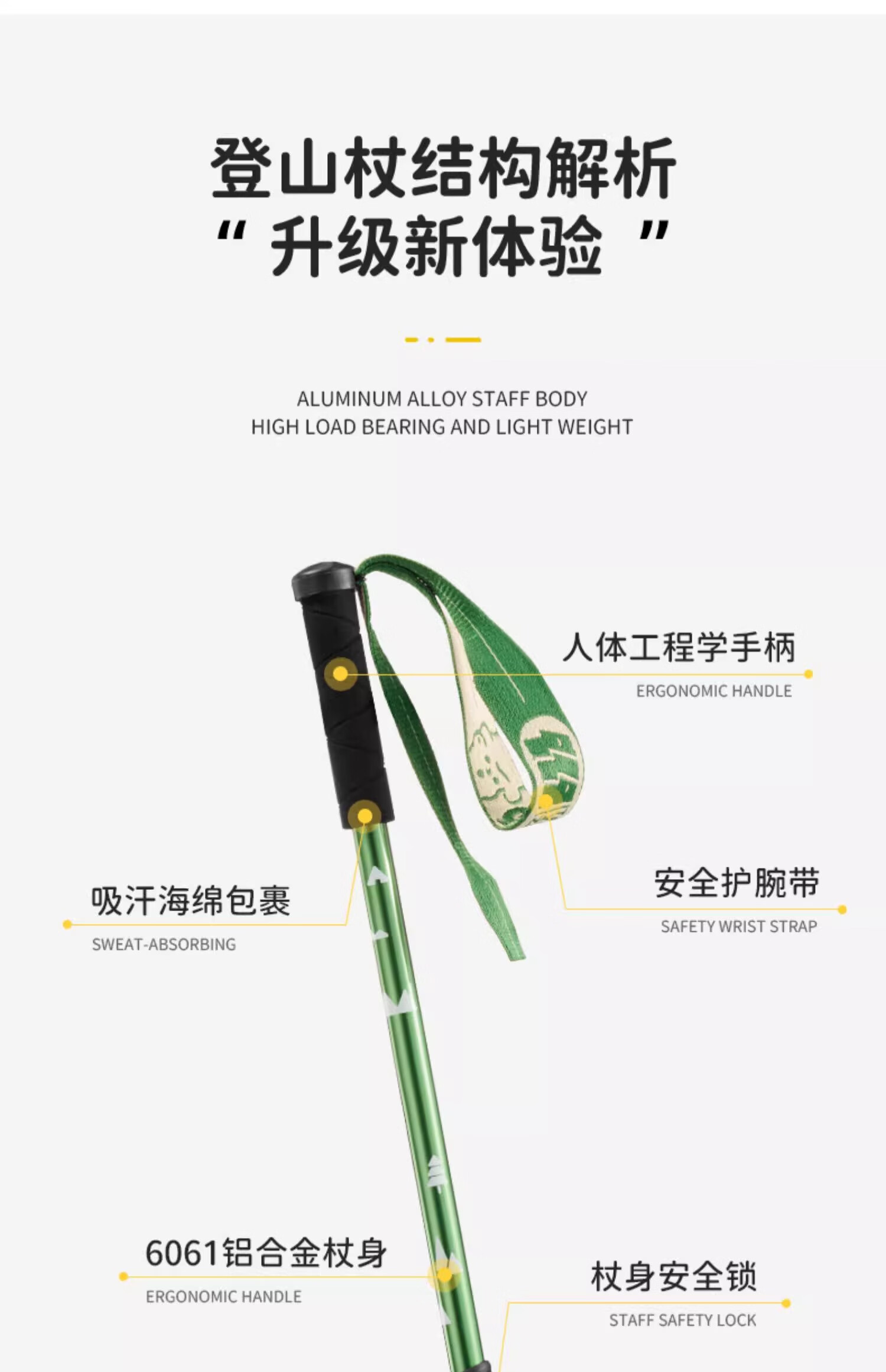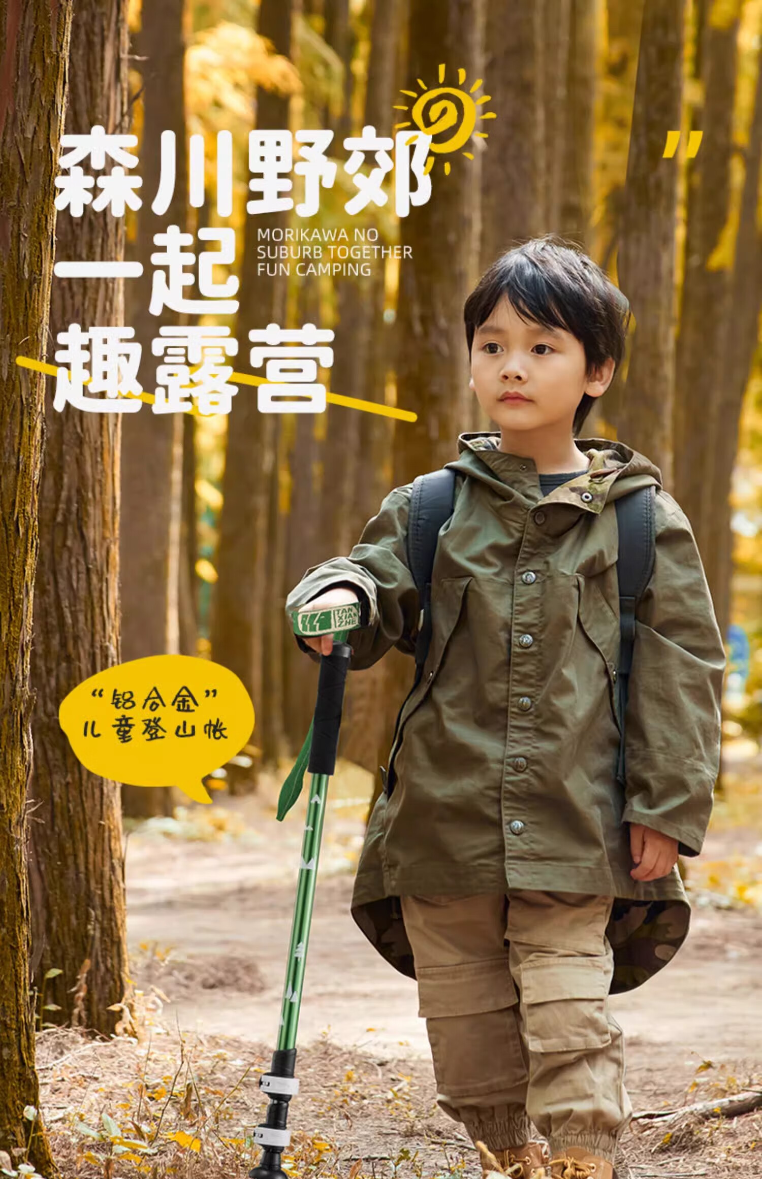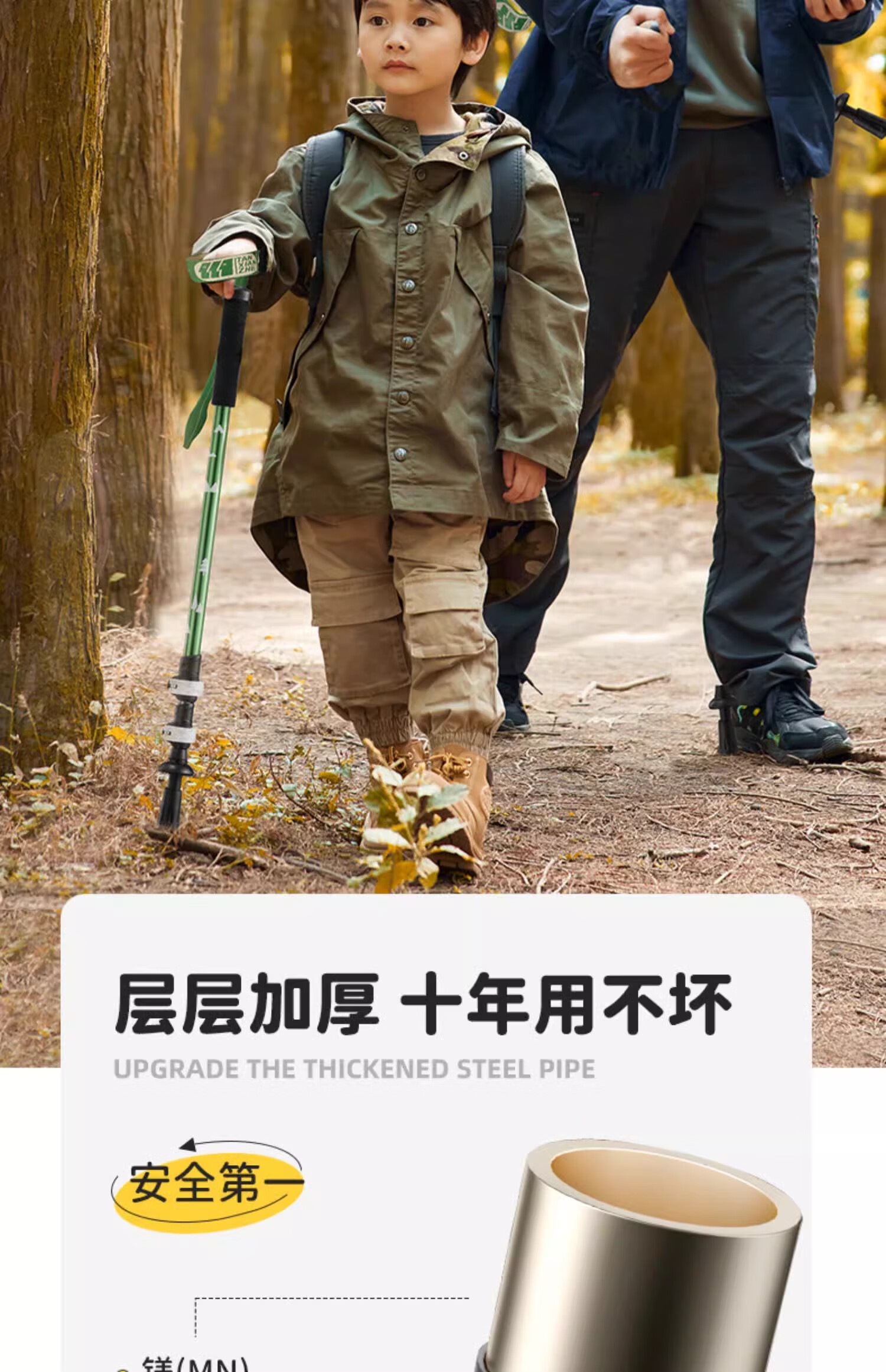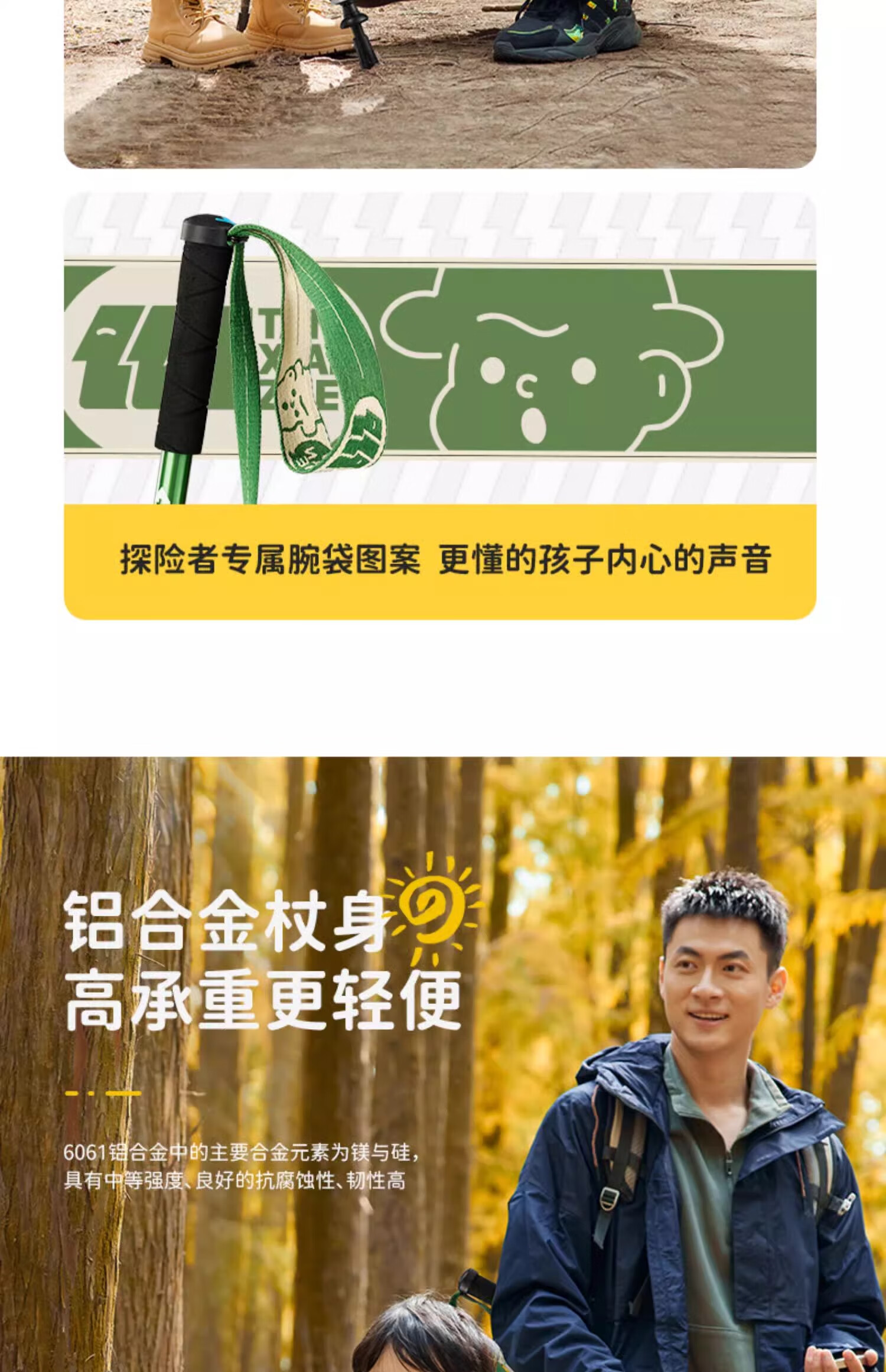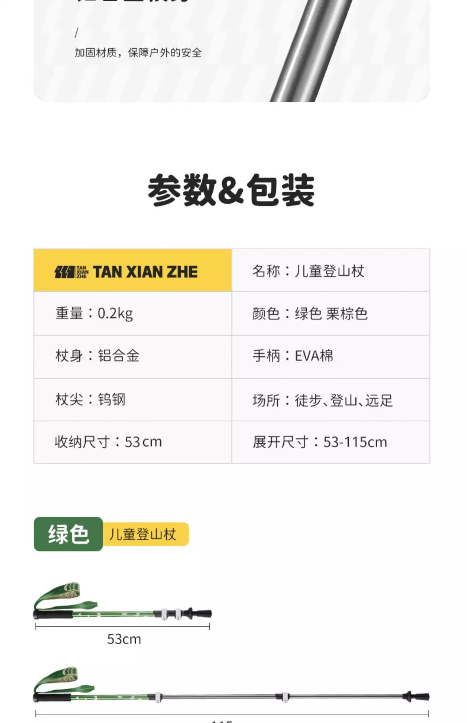 Explorer (TAN XIAN ZHE) children's trekking pole, ultra-light telescopic trekking pole, aluminum alloy multi-functional crutch, mountain climbing and hiking outdoor trekking pole, children's model, pine green (53-115cm)