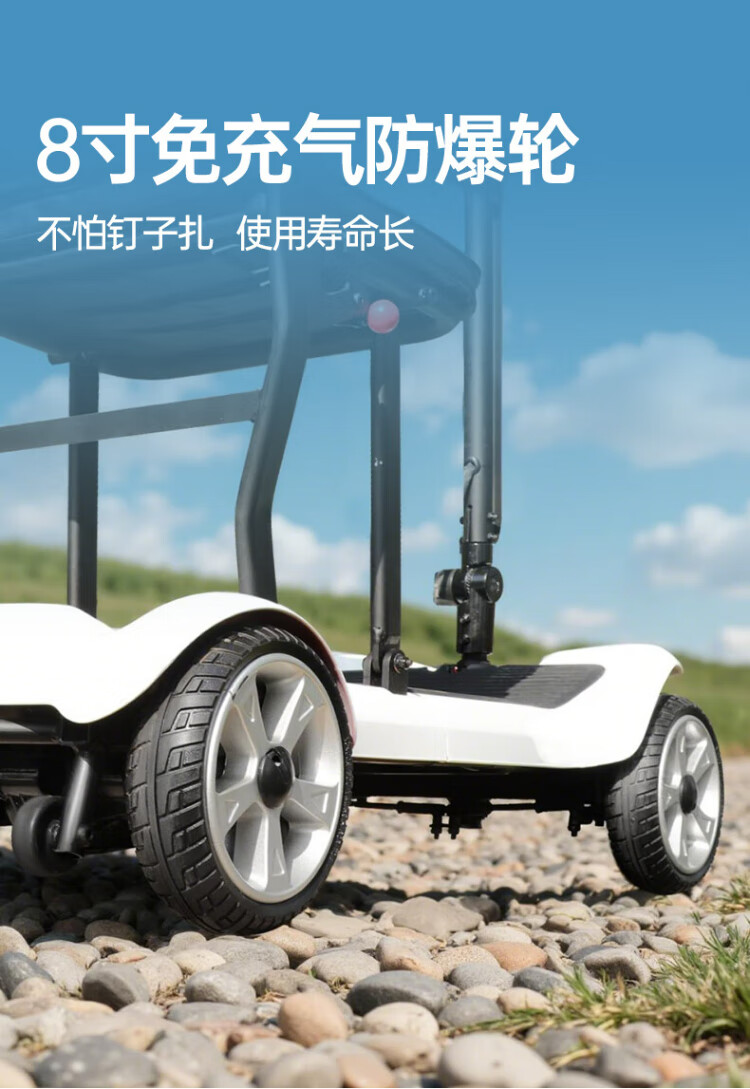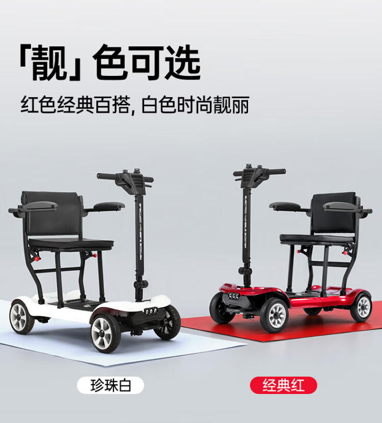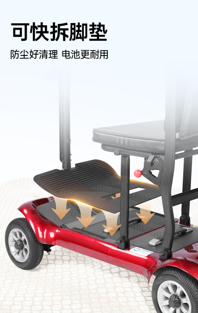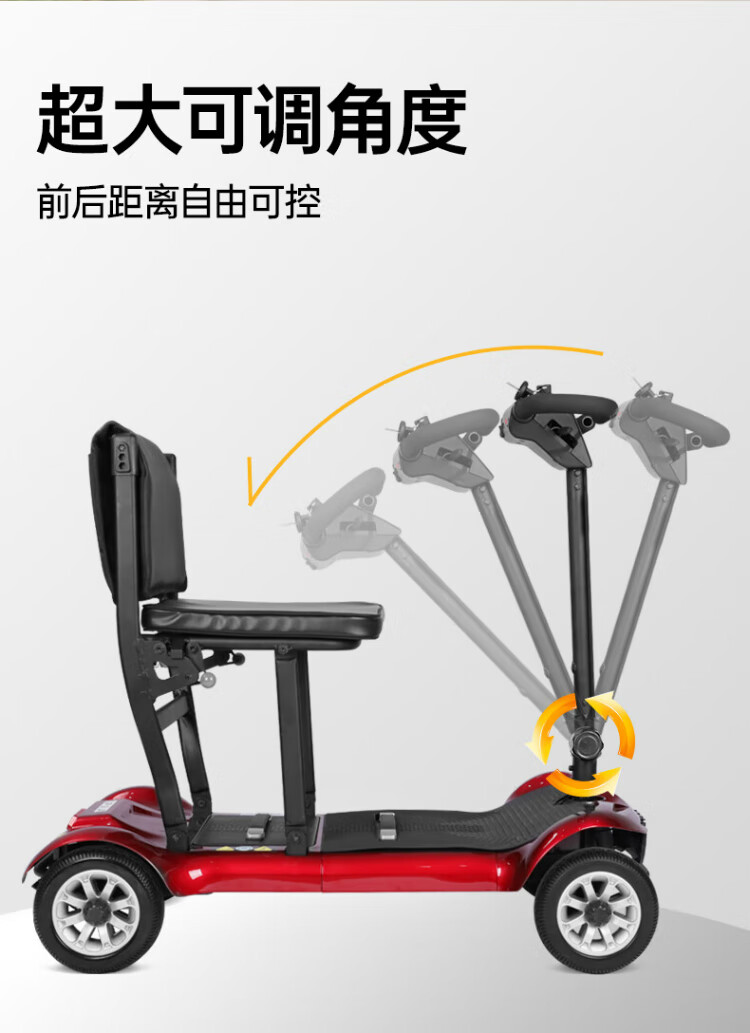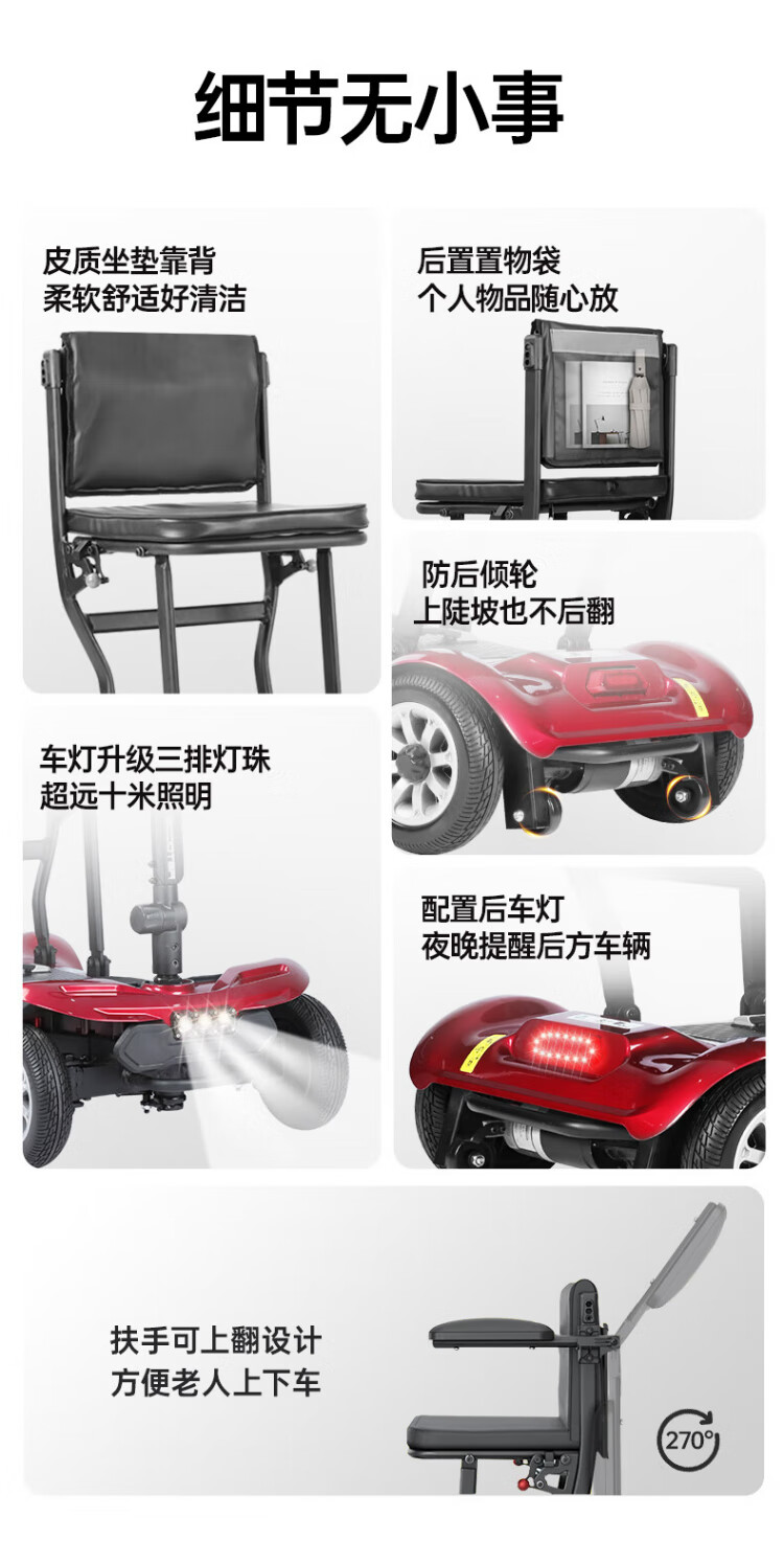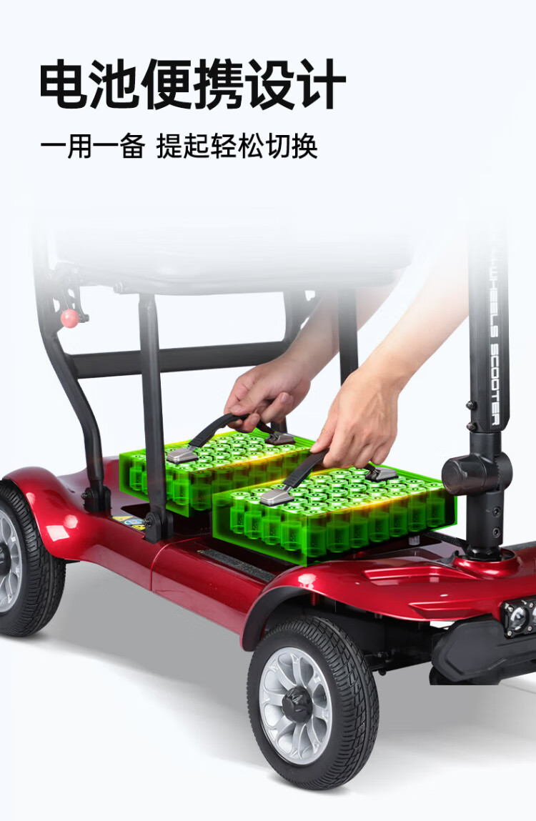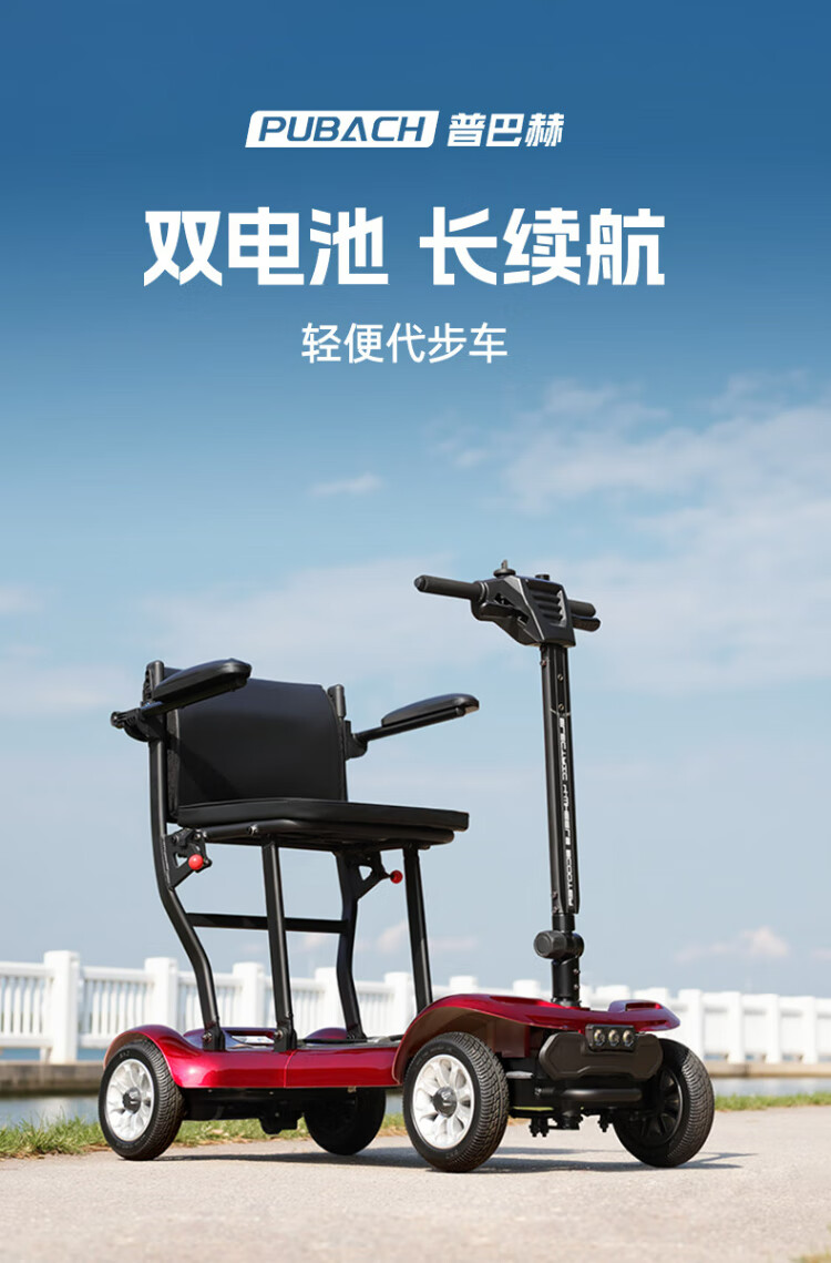 Pubach folding mobility scooter for the elderly, four-wheeled, small mobility scooter for the disabled, can be put in the trunk on the plane 11, red 16A/single lithium battery/range 20 kilometers