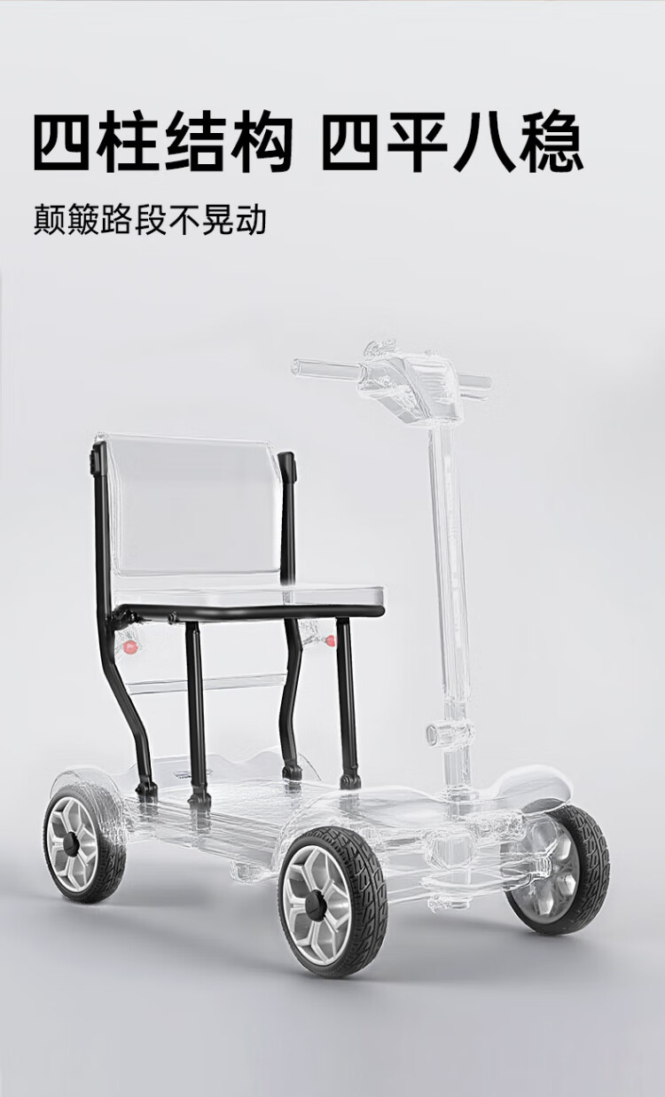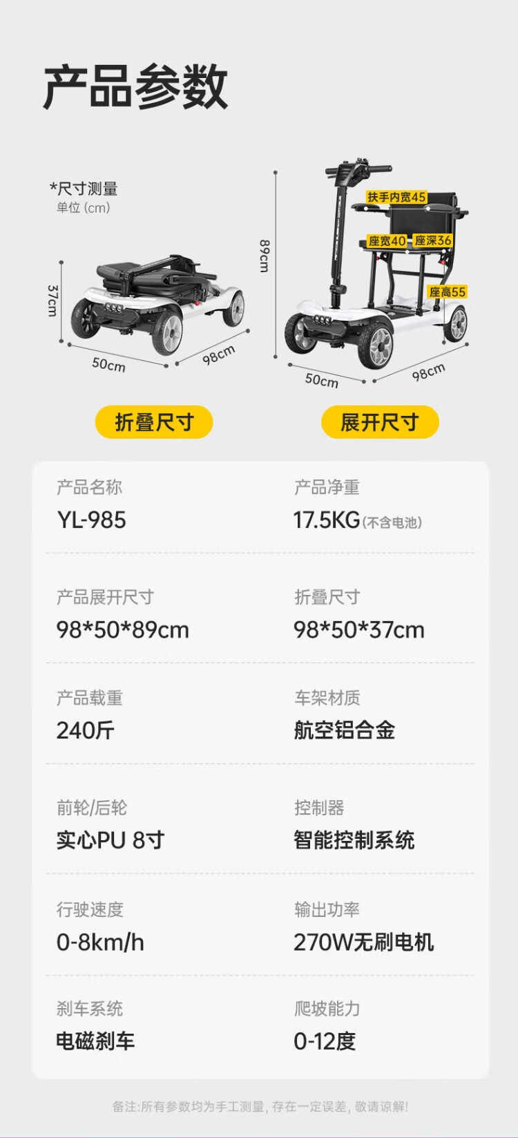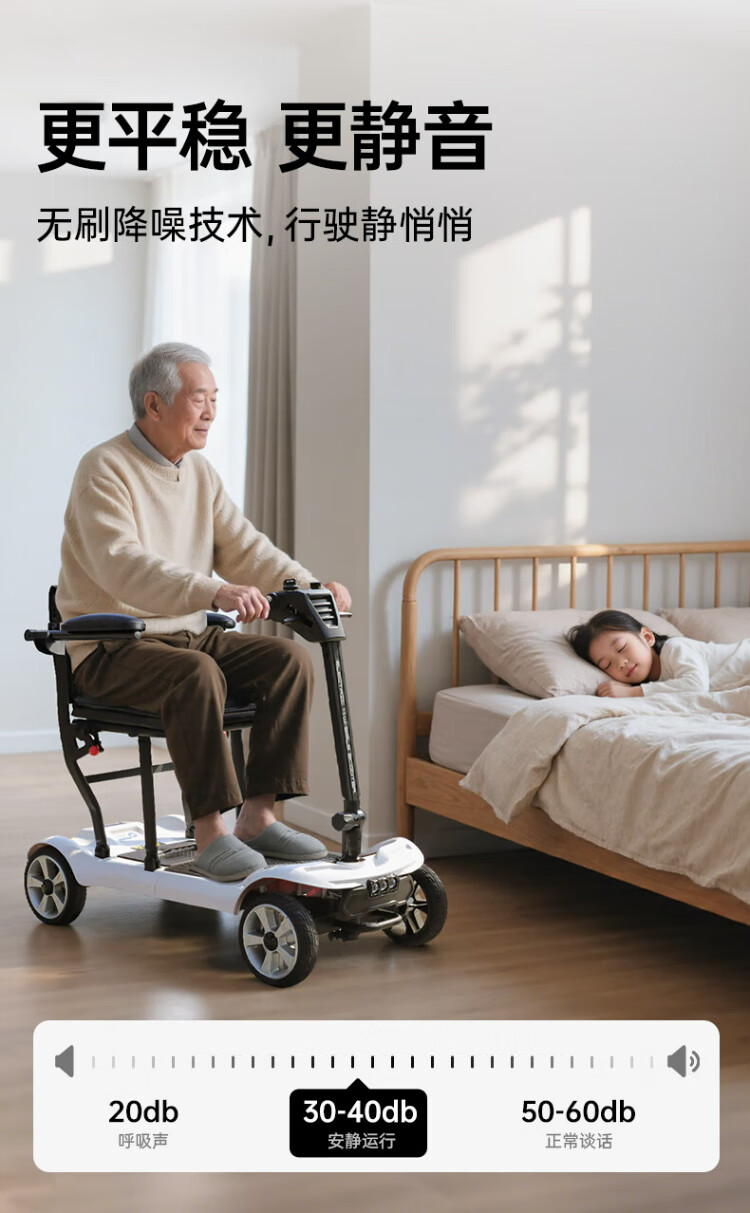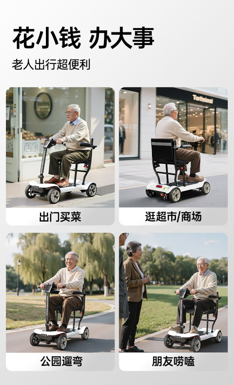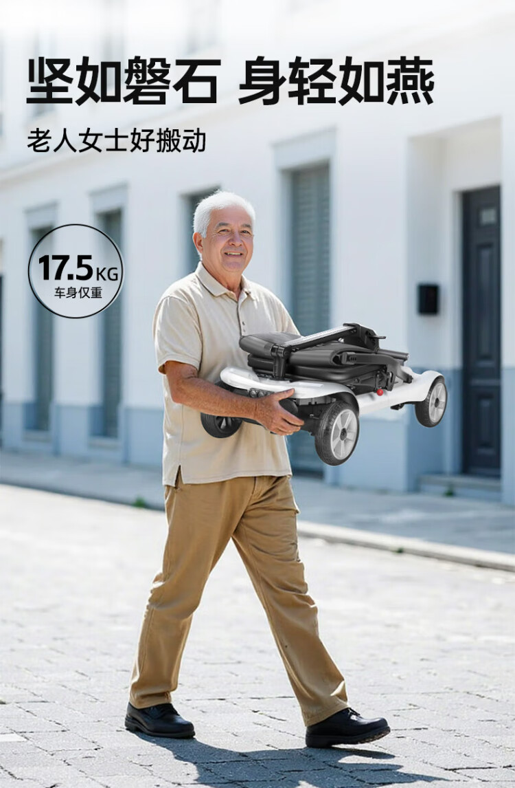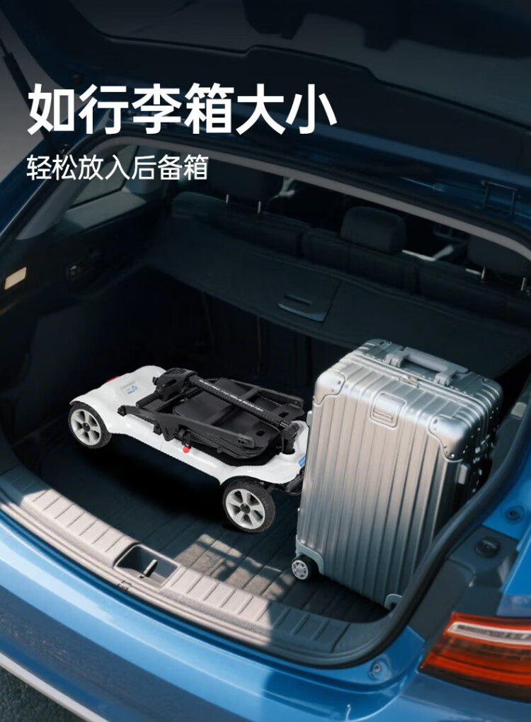 Pubach folding mobility scooter for the elderly, four-wheeled, small mobility scooter for the disabled, can be put in the trunk on the plane 11, red 16A/single lithium battery/range 20 kilometers